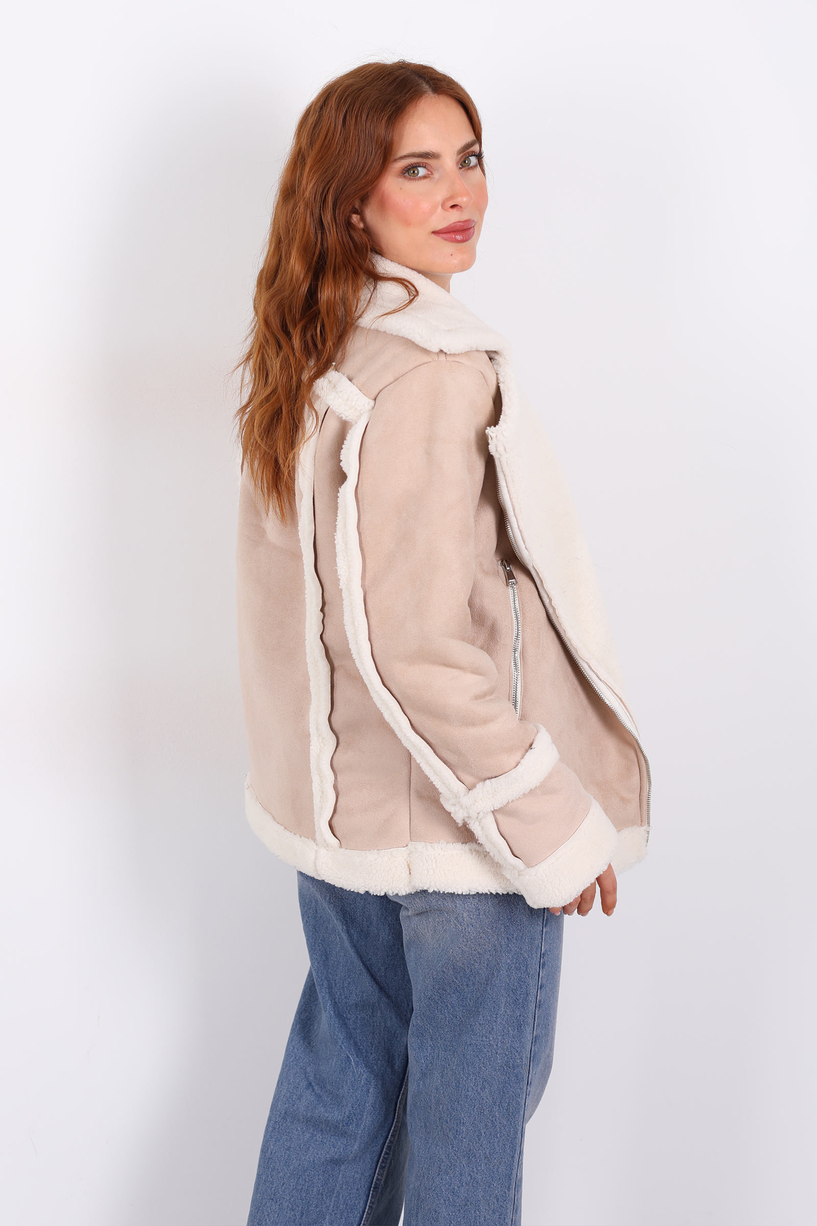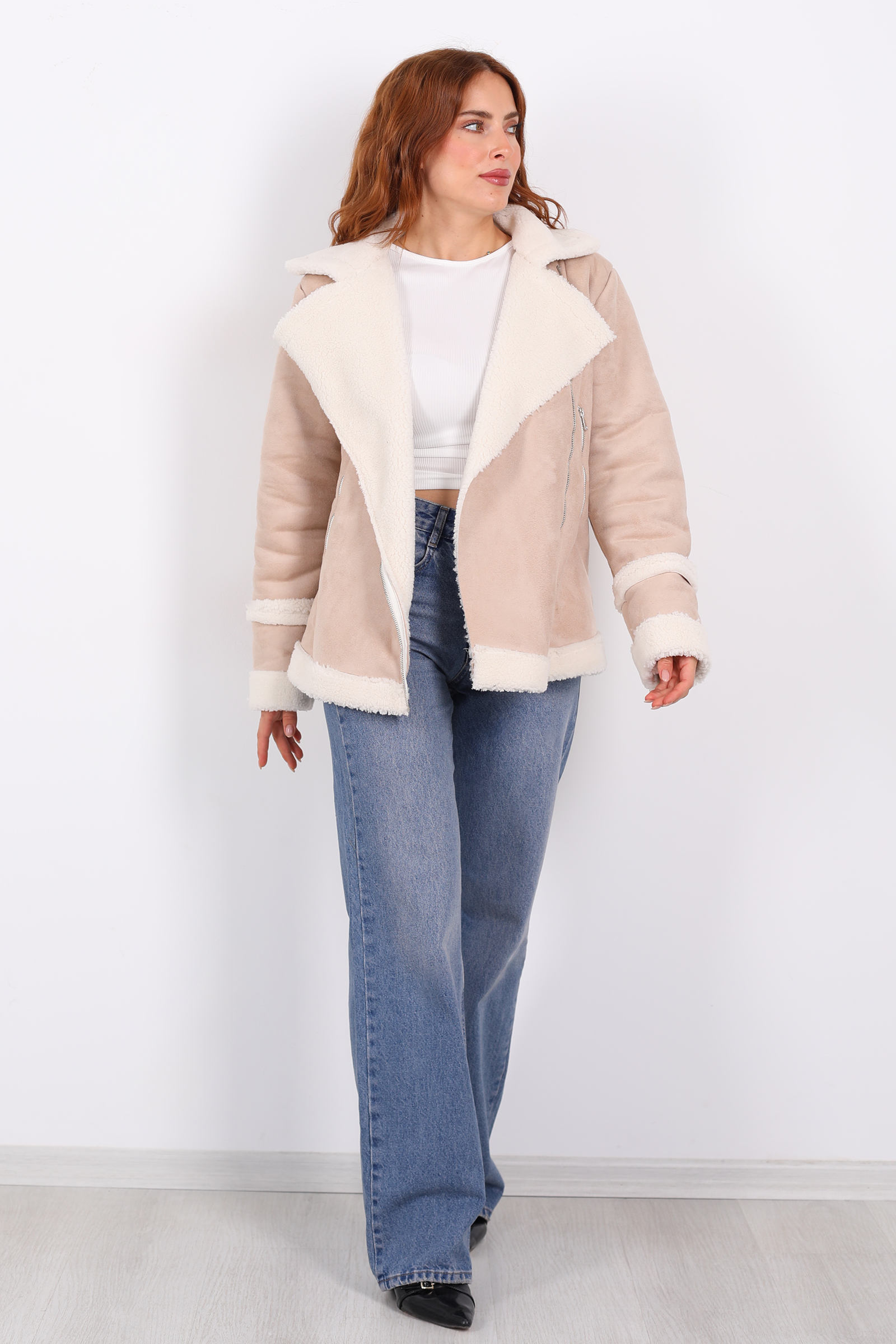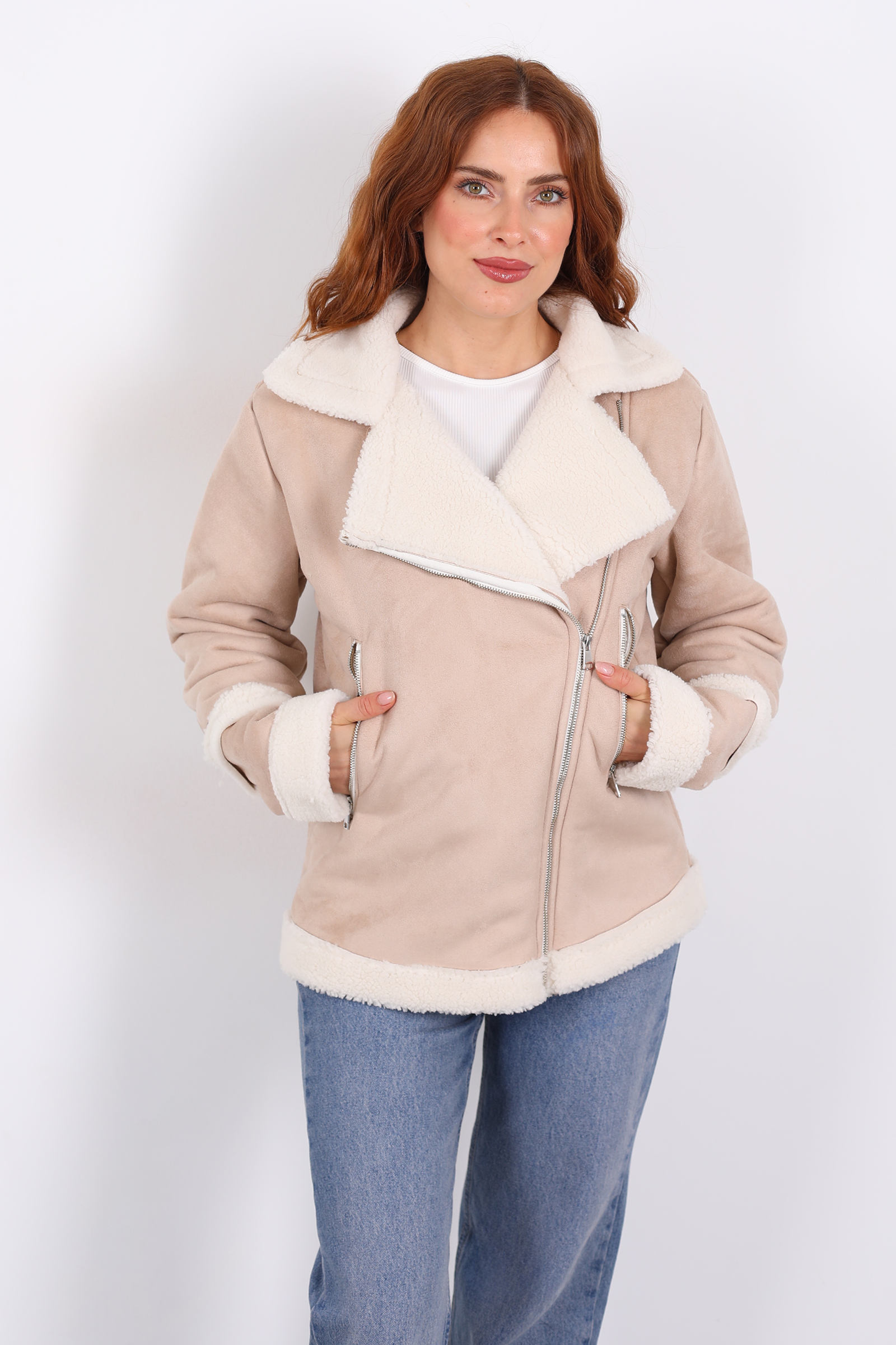 Kraliçemsi bir duruş sergileyen bu krem süet mont, kürk biyeli yakasıyla zarafeti yumuşak bir dokunuşla tamamlıyor. Montun krem rengi, doğadan ilham alan sıcak bir nötr tonu yansıtırken süet dokusu sofistike ve davetkar bir his katıyor.Süet yüzeyi, mat ve kadifemsi bir his sunar; sentetik ya da gerçek süet olabilir, her iki durumda da dış görünüşünde zarif bir yapı vardır.