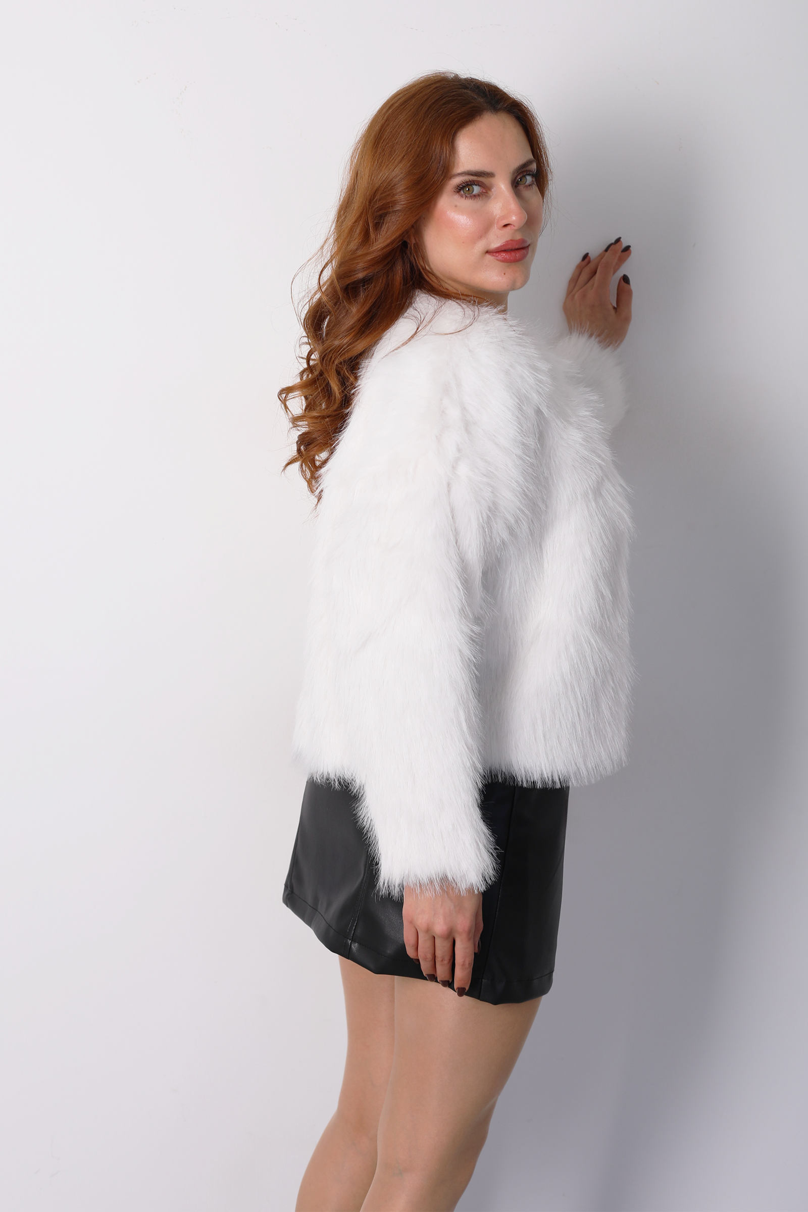 Uzun Kürklü Beyaz Kadın Kemerli Lolita Mont