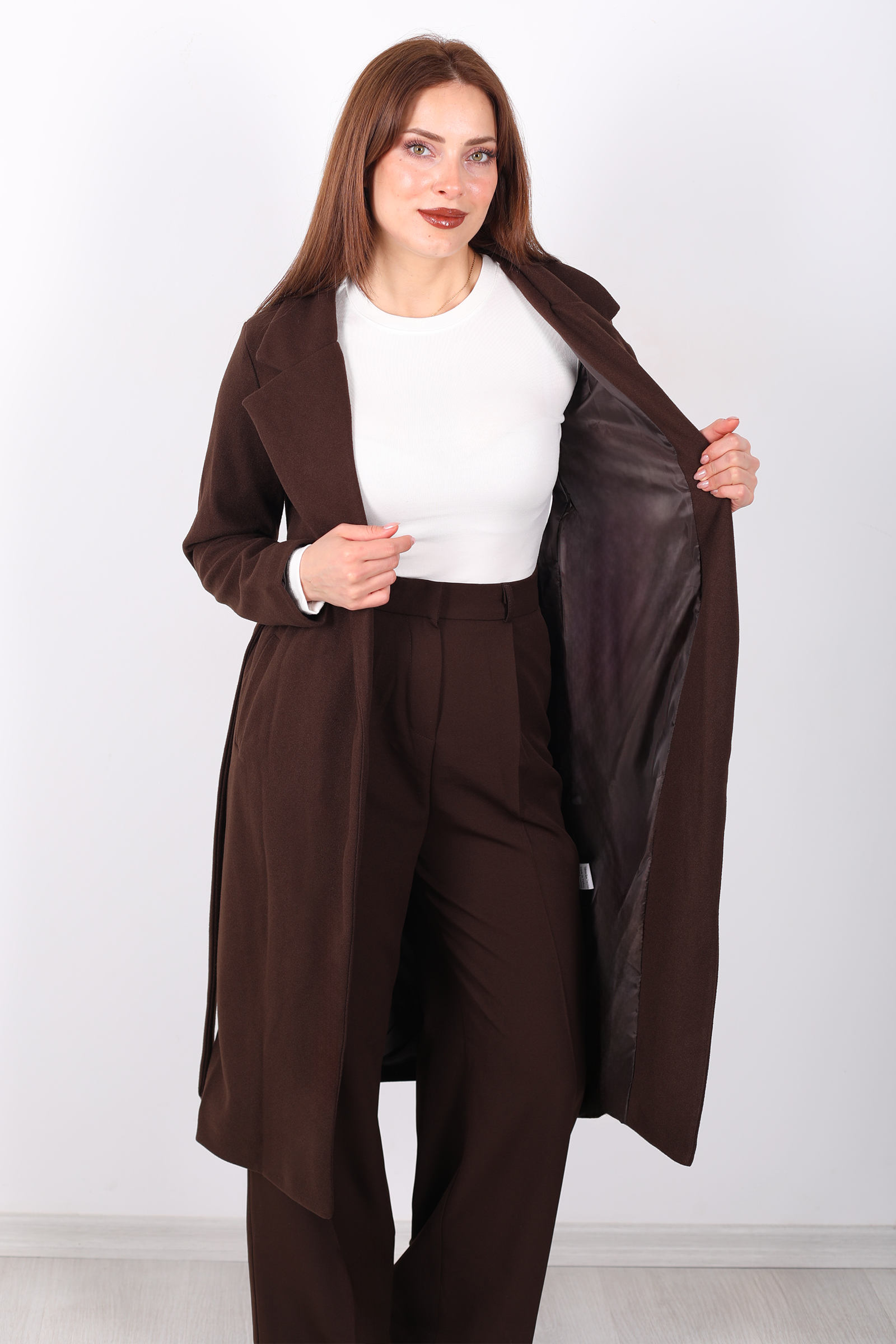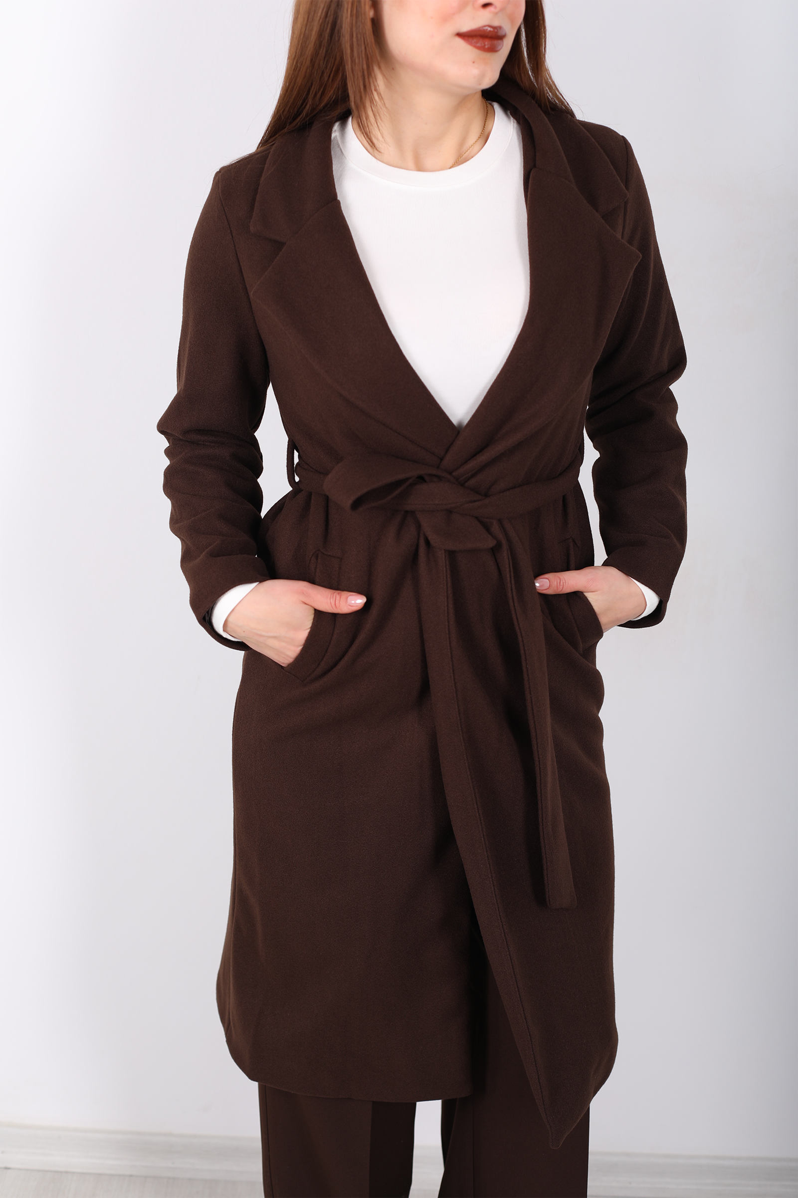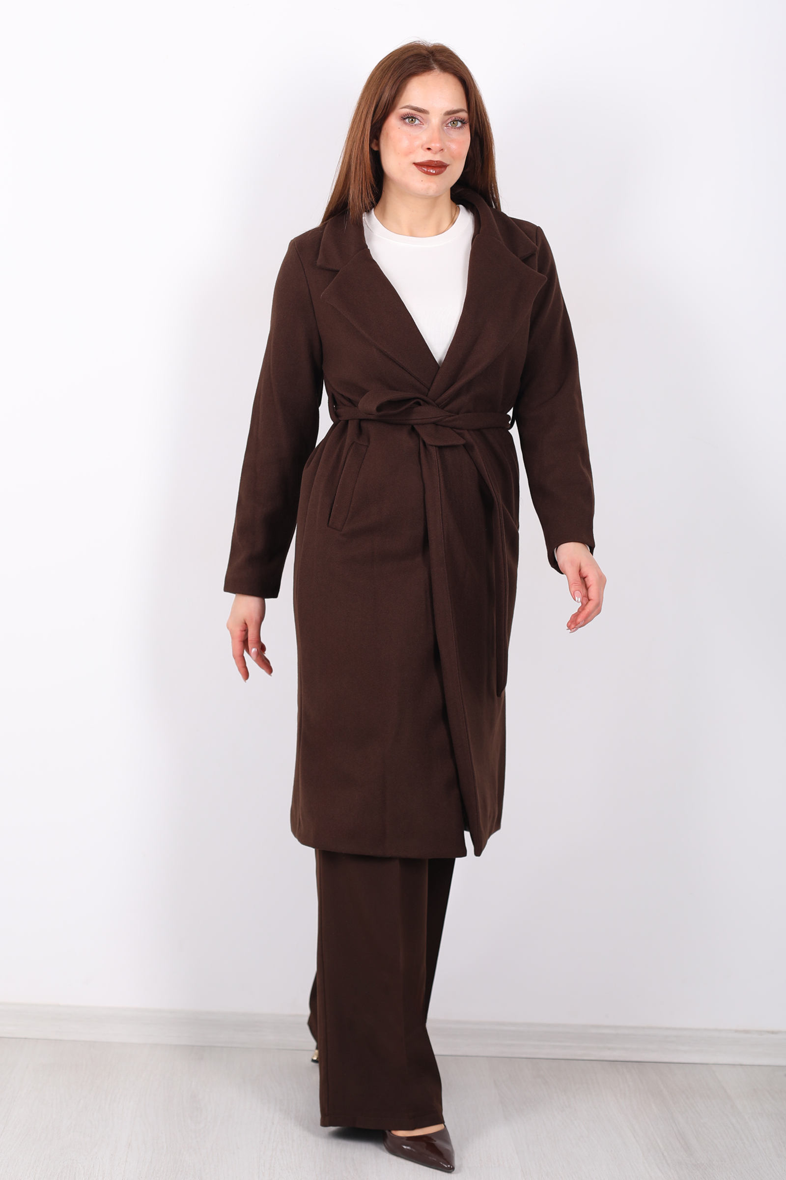 Açık kahverenginin zarif tonları ve kuşak detayının şıklığıyla, bu kadın kaban her mevsimde şıklığınızı tamamlar. Kuşağı, belinizi ince gösterirken, kase kesimi modern ve sofistike bir siluet yaratır. Kaliteli kumaşı sayesinde soğuk havalarda sizi sıcak tutar, şıklığından ise ödün vermez. Hem günlük kullanımda hem de özel etkinliklerde rahatça tercih edebileceğiniz bu kaban, zarif bir kış parçası arayanlar için ideal.