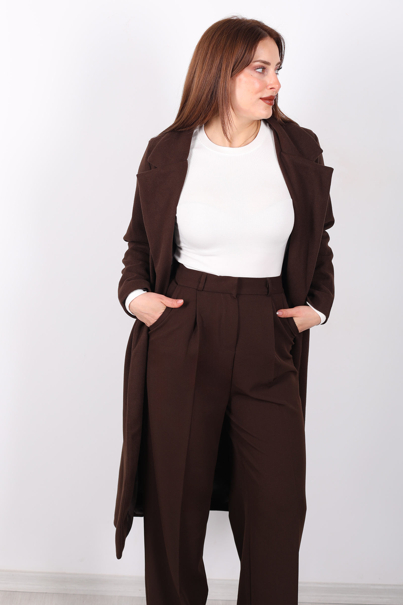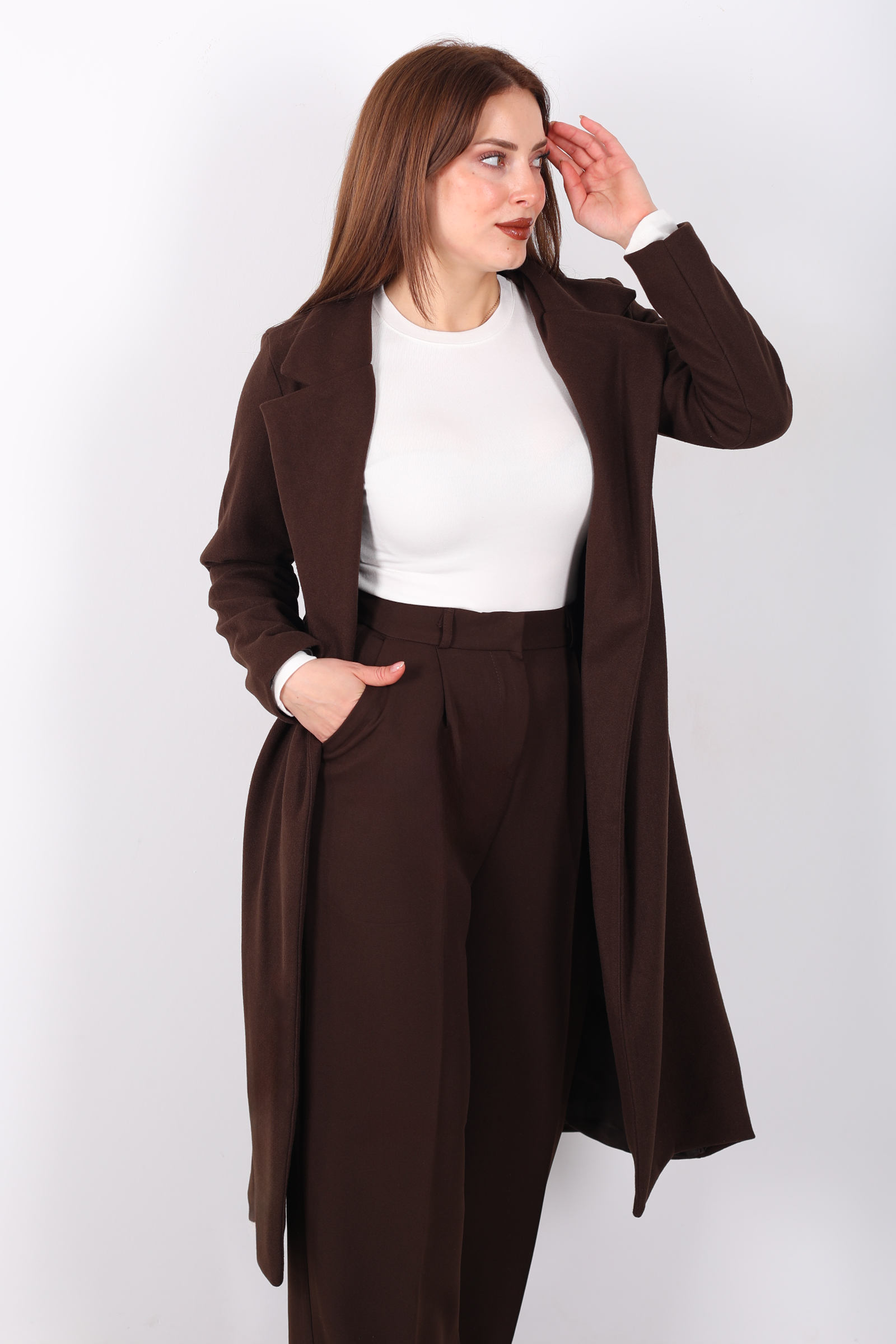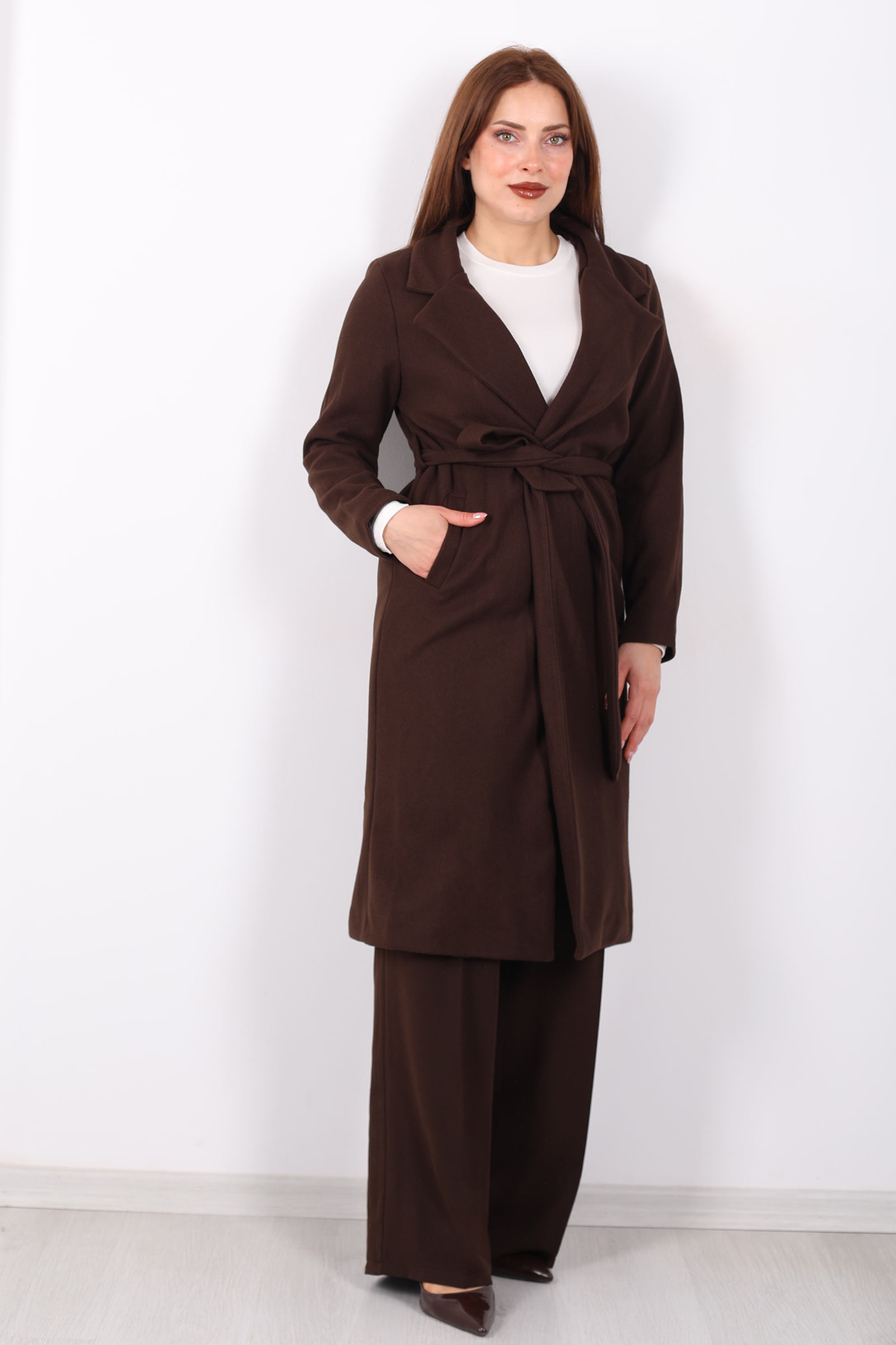 Açık kahverenginin zarif tonları ve kuşak detayının şıklığıyla, bu kadın kaban her mevsimde şıklığınızı tamamlar. Kuşağı, belinizi ince gösterirken, kase kesimi modern ve sofistike bir siluet yaratır. Kaliteli kumaşı sayesinde soğuk havalarda sizi sıcak tutar, şıklığından ise ödün vermez. Hem günlük kullanımda hem de özel etkinliklerde rahatça tercih edebileceğiniz bu kaban, zarif bir kış parçası arayanlar için ideal.