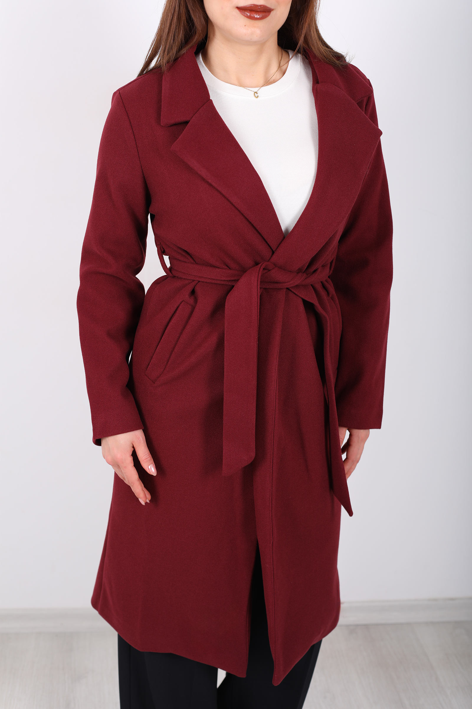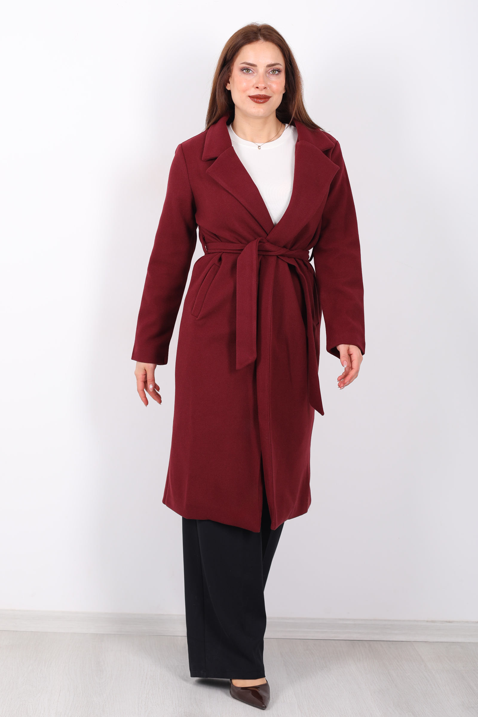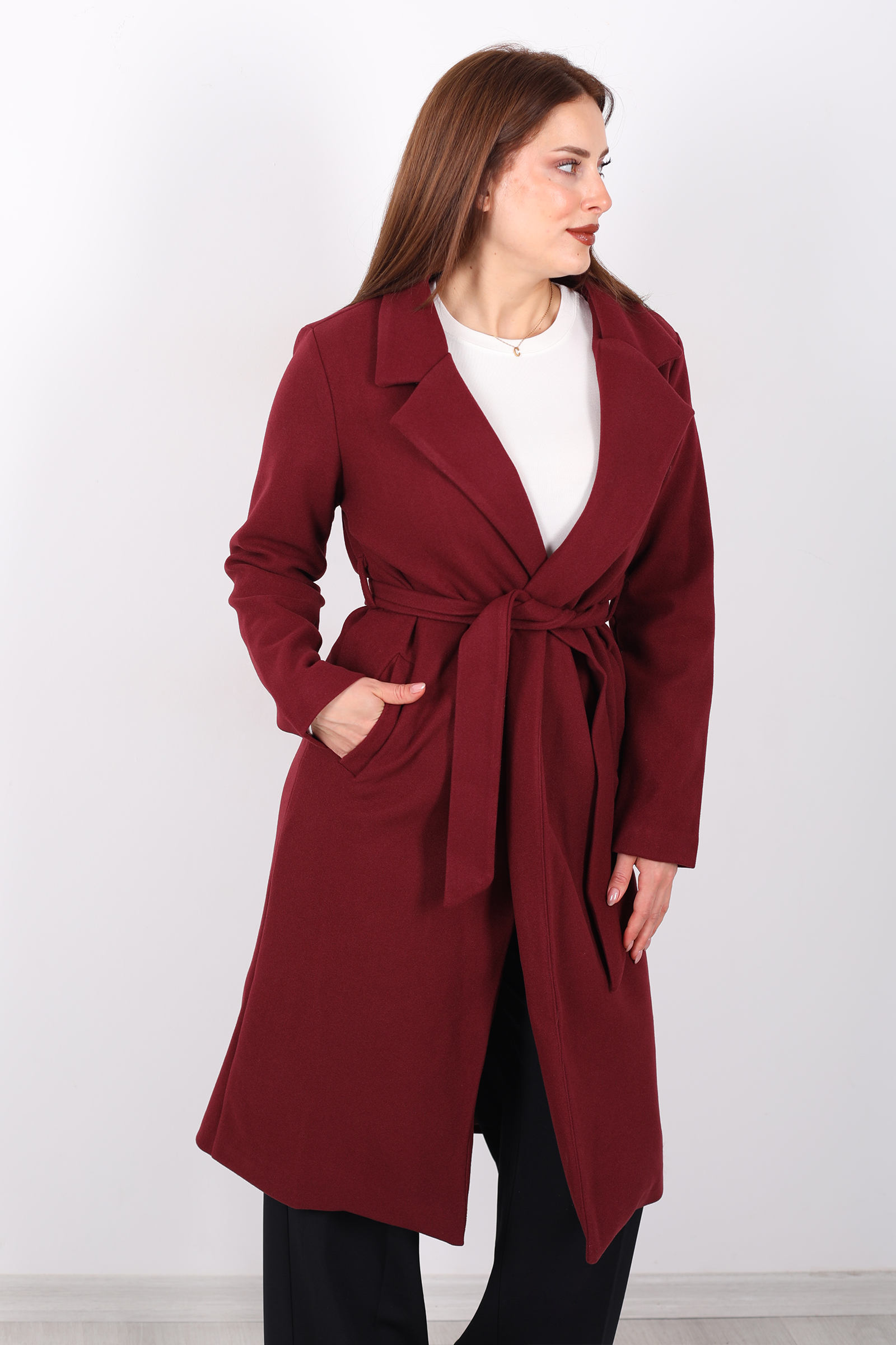 Bordo renginin zarafetiyle kış stilinizi tamamlayın! Kuşaklı kase kesim kadın kaban, bel kısmındaki kuşak detayı ve modern tasarımıyla sofistike bir hava yaratır. Yumuşak kumaşı sayesinde sıcak tutarken, zarif siluetiyle her kombine uyum sağlar. Hem günlük kullanımda hem de özel etkinliklerde rahatlıkla tercih edebileceğiniz bu kaban, hem şıklığı hem de konforu bir arada sunar. Bordo tonu, kış aylarının soğuk günlerinde stilinize enerji katacak.