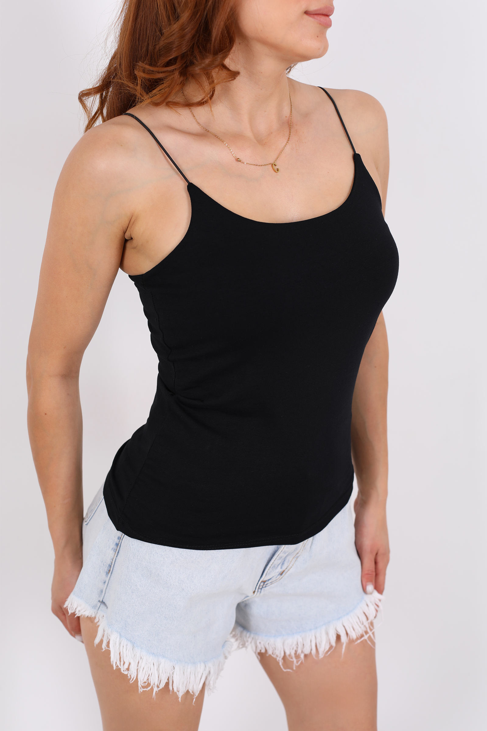 Siyahın asaleti ve zarafeti, bu badiyle modern bir dokunuşla buluşuyor. Lastik askıları ve uzun kesimiyle hem şıklığı hem de rahatlığı bir arada sunuyor. Pamuk ve elastan karışımı kumaşı sayesinde vücudu nazikçe sarar ve esnekliğiyle gün boyu konfor sağlar.