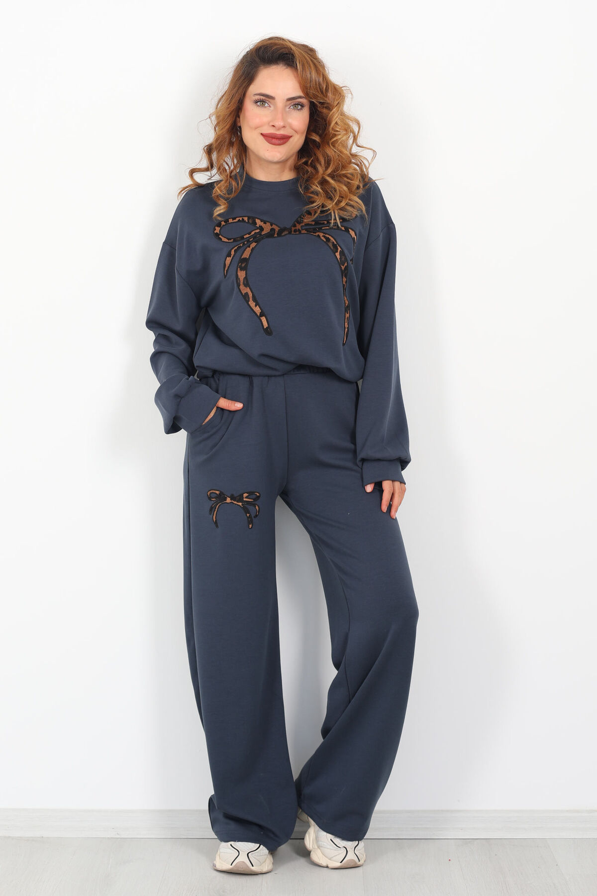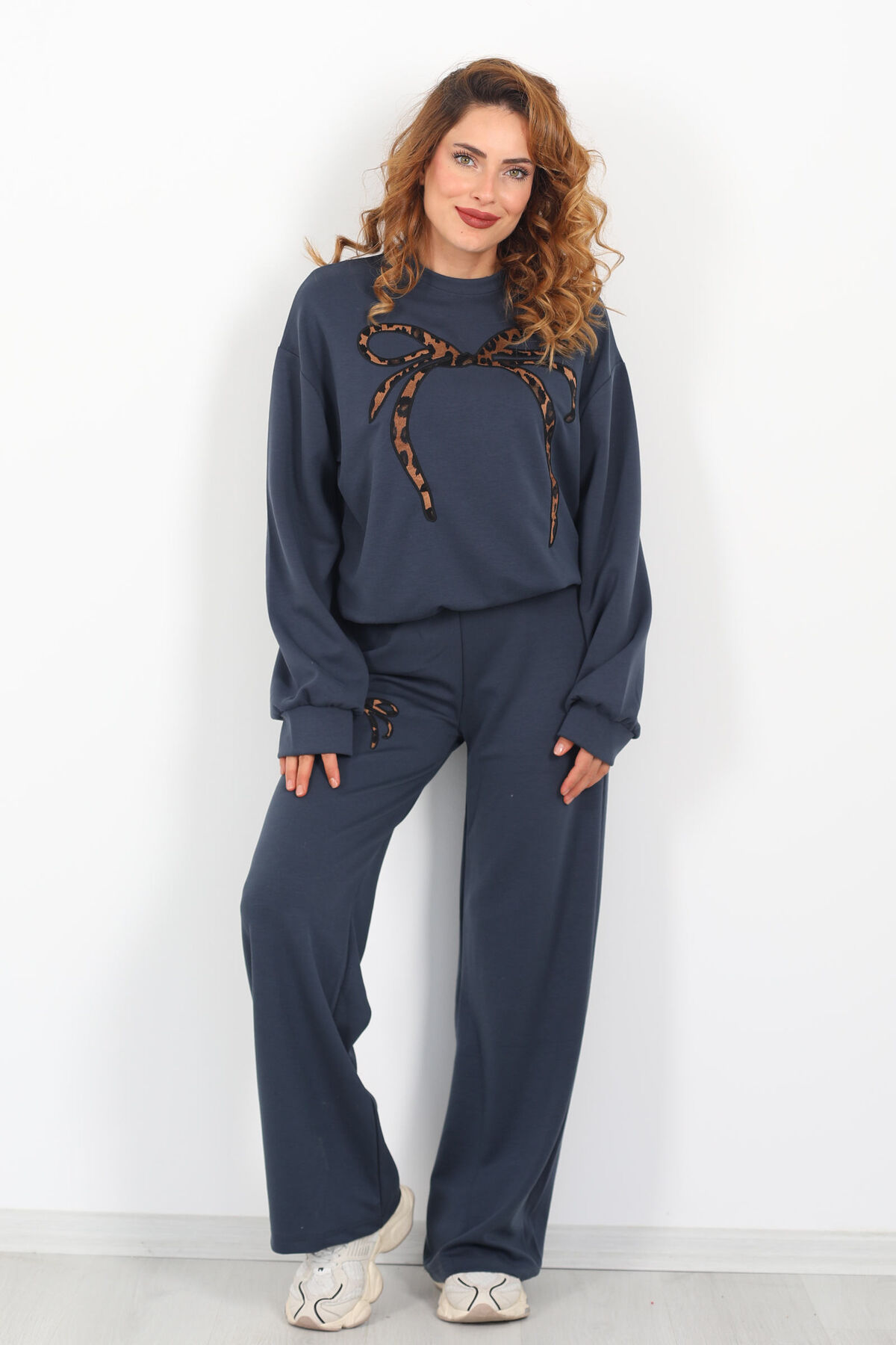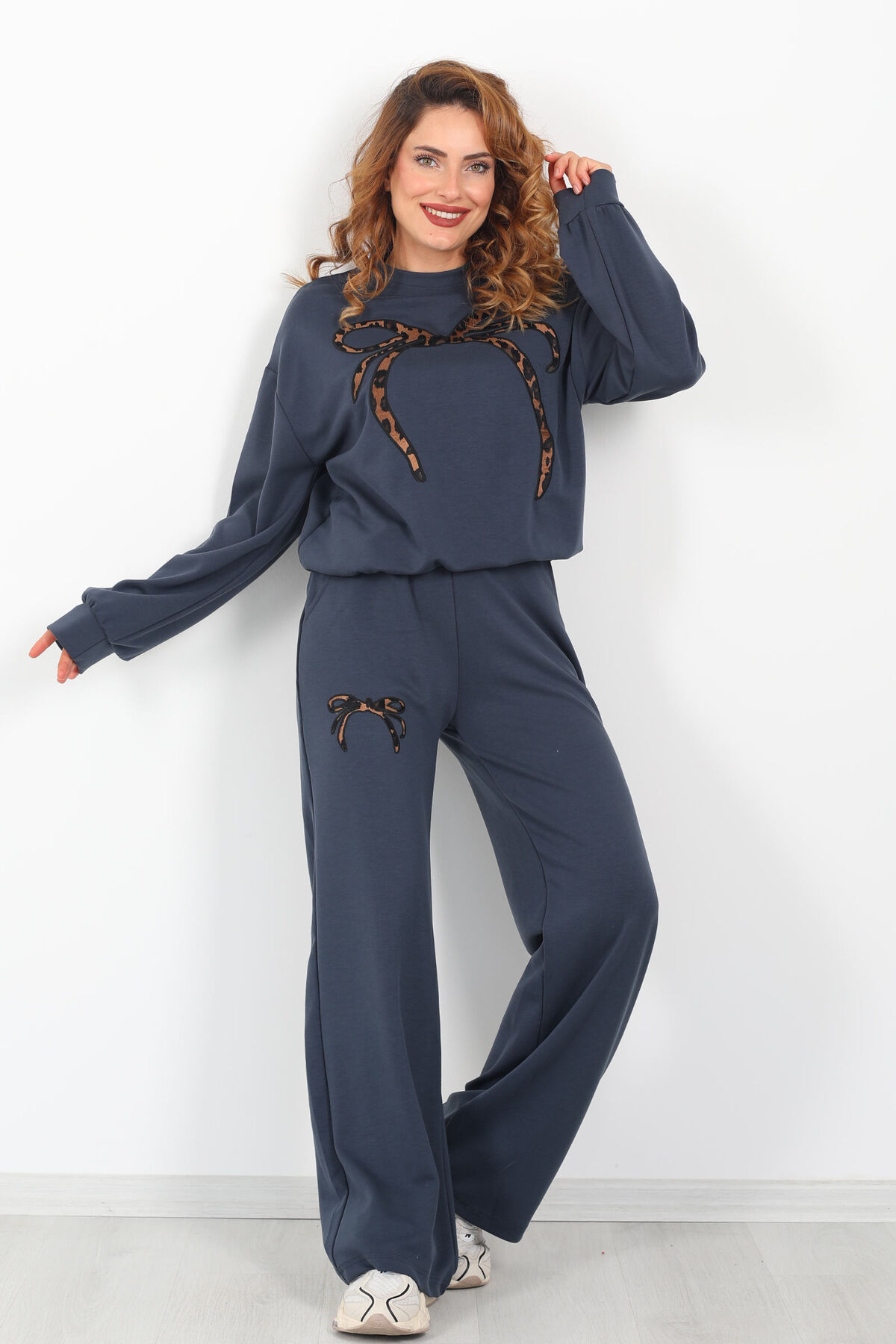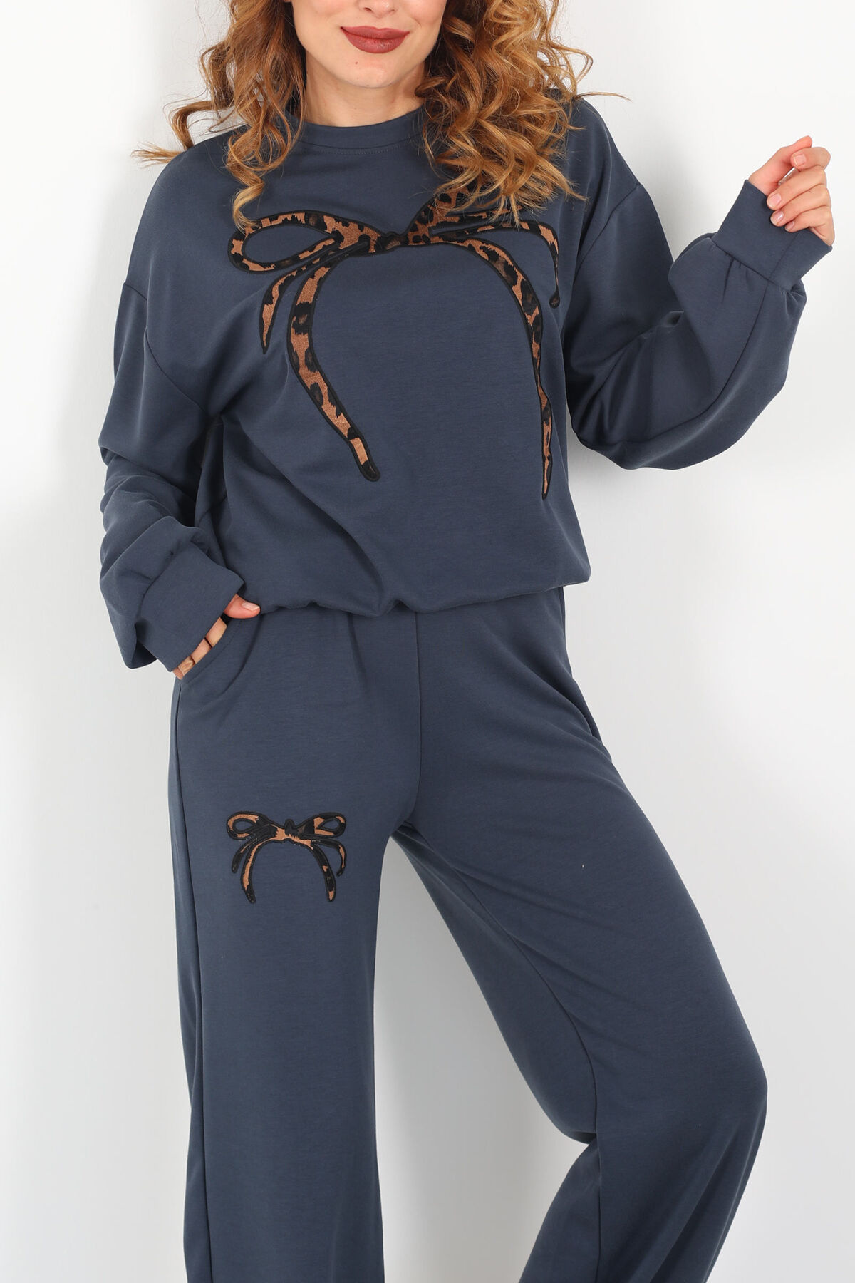 Leopar Nakışlı Modal Antrasit Kadın Eşofman Takım