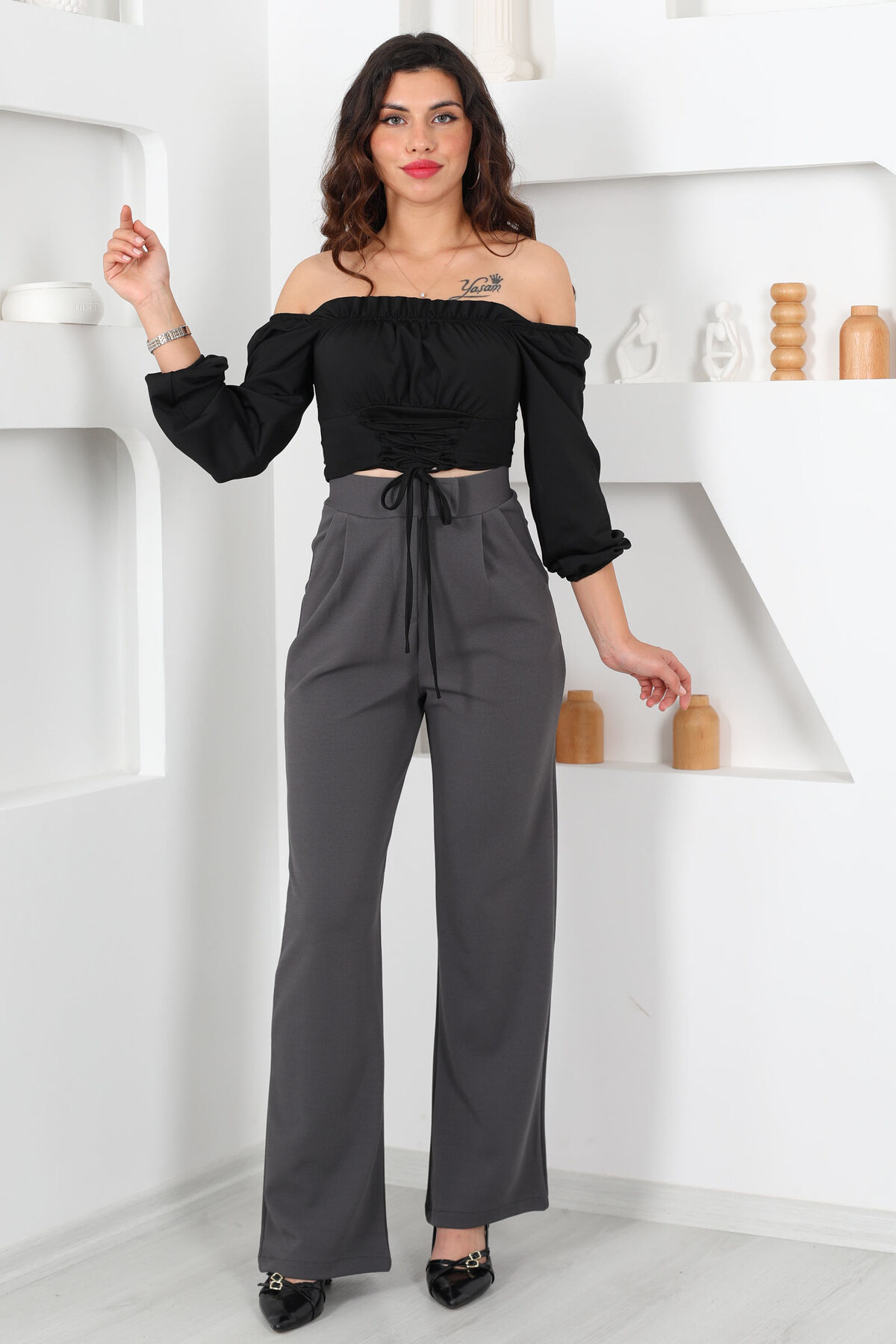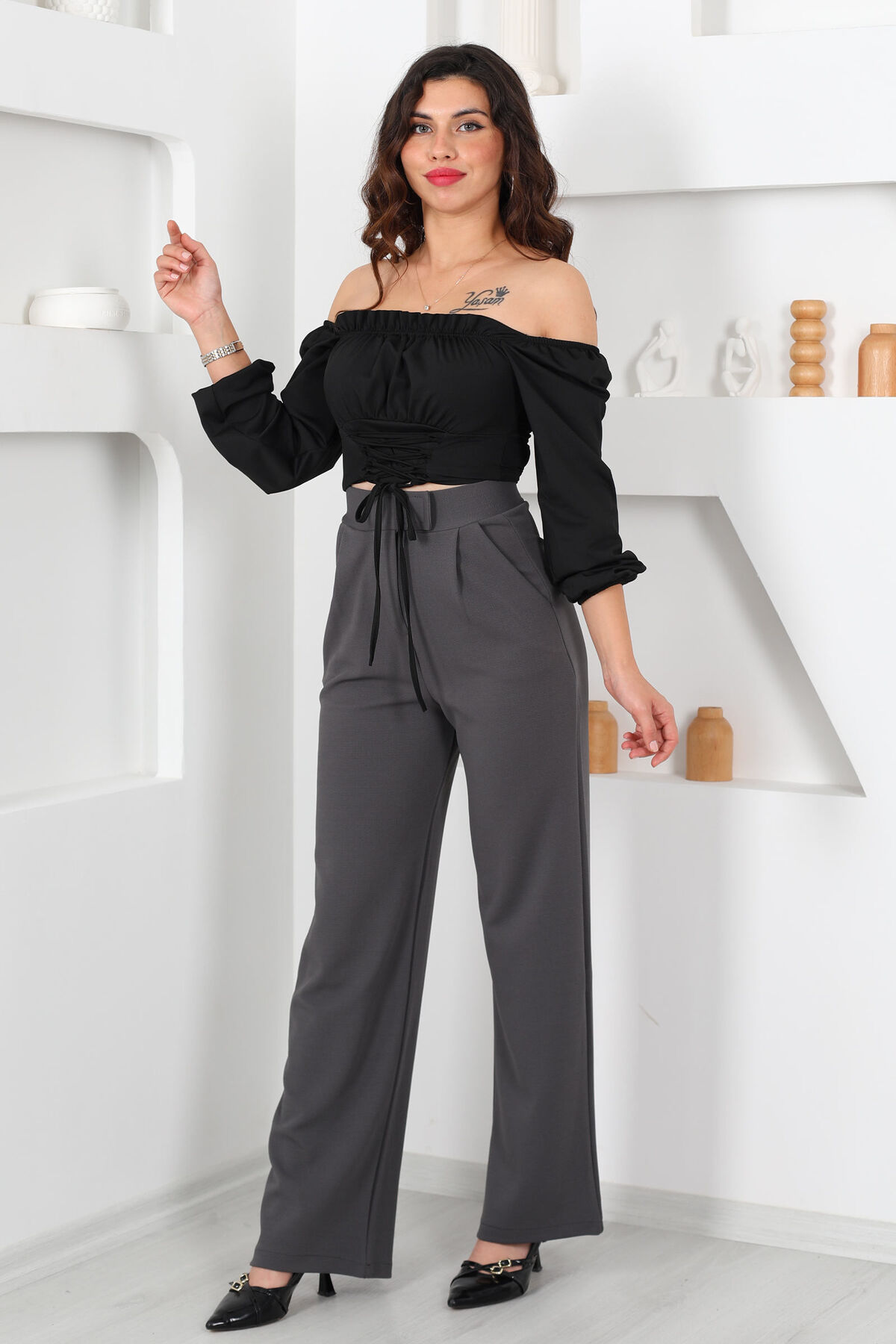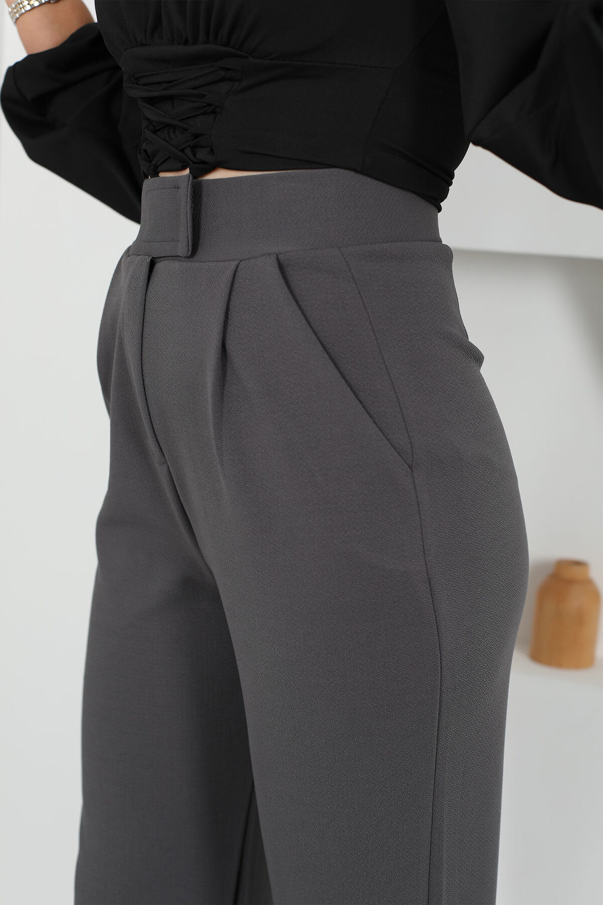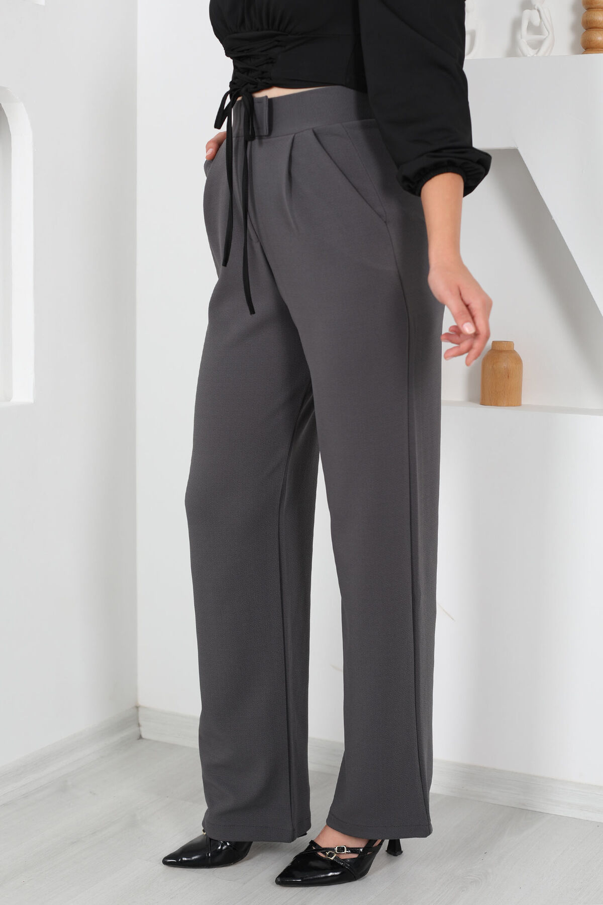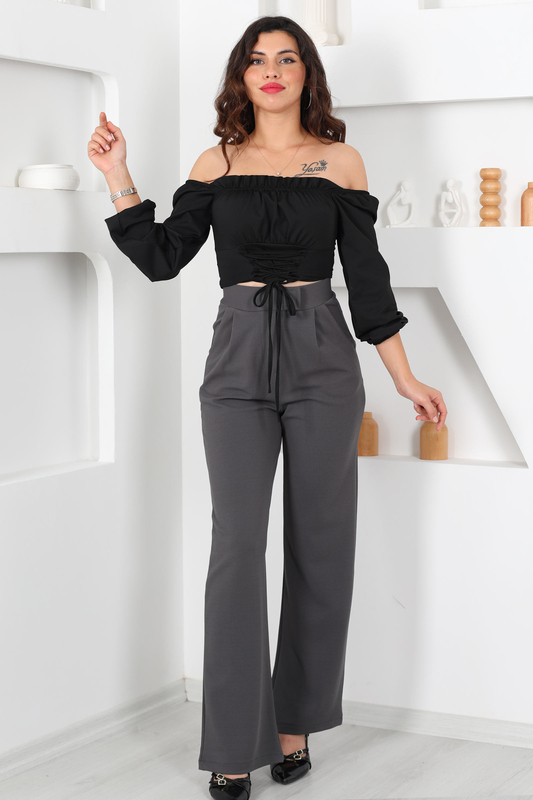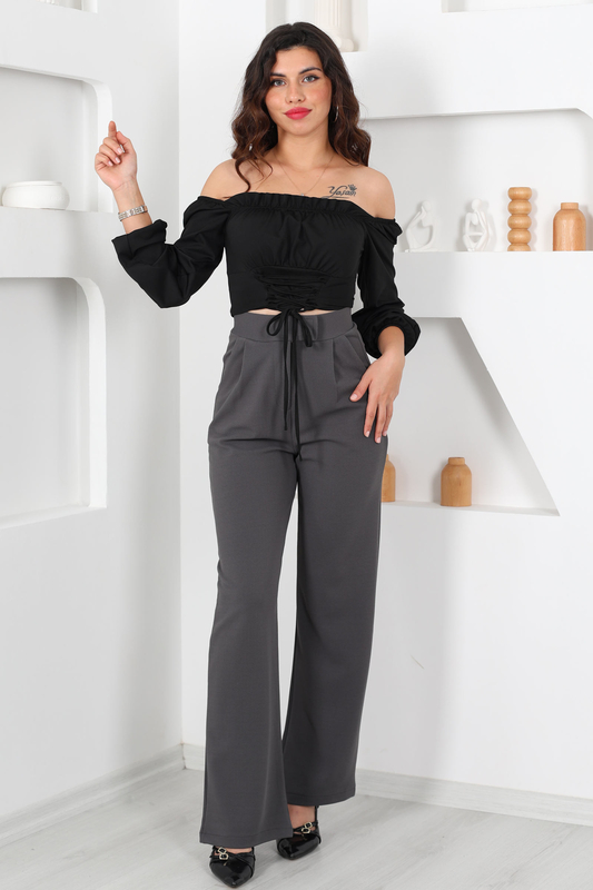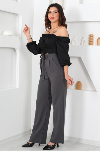 Gün boyu konforu ve zarafeti arayanlar için tasarlanmış Likralı Cırtlı Antrasit Kadın Palazzo Pantolon, geniş kesimi ve esnek kumaşıyla özgür hareket imkanı sunar. Antrasit renginin nötr ve sofistike tonu, her tarzla kolayca uyum sağlar.