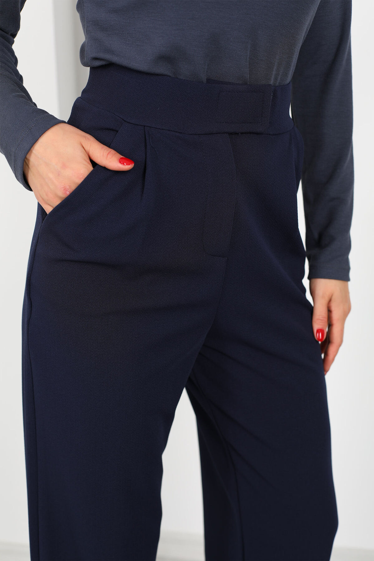 Zarafetinize rahatlığın dokunuşunu ekleyin! Likralı Cırtlı Lacivert Kadın Palazzo Pantolon, özgür hareket kabiliyeti sunan likralı kumaşı ve cırt cırt bel detayıyla kişisel konforunuzu en üst seviyeye çıkarıyor. Derin lacivert rengi, sofistike ve klasik bir görünüm sağlarken, palazzo kesimi stilinize modern bir hava katıyor.Ofis günlerinden hafta sonu gezmelerine kadar her ortamda kullanabileceğiniz bu pantolon, hem şıklığınızdan ödün vermemenizi hem de gün boyu rahat etmenizi mümkün kılar. Geniş bacak kesimi ve ayarlanabilir beliyle benzersiz bir uyum sunar.