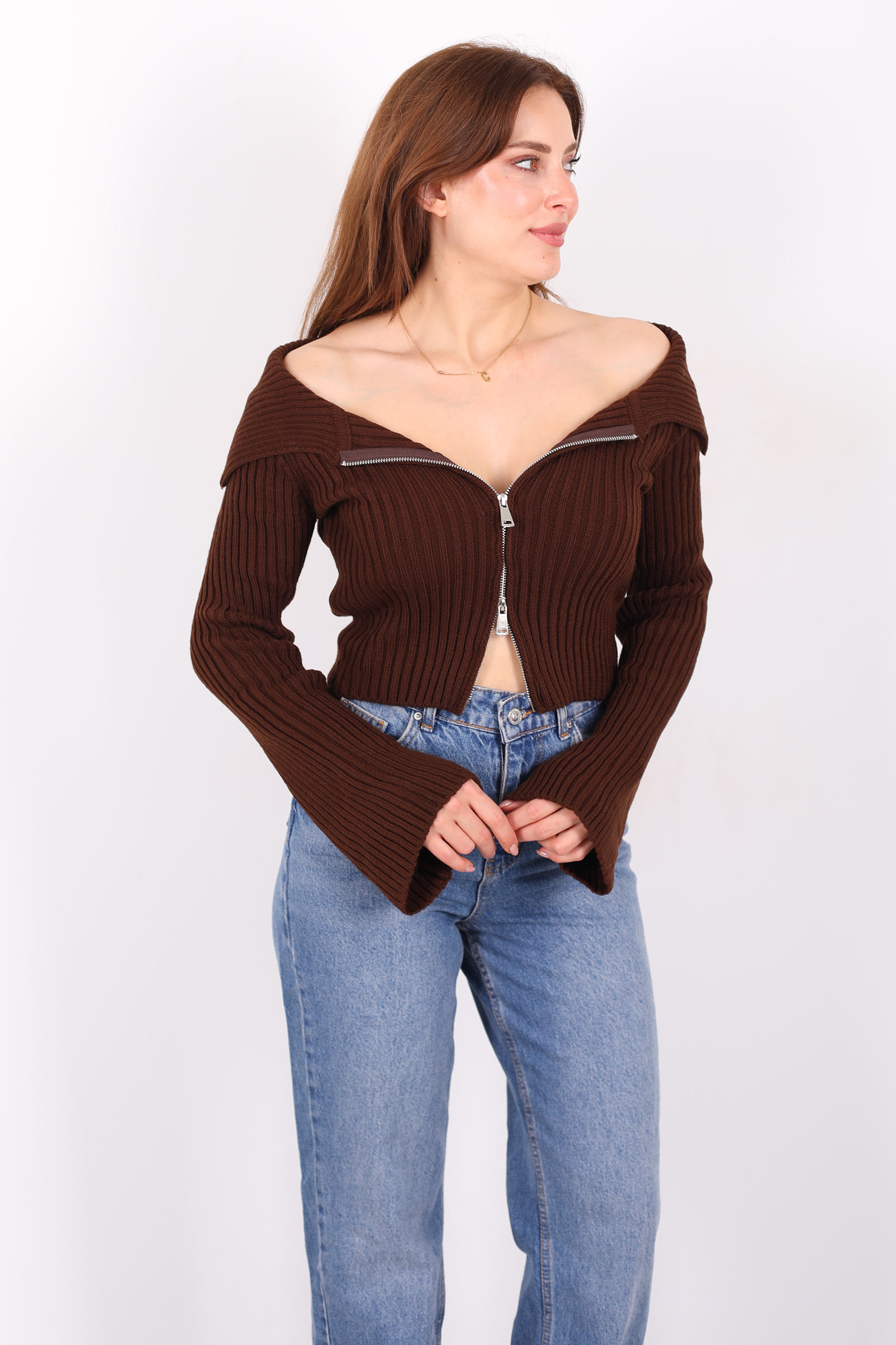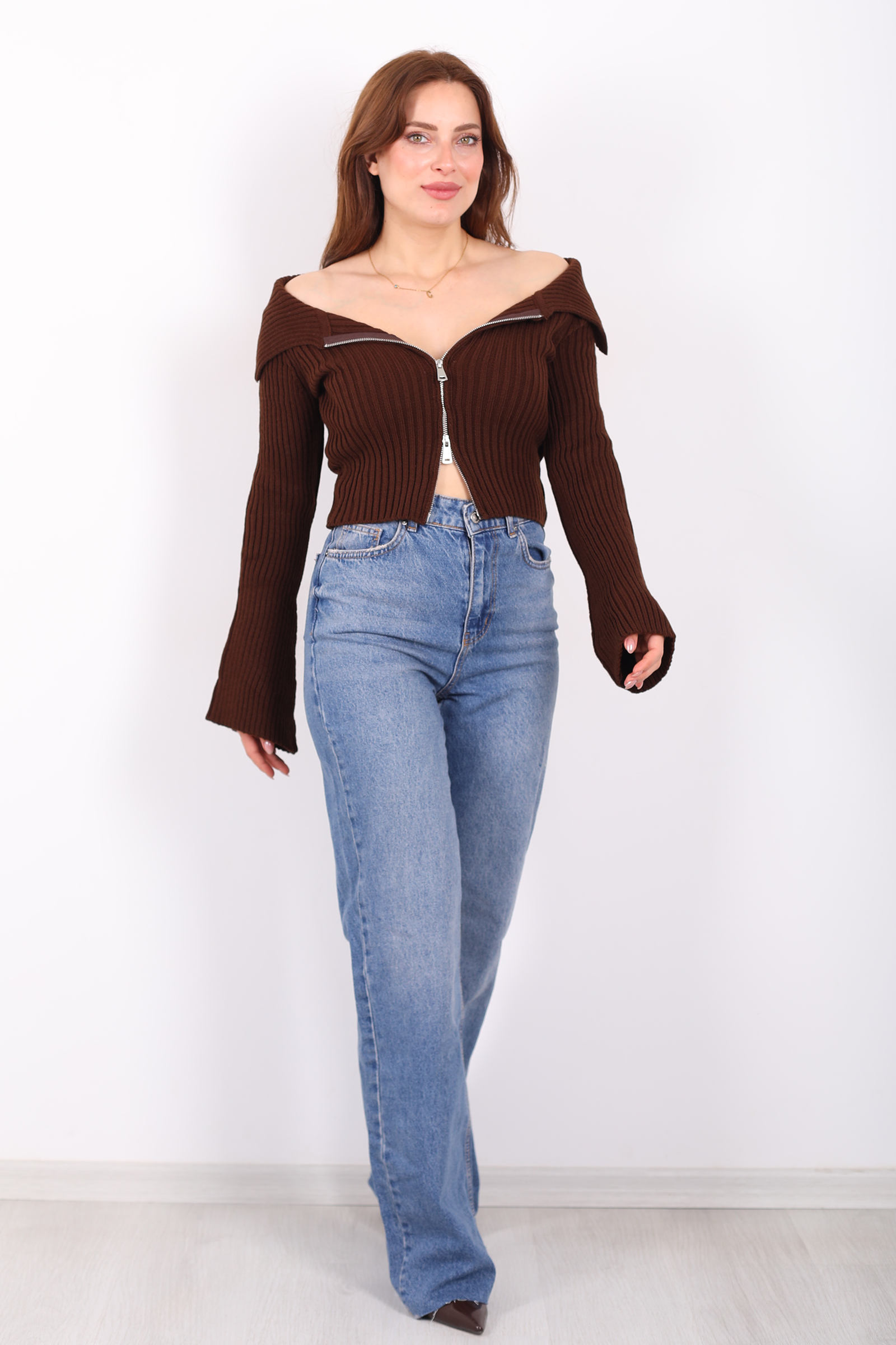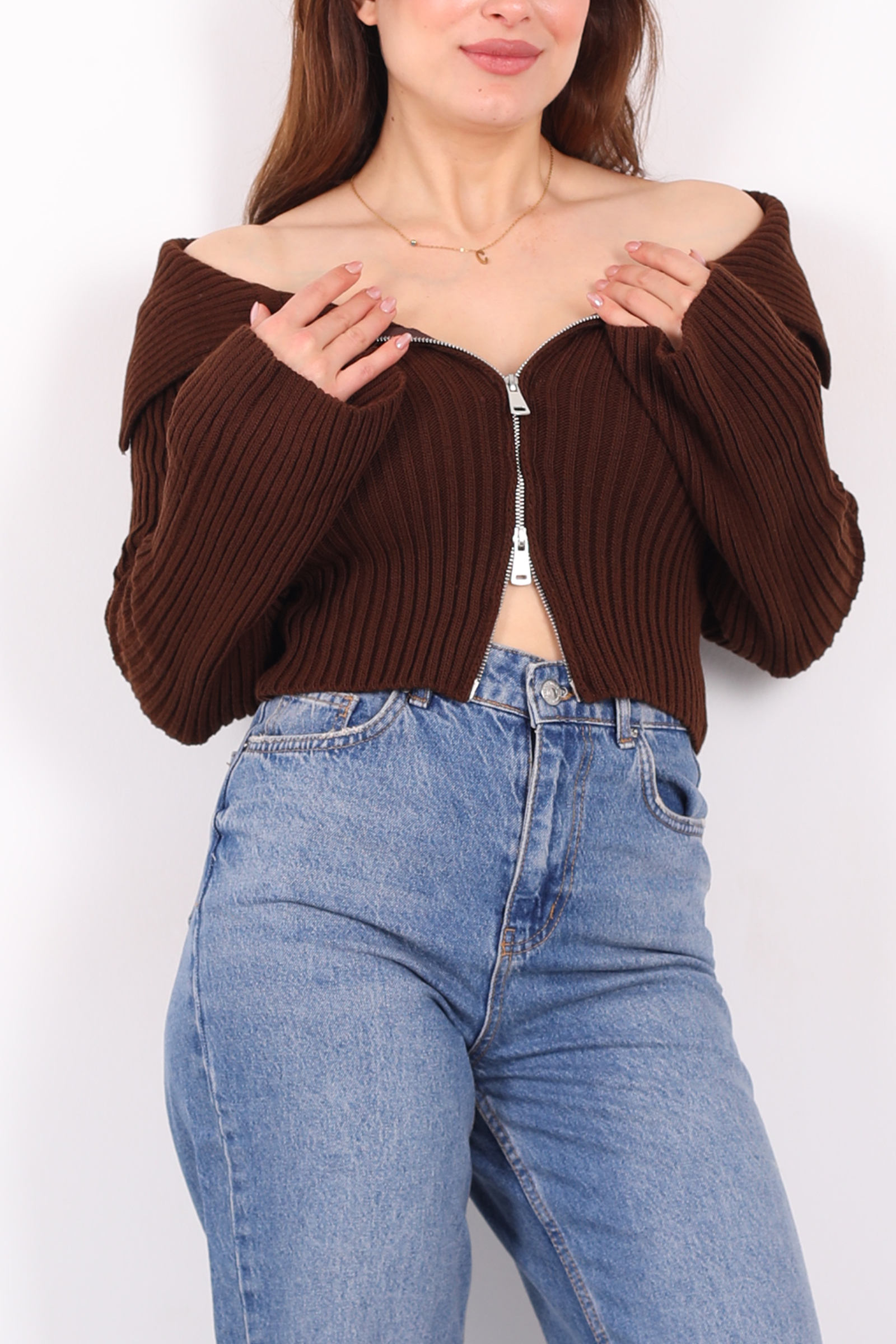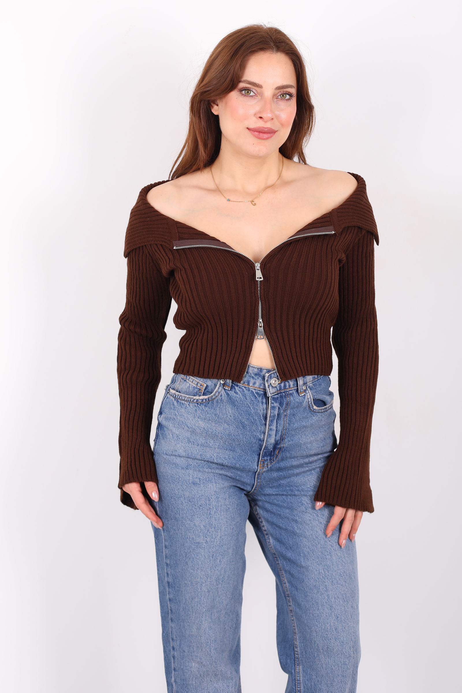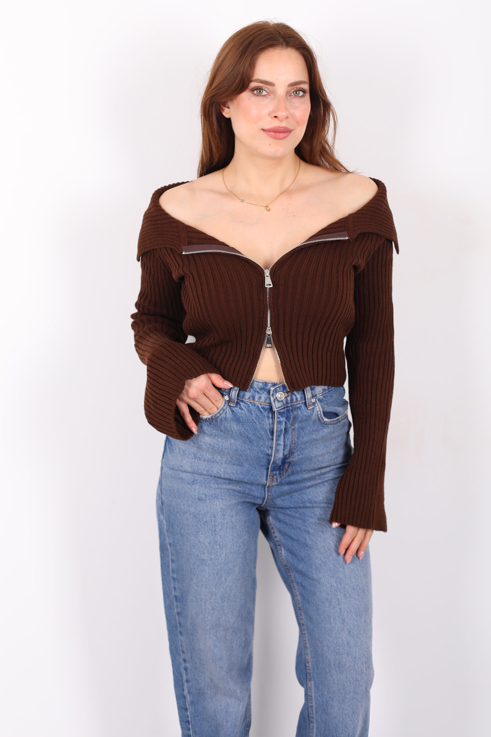 Modern ve zarif bir stil arayanlar için tasarlanmış Madonna yaka çift fermuarlı kahverengi kadın triko hırka, günlük ve şık kombinlerde fark yaratır. Yumuşak triko dokusu ile konfor sağlar, çift fermuar detayı ise farklı kullanım şekilleri sunarak tarzınıza dinamizm katar. Esnek ve normal kalıplı yapısı sayesinde çeşitli vücut tiplerine uyum sağlar. İç etiketinde yer alan yıkama talimatına uygun şekilde bakım yaparak uzun ömürlü kullanım elde edebilirsiniz.
