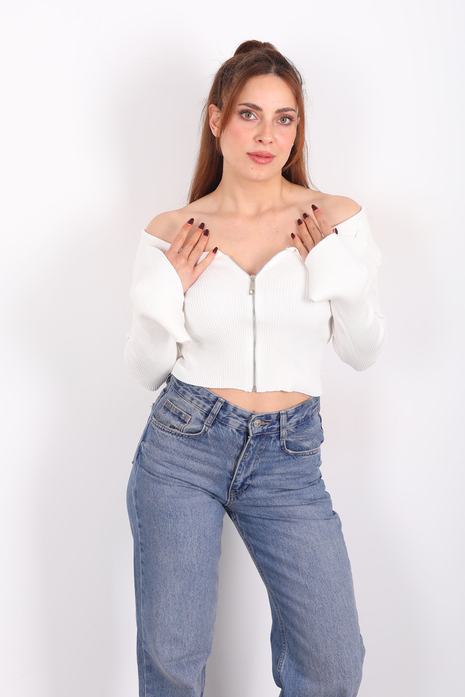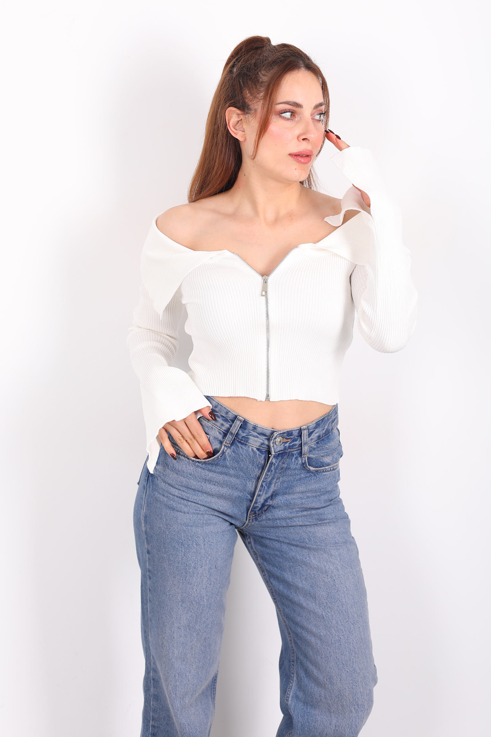 Ekru rengin zarif duruşunu, şıklıkla rahatlığı bir araya getiren bu bluz, günlük kombinlerin yıldızı olmaya aday. Madonna yaka tasarımı omuz hattını yumuşak bir çerçeveyle belirlerken, ön fermuar sayesinde görünümünü hızlıca değiştirebilirsin. İspanyol kollar ise kol hareketlerine hacim katarak, bluzun siluetini sofistike ve dikkat çekici kılar.