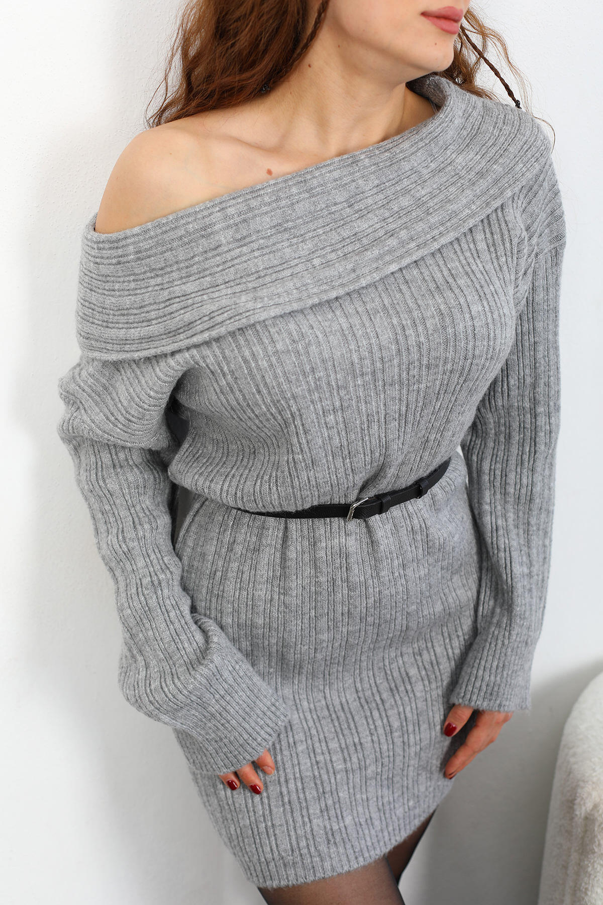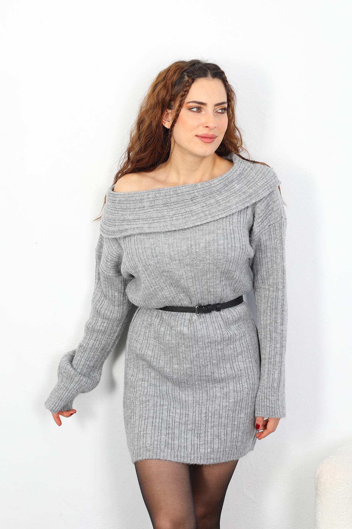 Göğüs Pileli Kemerli Önü Yırtmaçlı Kahverengi Kadın Elbise