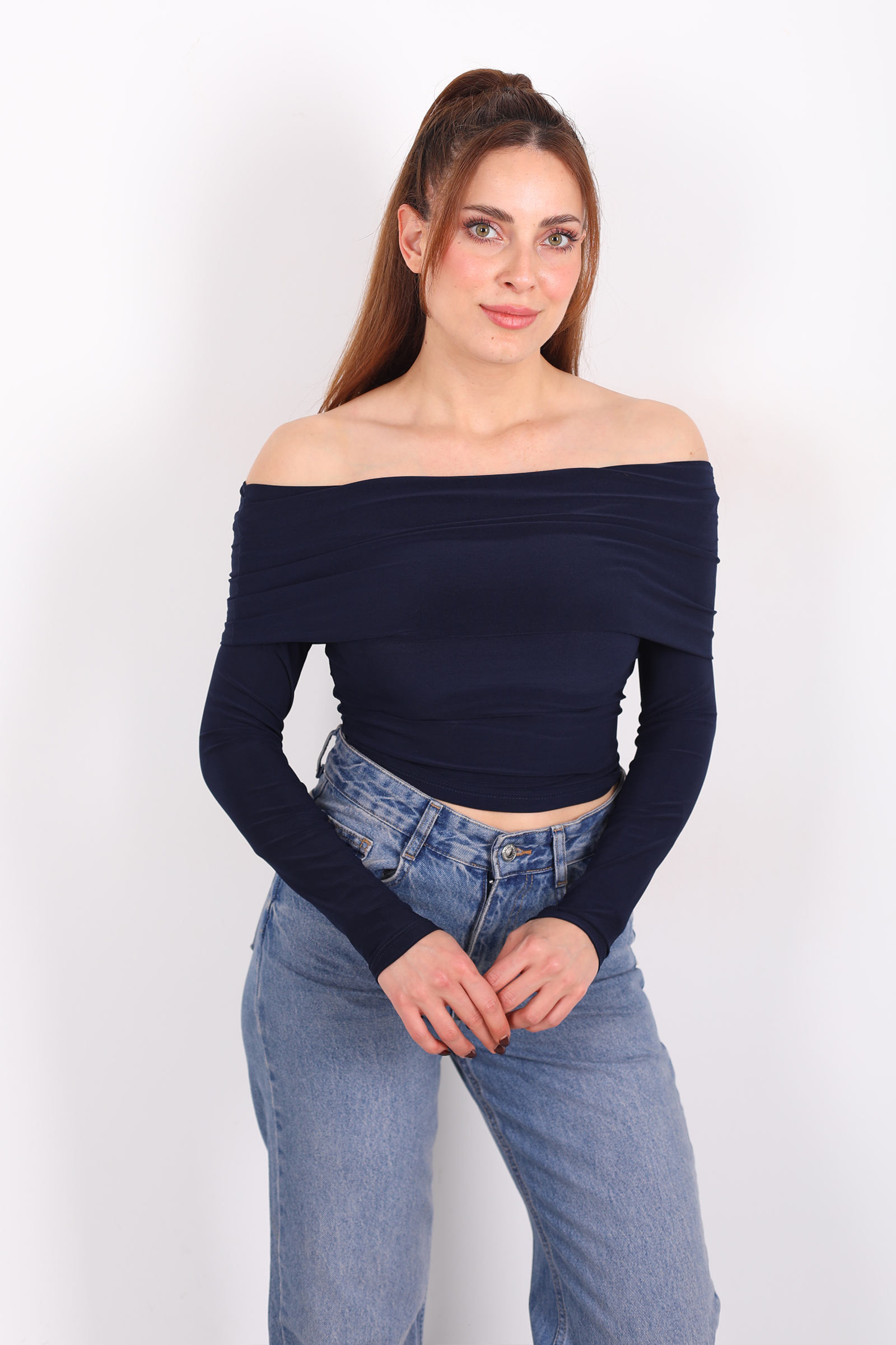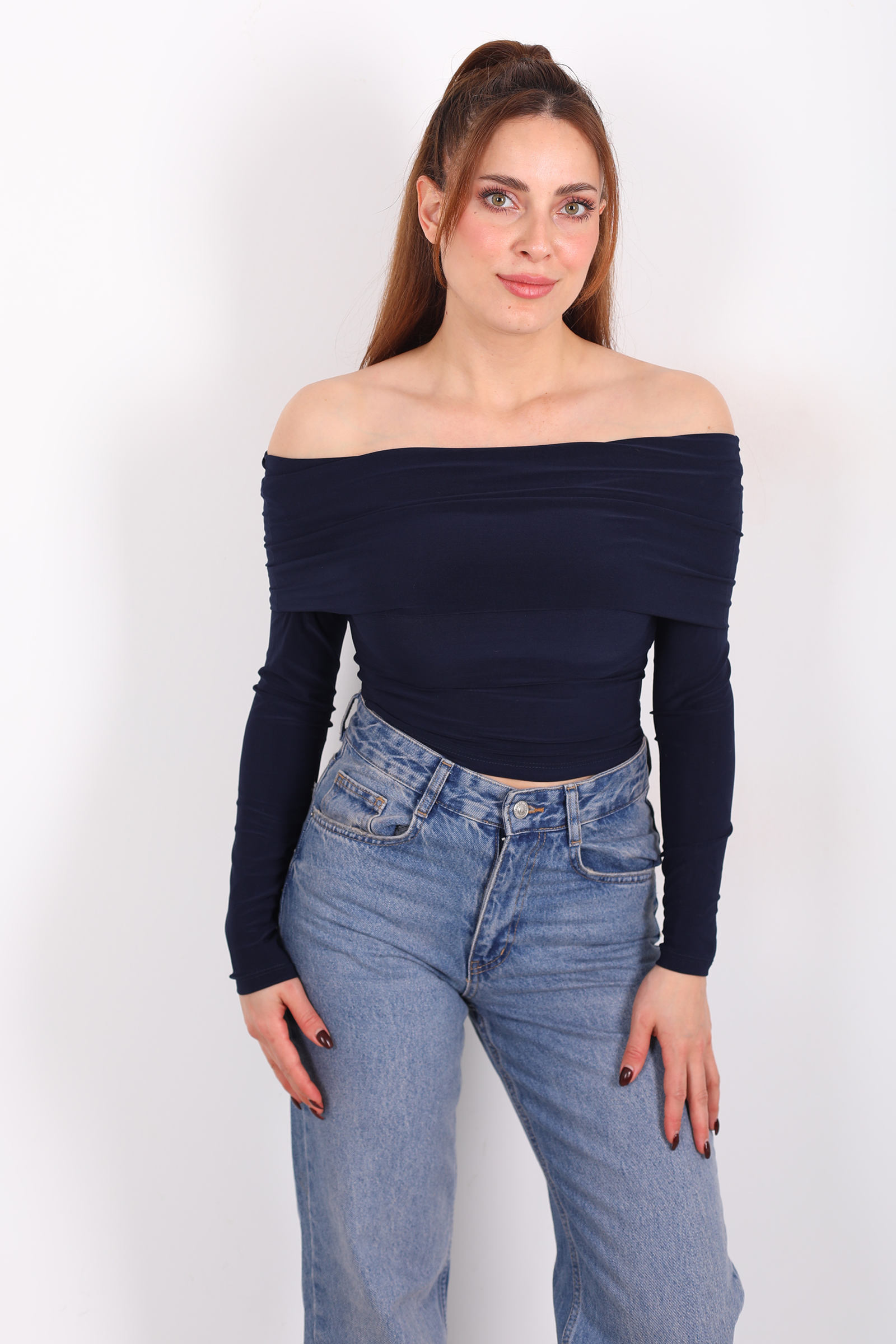 Derin bir akşam gökyüzünü andıran lacivertin zarafeti, bu Madonna yaka bluzda sessiz ama güçlü bir ifade buluyor. Madonna yaka, boyun hattını açık bırakırken omuz çizgisine nazik bir vurgu yapar; bu da hem feminen hem de dingin bir duruş sağlar. Sıradanlıktan uzak, sakin bir karizma arayan stil sahipleri için ideal bir parça.