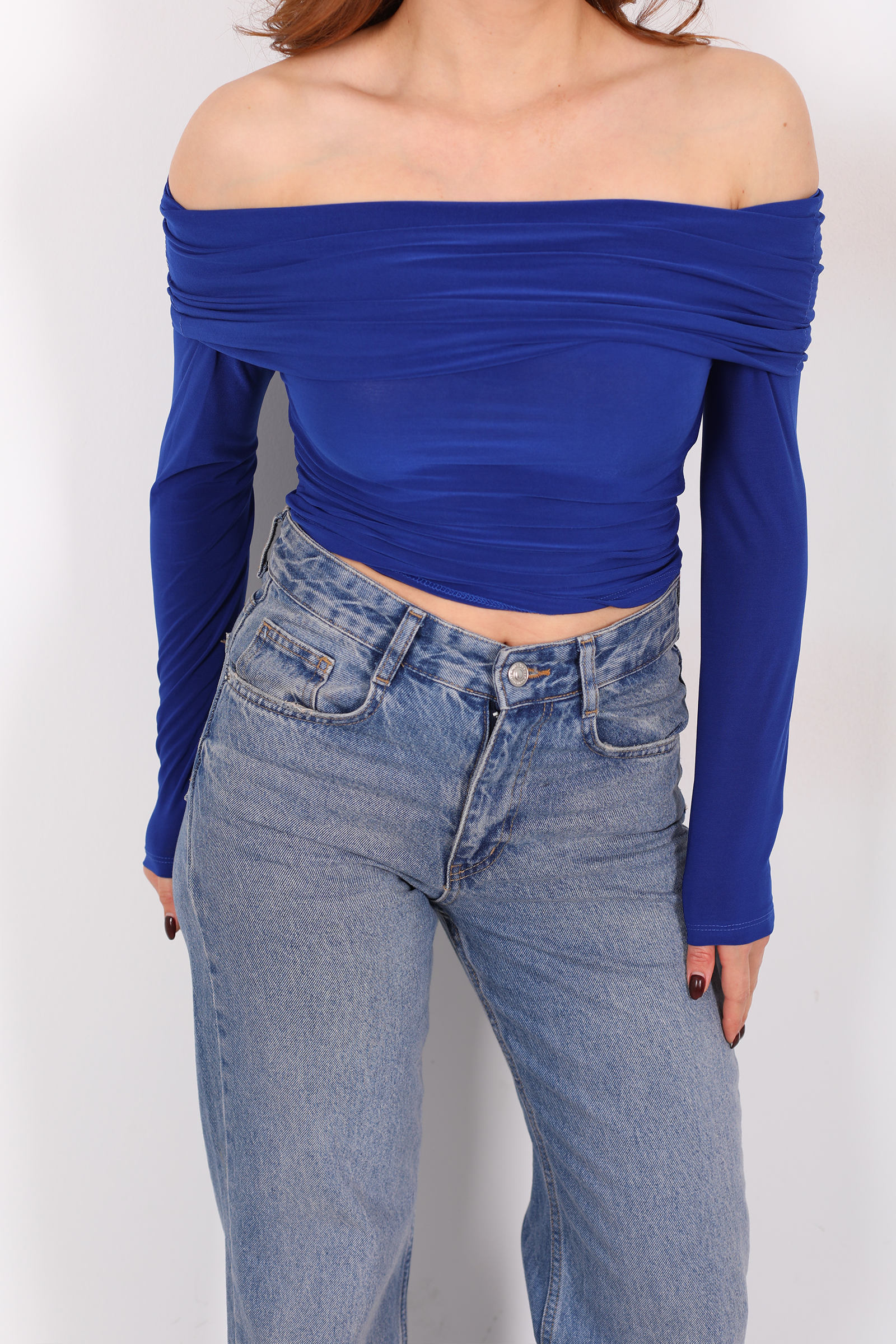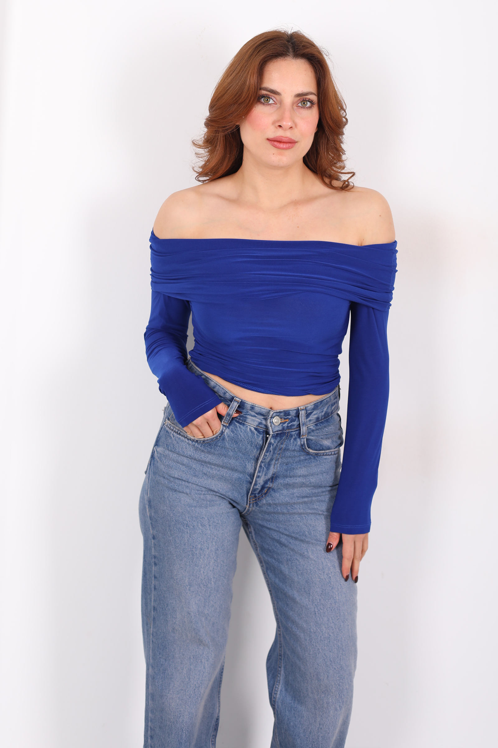 Bluz, klasik çizgileri modern detaylarla birleştiriyor; ister kot pantolonla rahat bir şehir stili oluştur, ister etekle sofistike bir duruş yakala. Saks mavisi, sade alt parçalarla kontrast oluşturarak göz alıcı ama zarif bir hava katıyor. Madonna yaka ve hafif dökümlü kesim, minimal ama etkileyici bir stil sunuyor.