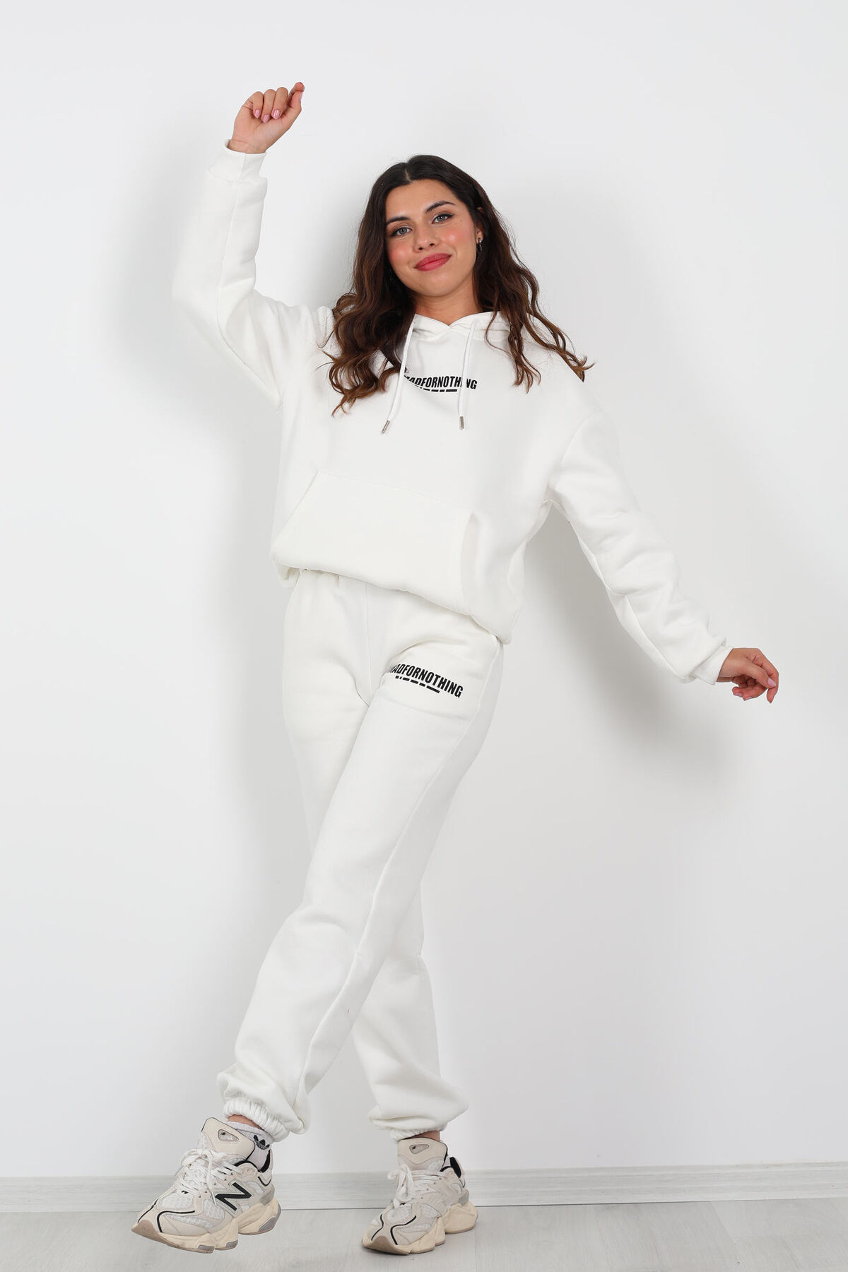 Saf beyazın enerjisini üzerinize geçiren bu Matfornothing baskılı kapüşonlu üç iplik takım ile stiliniz hem ferah hem dikkat çekici olsun.Üç ip kumaş kombinasyonu, pamuk‑polyester karışımıyla nefes alabilirlik, yumuşaklık ve sıcaklık arasında kusursuz bir denge kurar. Kapüşon detayı, hafif serin havalarda koruma sağlarken, Matfornothing baskısı sade beyaz yüzeye kontrast bir ifadeyle karakter kazandırır.