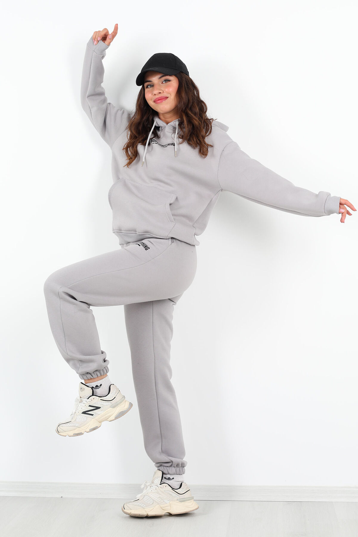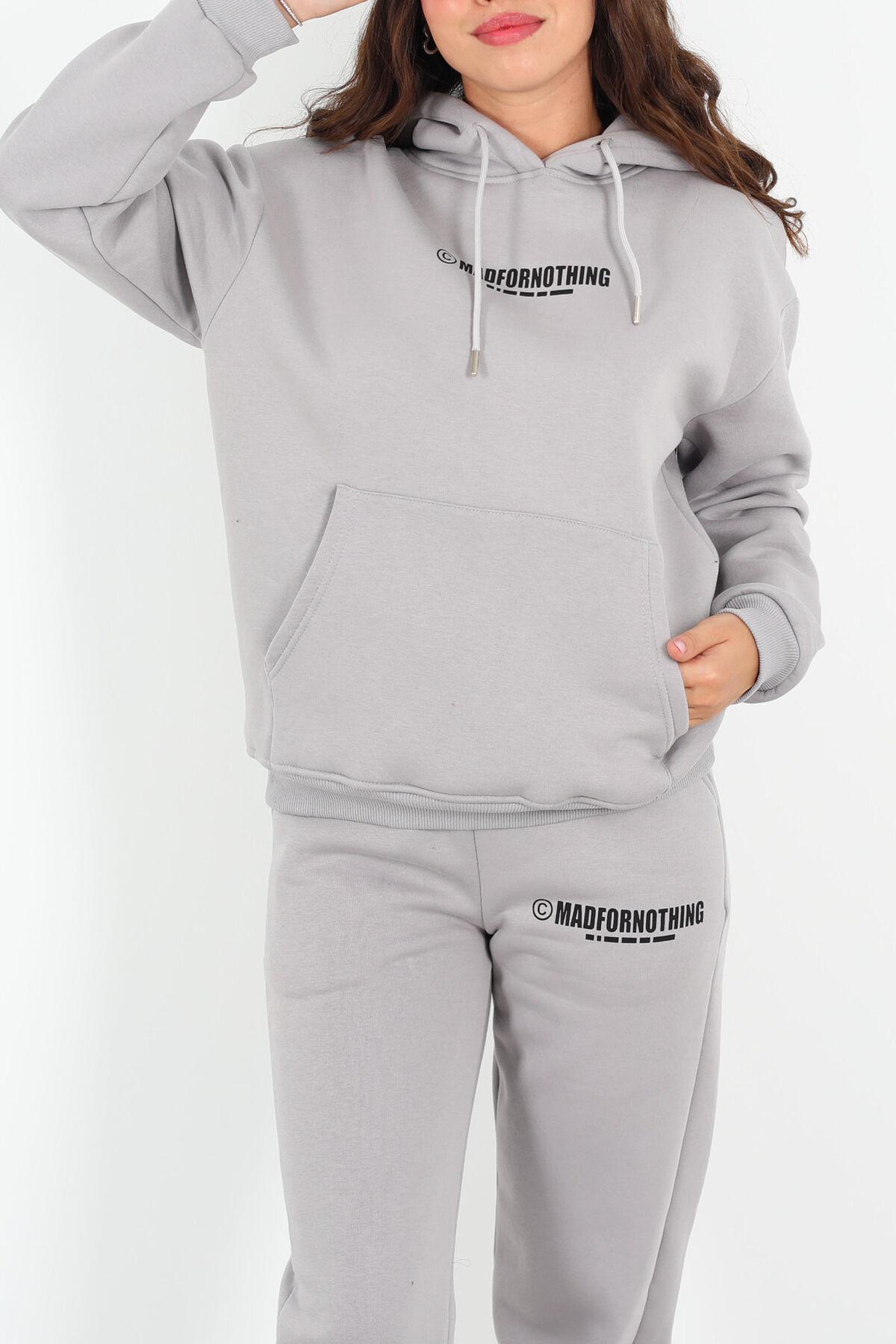 Bu gri Matfornothing baskılı kapüşonlu sweat takım, sade şıklığıyla dikkat çekmek istemeyen ama her zaman stil sahibi olan kadınların ruhunu yansıtıyor. Gri rengin zamansız sadeliği, modern kesimlerle birleşerek günlük hayatta kullanabileceğiniz ama sıradanlıktan uzak bir kombin sunuyor. Oversize yapısı, hem hareket özgürlüğü hem de cool bir duruş kazandırırken; kapüşon detayı ve ön kısmındaki iddialı baskı, klasik eşofman algısını yerle bir ediyor.