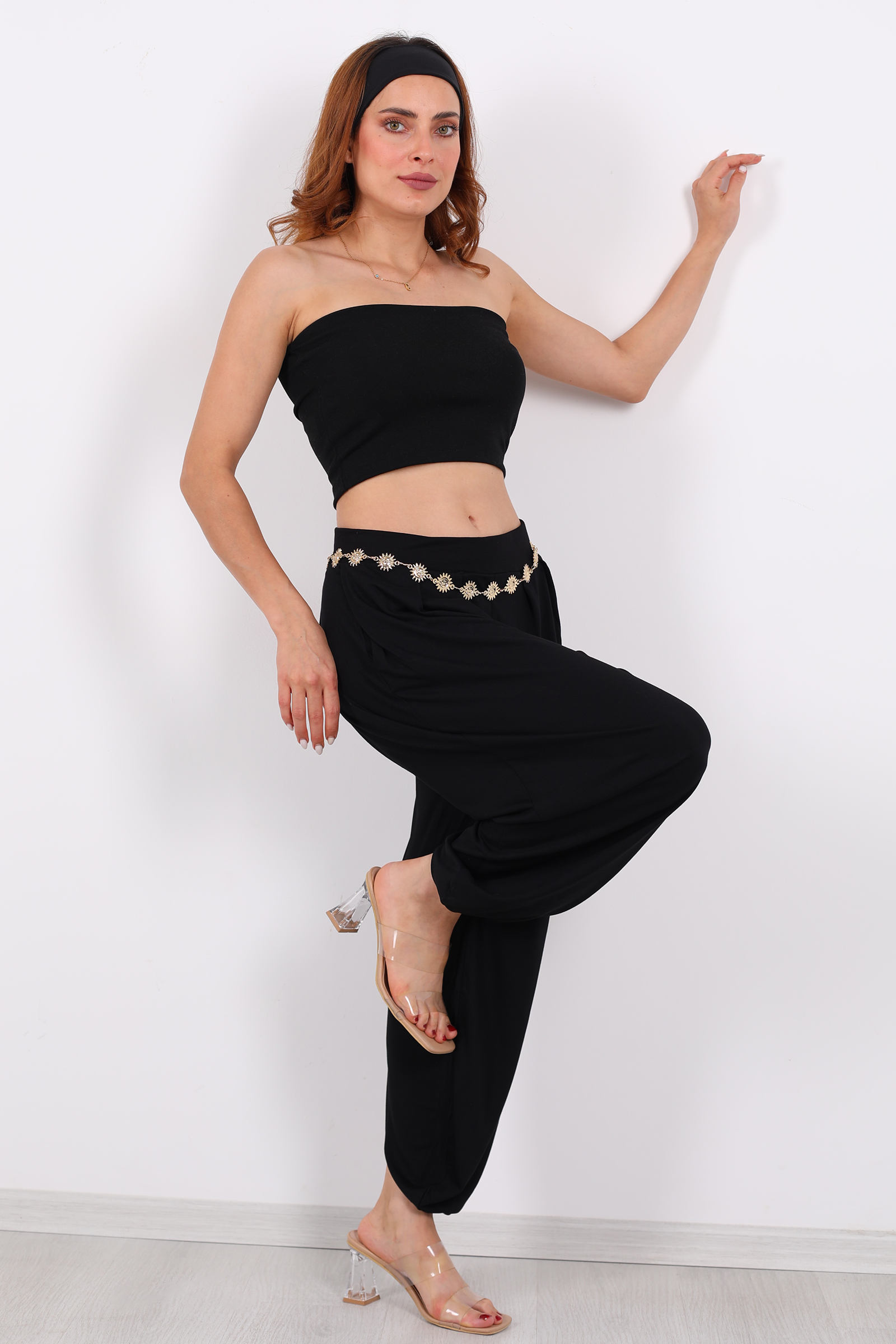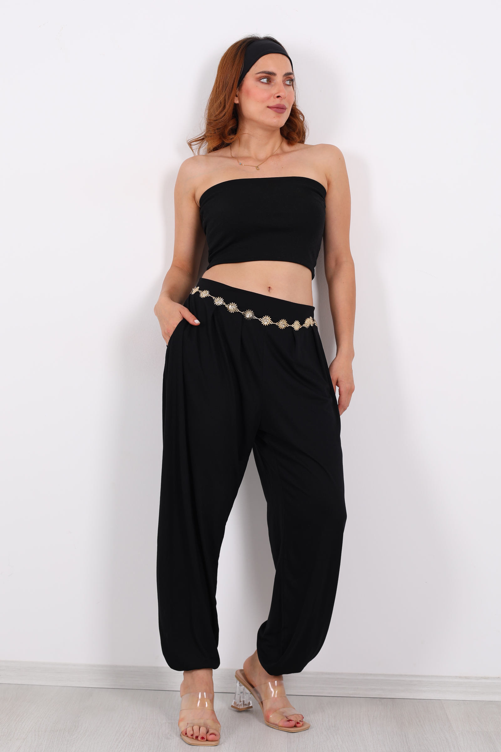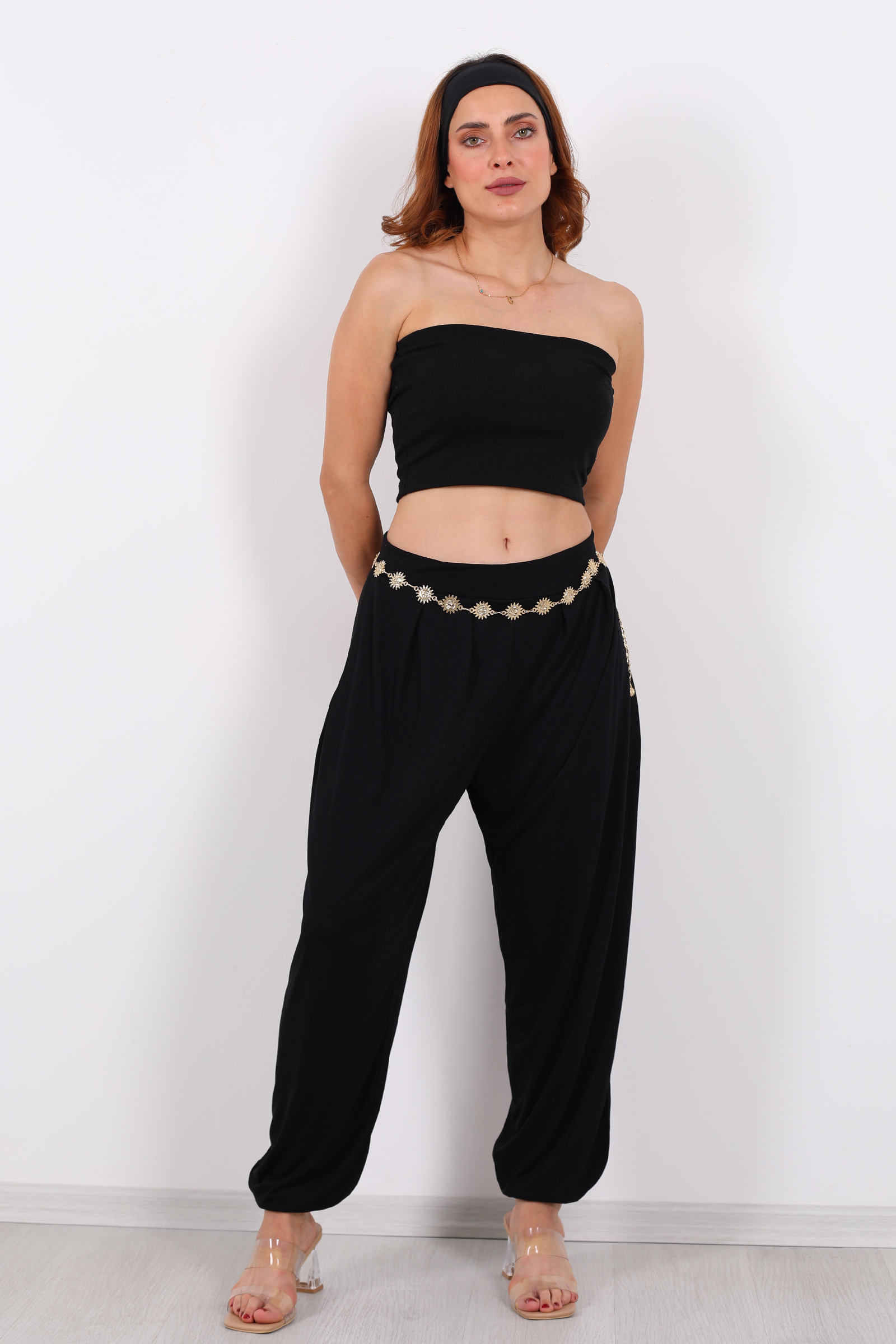 Gardırobumuzun klasikleşmiş parçalarından biri: siyah modal şalvar pantolon. Mükemmel konfor ve zarif sadeliği birleştiren bu model, günlük hareketlerinize ayak uydururken şıklığını da korumak isteyenler için ideal. Siyah rengin asaleti; modal ile birlikte bu pantolonda birleşince, ister evde rahat bir gün geçirin, ister dışarı çıkın her durumda kendinizi hazır hissedeceksiniz.Düşük bel yapısı ve bol paçası sayesinde vücuda baskı yapmaz; modal‑karışımı kumaş hafifçe esnek yapısıyla gün boyu rahatlık sunar.