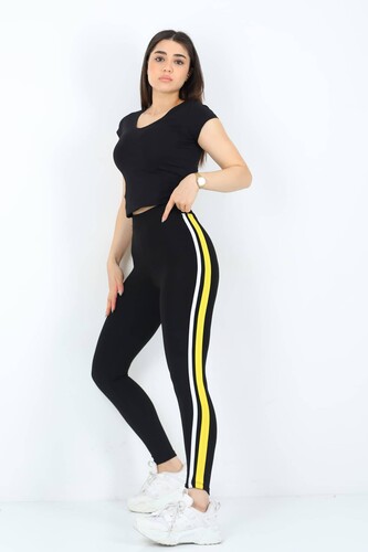 OK Şeritli Siyah Çelik Kadın Tayt, modern tasarımı ve şıklığıyla dolabınızın vazgeçilmezi olmaya aday. %85 pamuk ve %15 likra karışımından üretilen bu tayt, vücudu nazikçe sararak rahat bir kullanım sunar. Özellikle yanlarındaki şerit detayları, sportif bir görünüm kazandırırken, yüksek bel kesimi belinizi zarif bir şekilde vurgular.