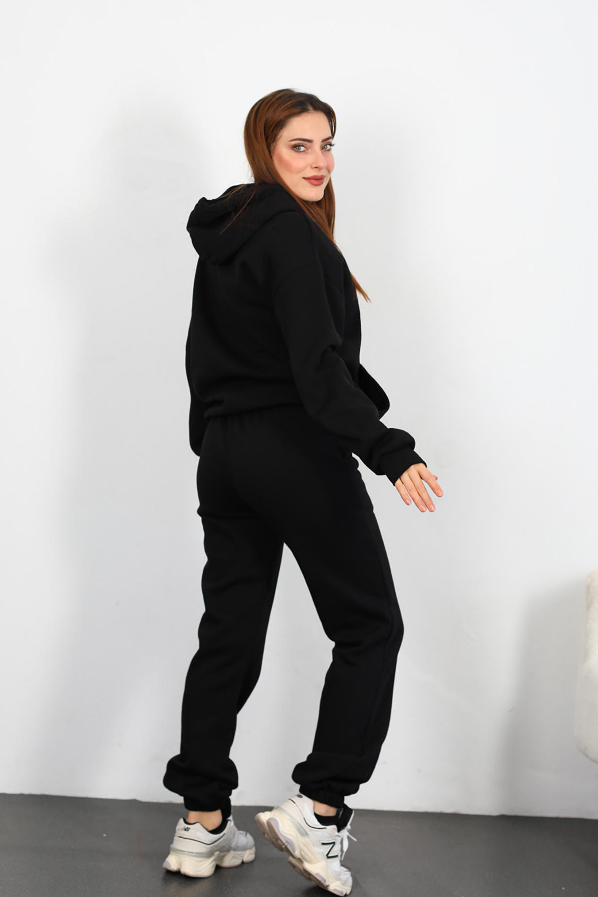 Siyahın zamansız cazibesiyle tasarlanmış bu oversize sweat takım, rahatlığı ve şıklığı bir arada sunuyor. Üç iplik kumaşın yumuşak dokusu ve geniş kesimi, gün boyu konforu garanti ederken, “Olso” nakış detayı takıma sofistike bir hava katıyor. Evden çıkarken ya da dışarıda stilini vurgulamak istediğin her an yanında olacak ideal parça.