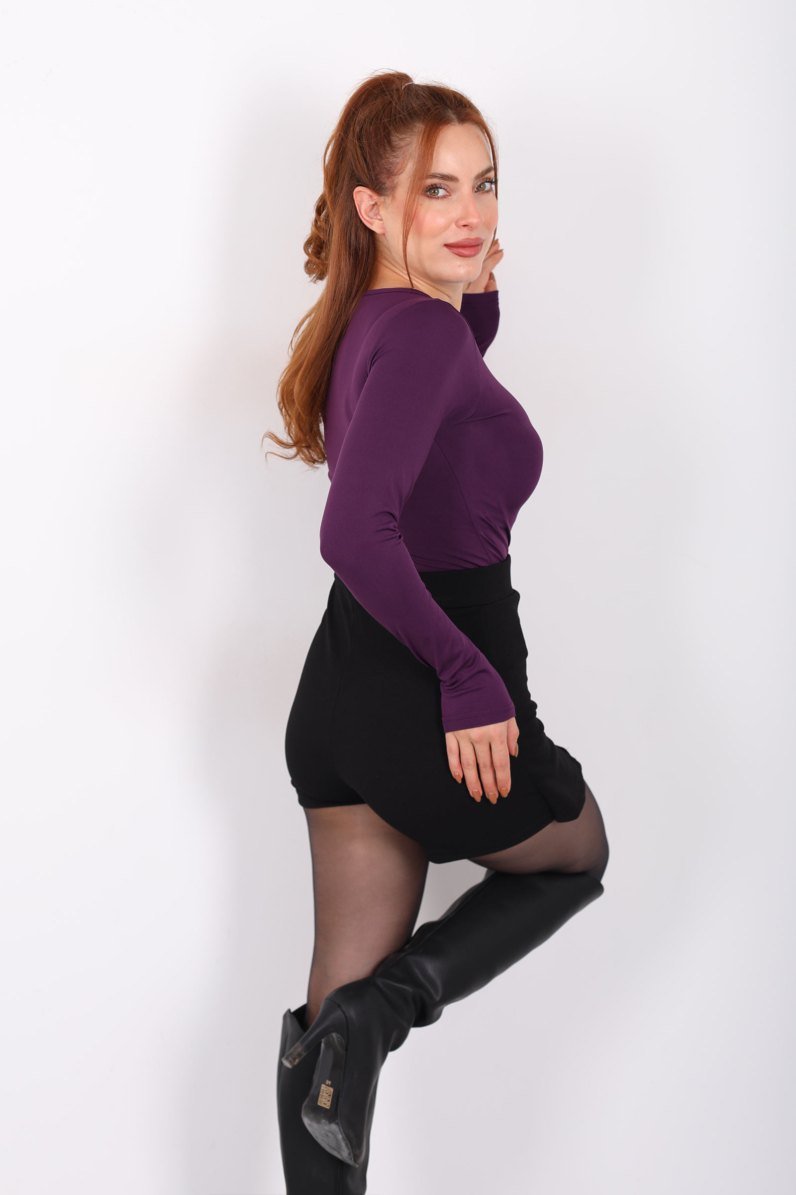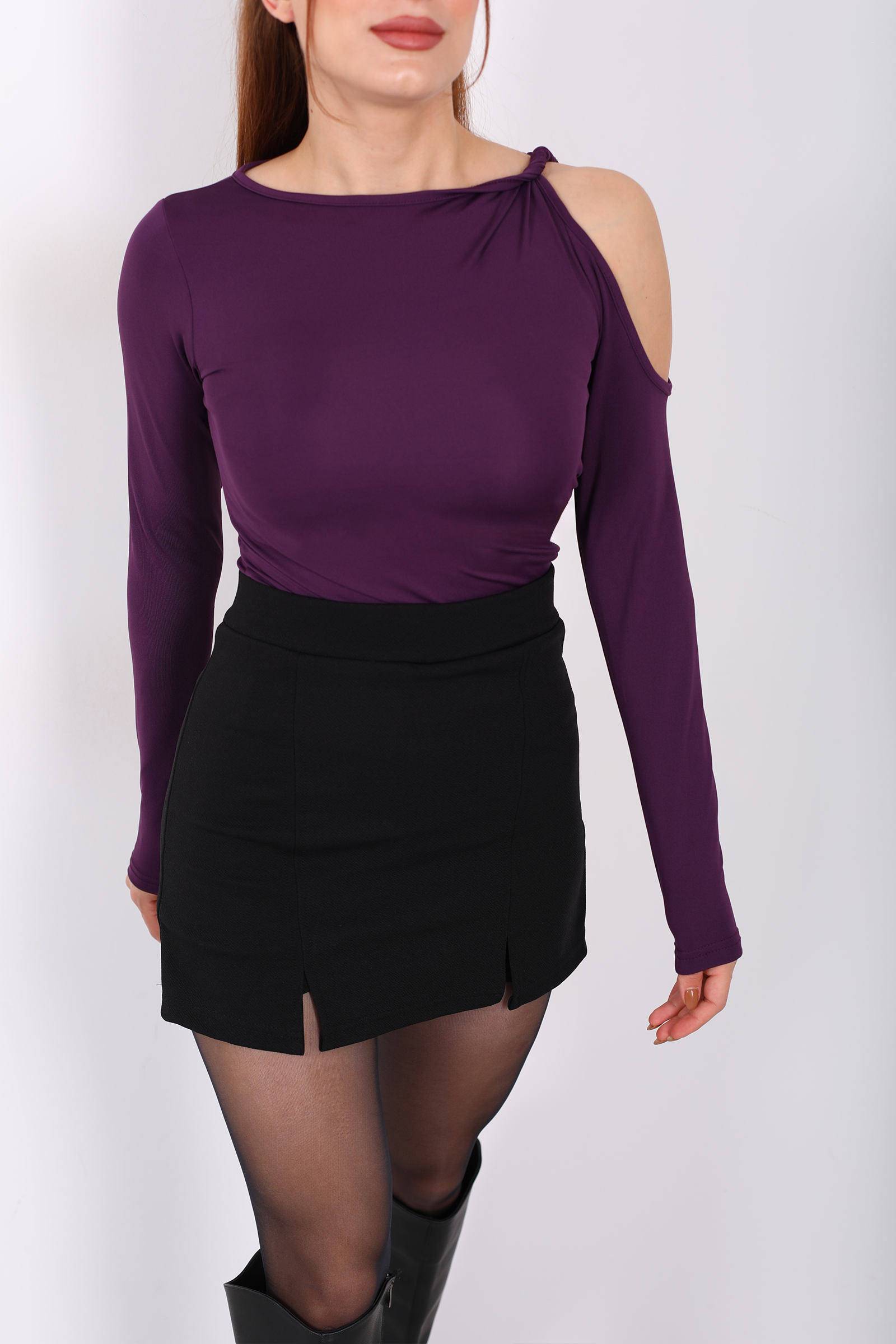 Omuz Burgulu Uzun Kol Mor Kadın Sandy Bluz