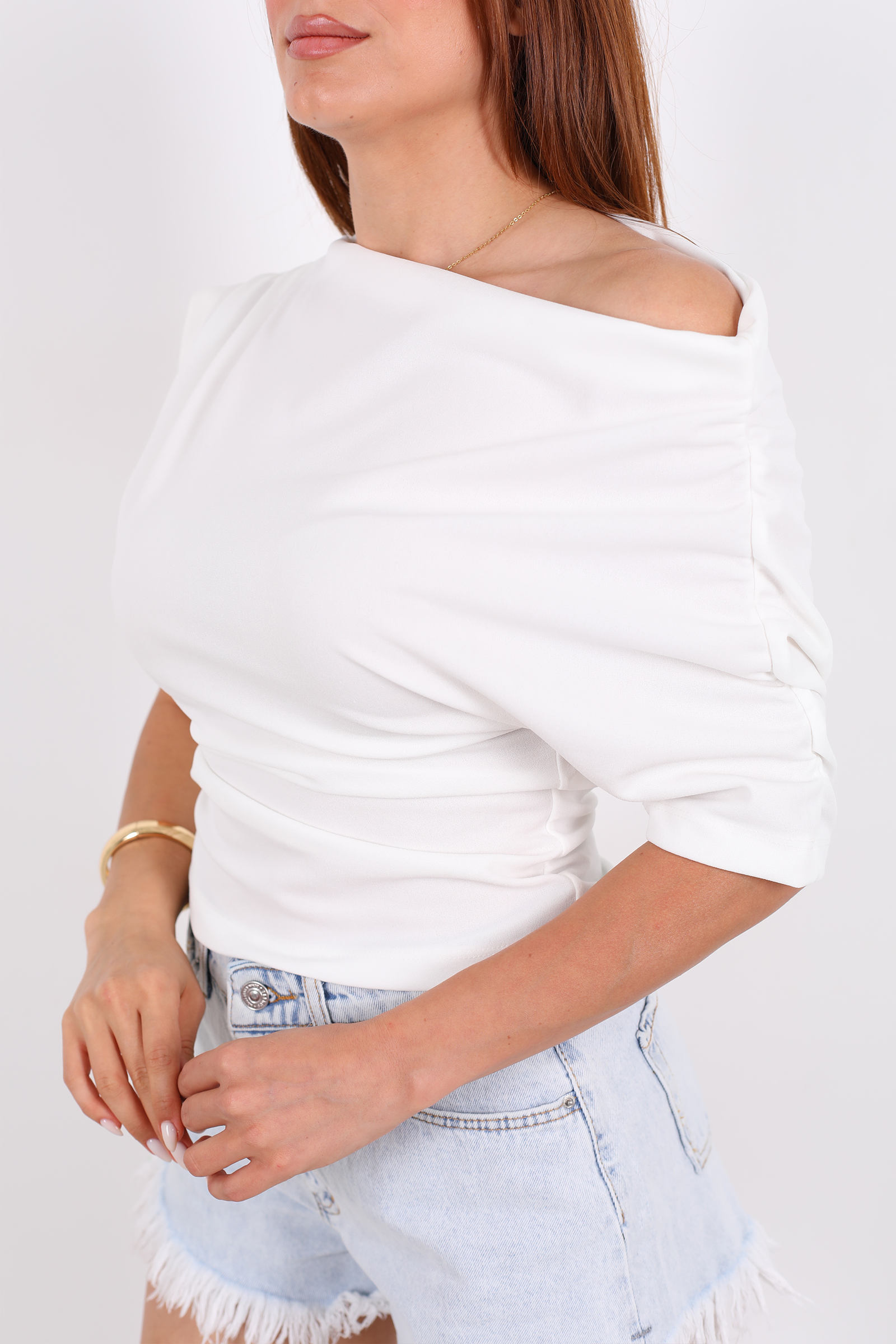 Ekru renginin yumuşak ve zarif tonuyla tasarlanmış bu omuz büzgülü kayık yaka bluz, hem şıklığı hem de rahatlığı bir arada sunuyor. Omuzlardaki ince büzgü detayları, bluzun sade duruşuna hareket katarken, kayık yaka kesimi boyun ve omuz hattınızı zarifçe ön plana çıkarıyor. Hafif ve esnek kumaşı sayesinde gün boyu konforlu kullanım sağlar. Günlük kombinlerinize kolayca uyum sağlayan bu bluz, şıklığından ödün vermeden rahatlığınızı da garanti eder. İster pantolonla ister etekle kombinleyerek stilinize sofistike bir dokunuş katabilirsiniz.