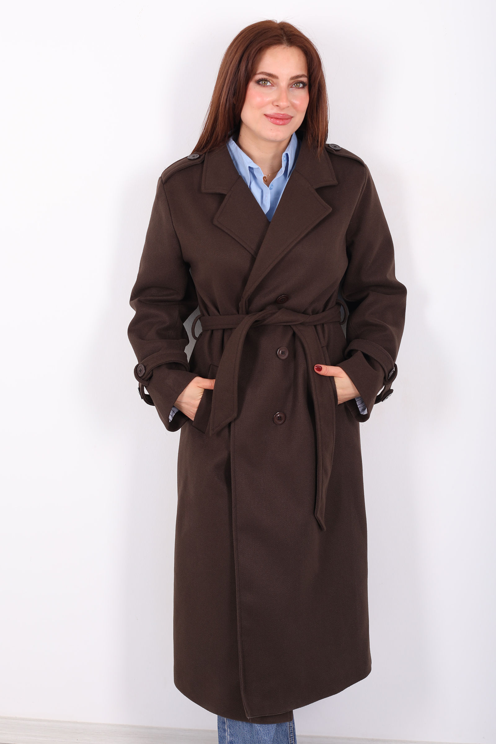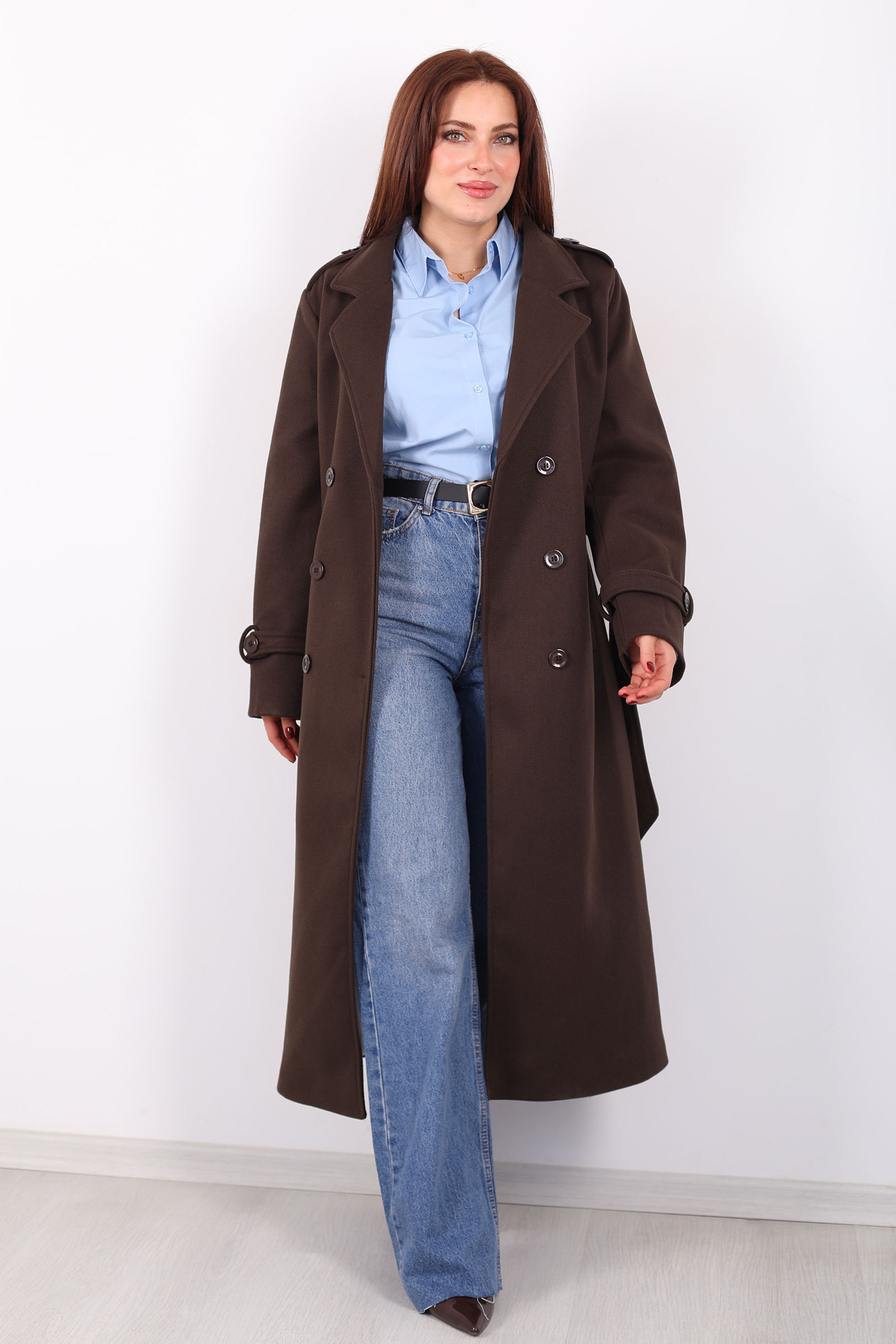 Zarafetin sıcak tonlarla buluştuğu kahverengi çizgili omuz ve kol apoletli kadın kaban, klasik dış giyime modern bir dokunuş katmak isteyenler için tasarlandı. Omuz ve kol bölgesindeki apolet detayları, kabanın siluetine güçlü ve stil sahibi bir karakter kazandırırken, kaliteli astarlı yapısı ile soğuk havalarda ekstra sıcaklık ve konfor sağlar.Kahverenginin doğal uyumu ve çizgi deseni ile gündelik kombinlerden ofis stillerine kadar geniş bir kullanım yelpazesi sunar.