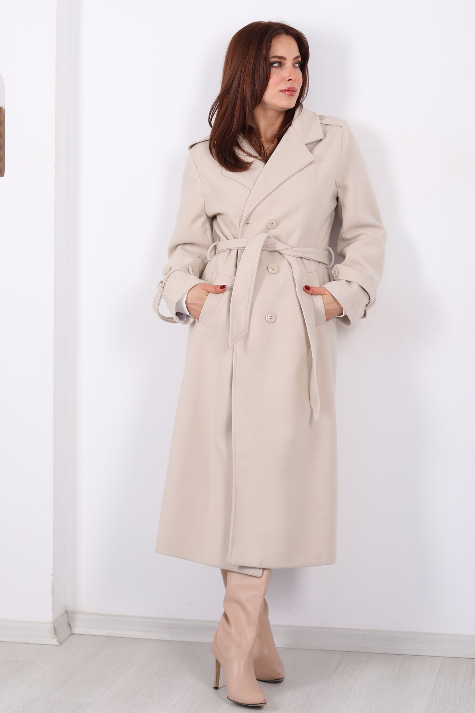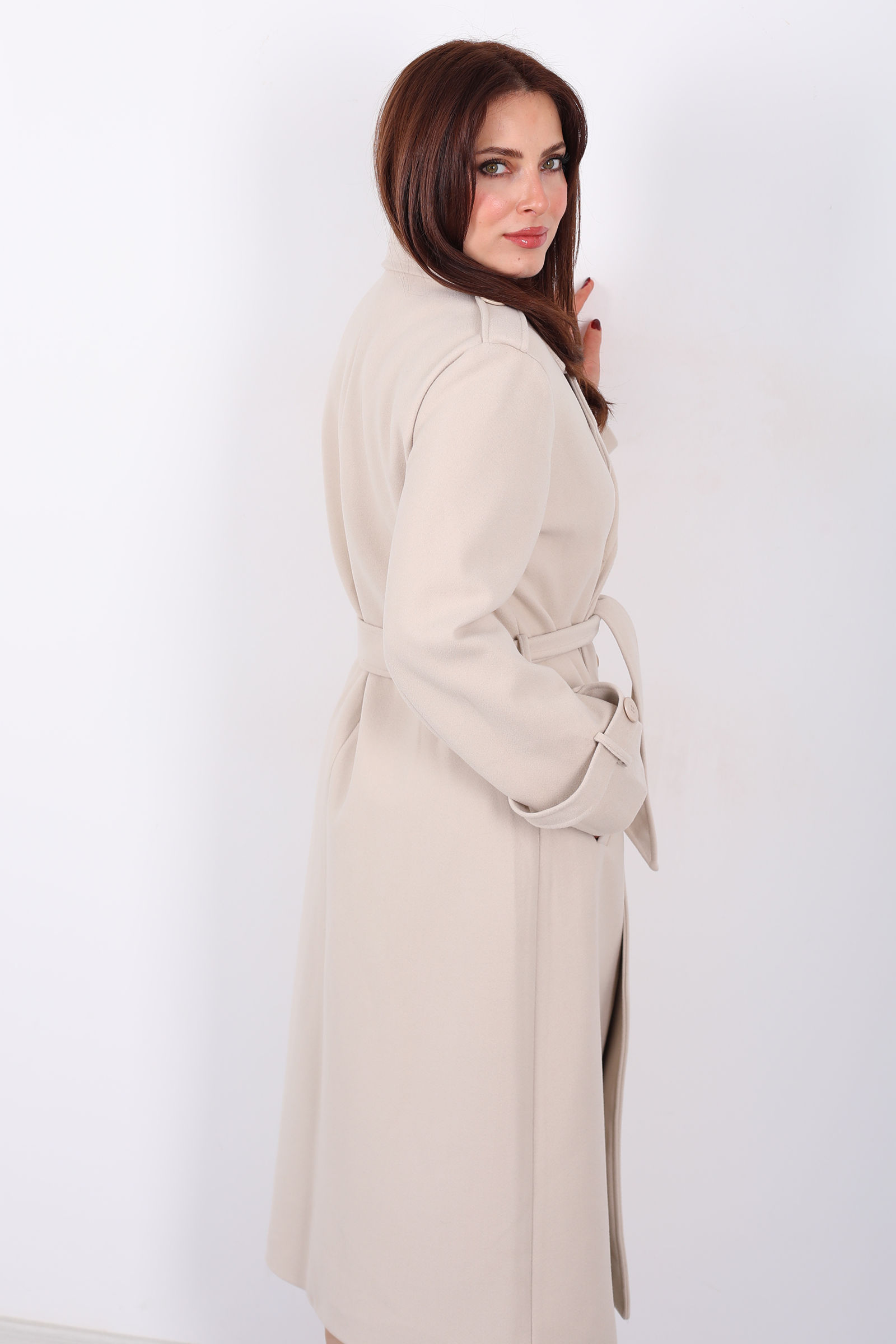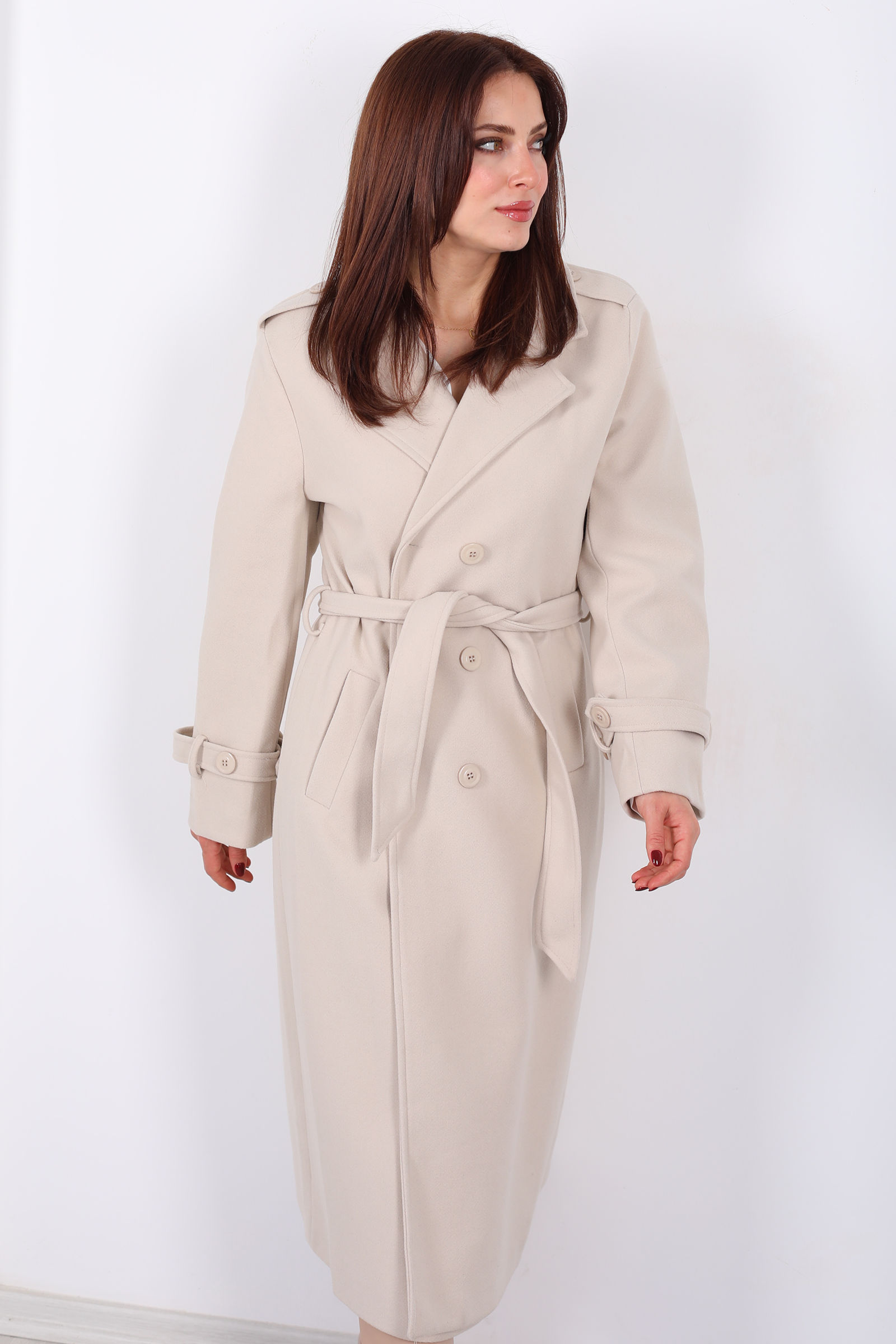 Zarafeti nötr tonlarla buluşturan krem çizgili omuz ve kol apoletli kadın kaban, klasik çizgiyi modern detaylarla harmanlayan şık bir dış giyim parçasıdır. Omuz ve kol apoletleri, güçlü ve yapılandırılmış bir duruş yaratırken astarlı iç yüzeyi soğuk günlerde ekstra konfor sağlar. Krem ve çizgi deseninin uyumu, hem gündelik hem de özel kombinlerde zarif bir hava yaratır.