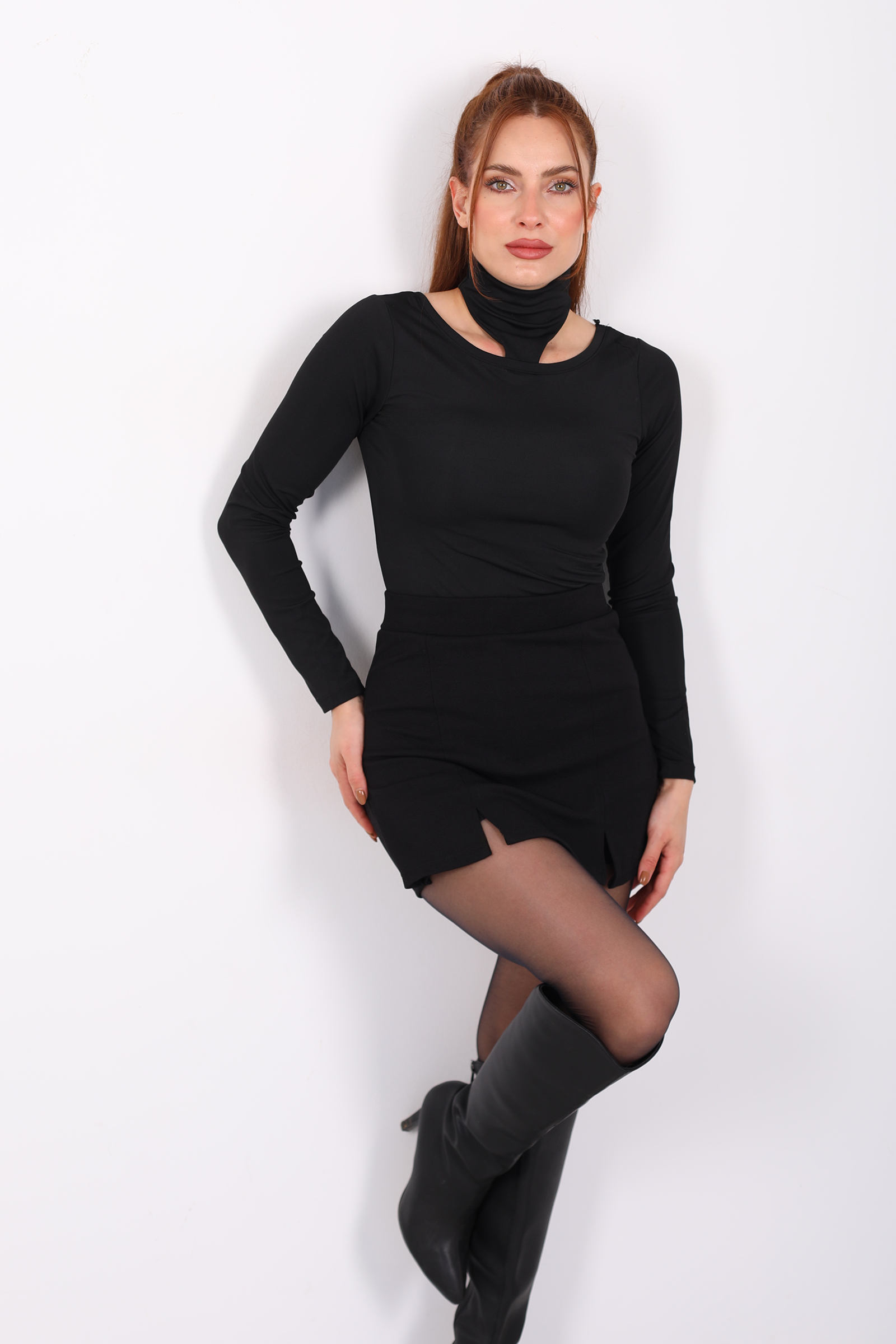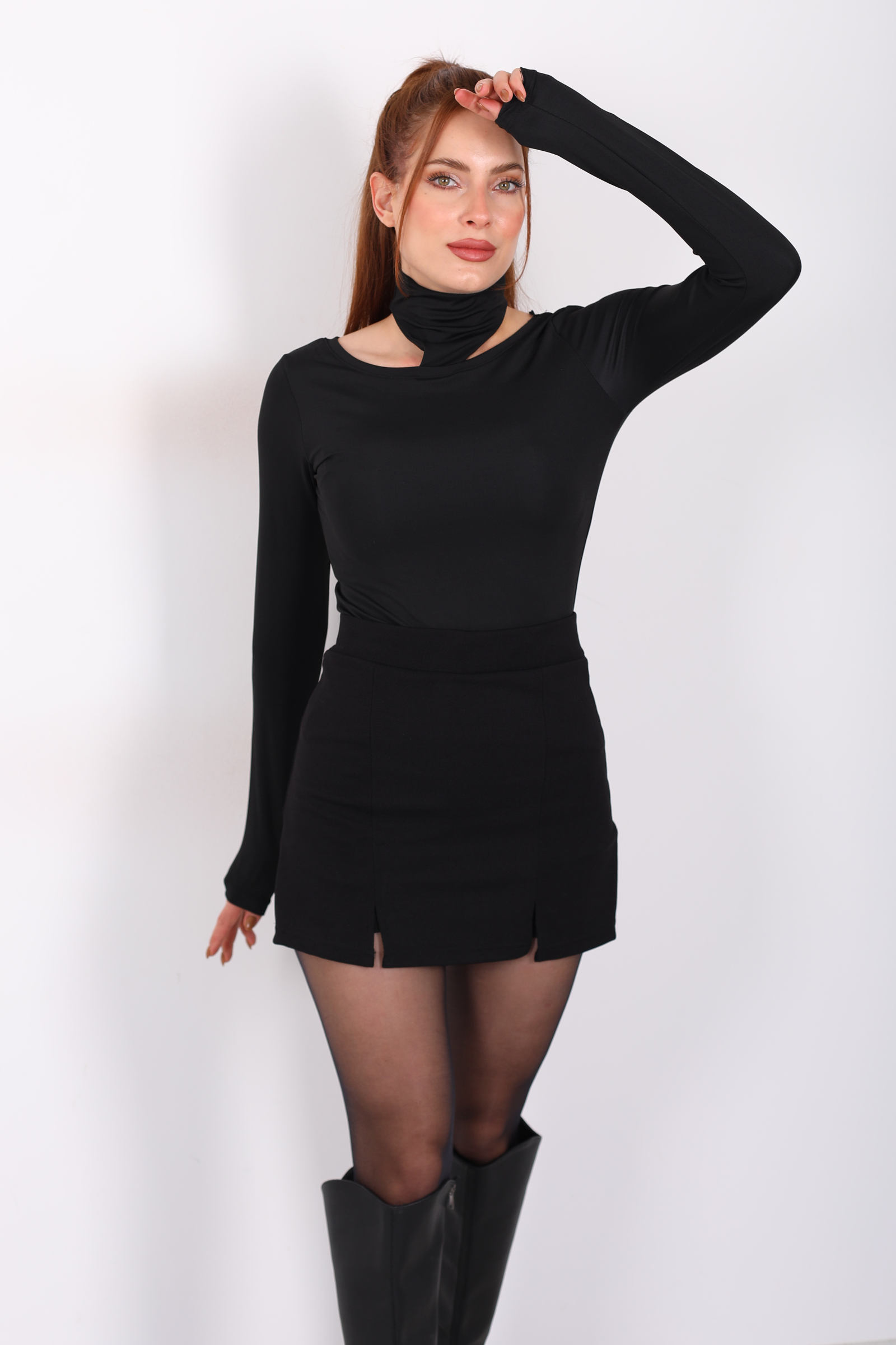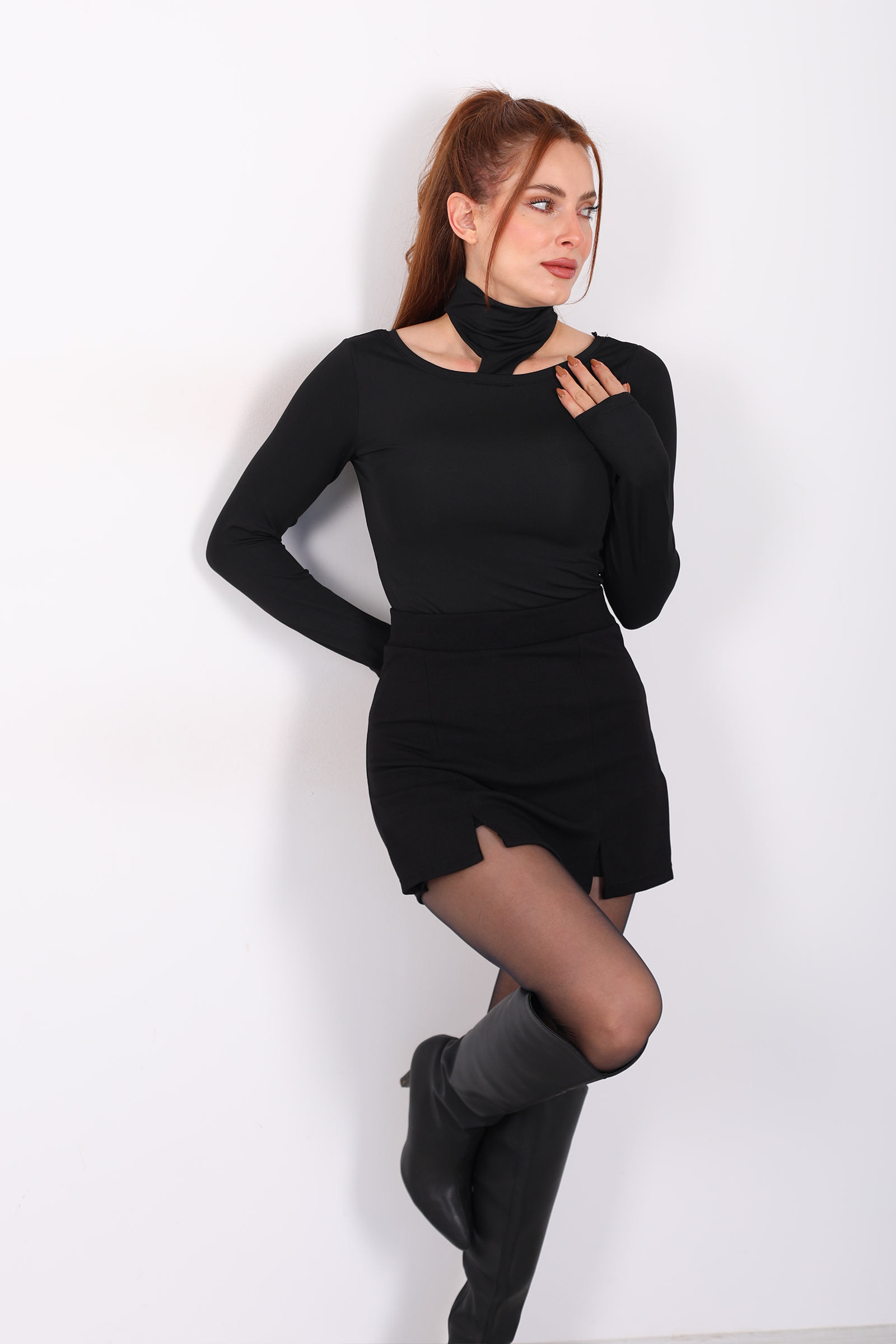 Omuzları Açık Boyundan Geçirmeli Siyah Kadın Bluz