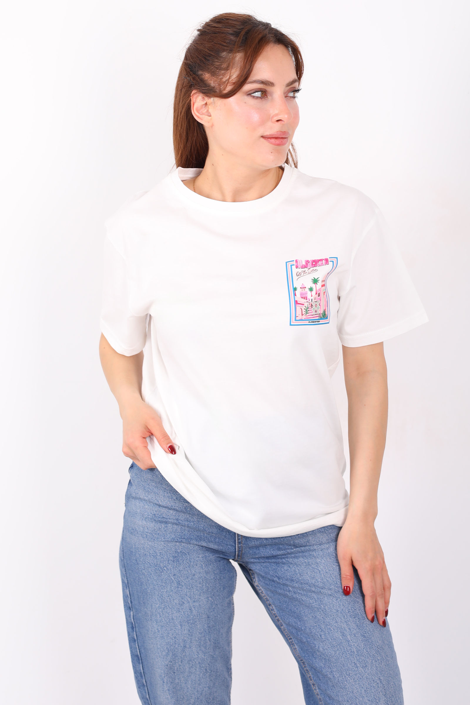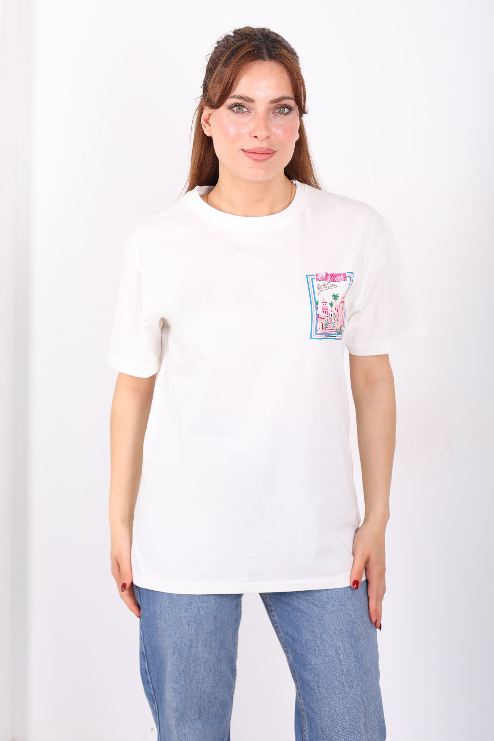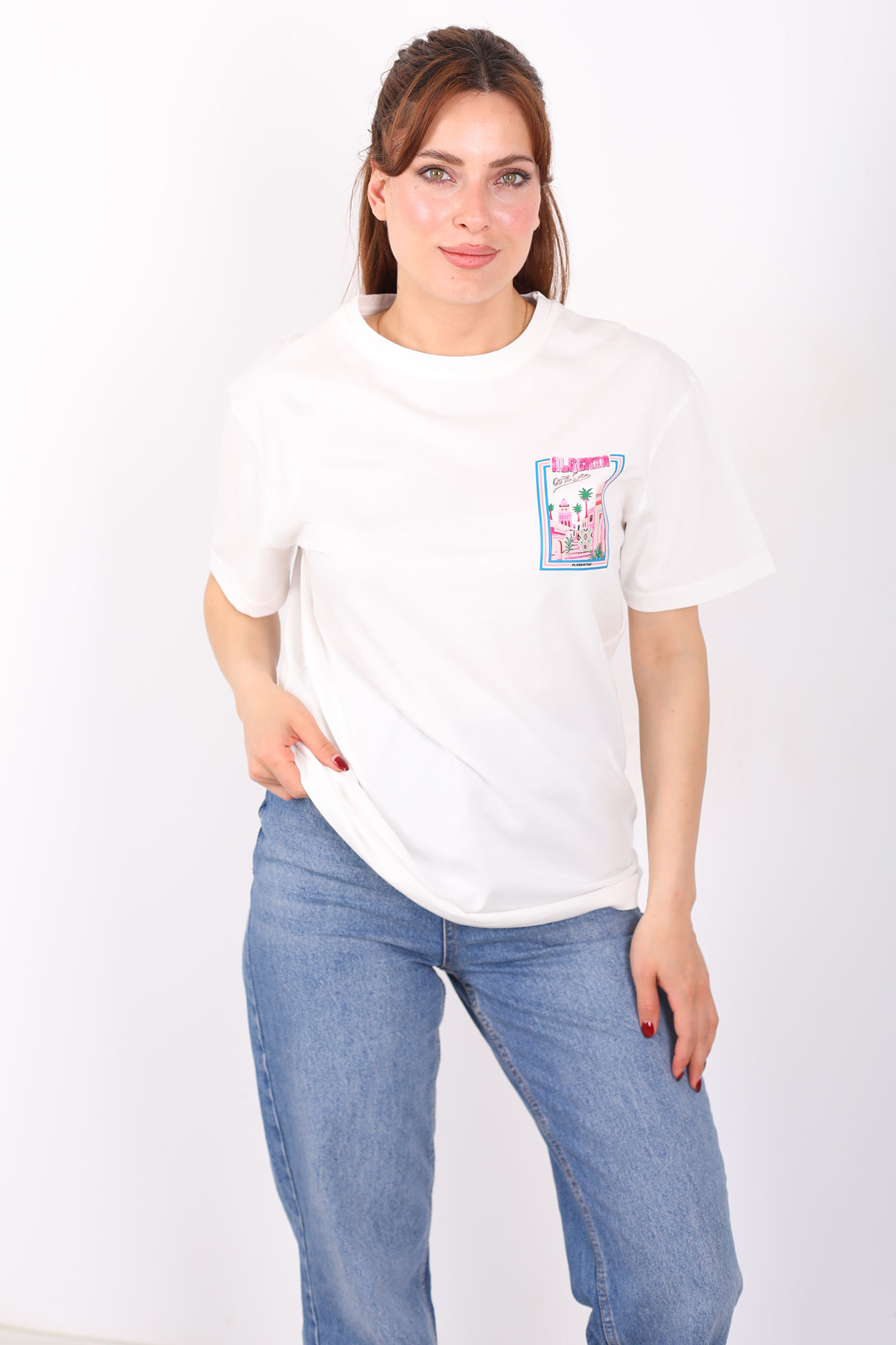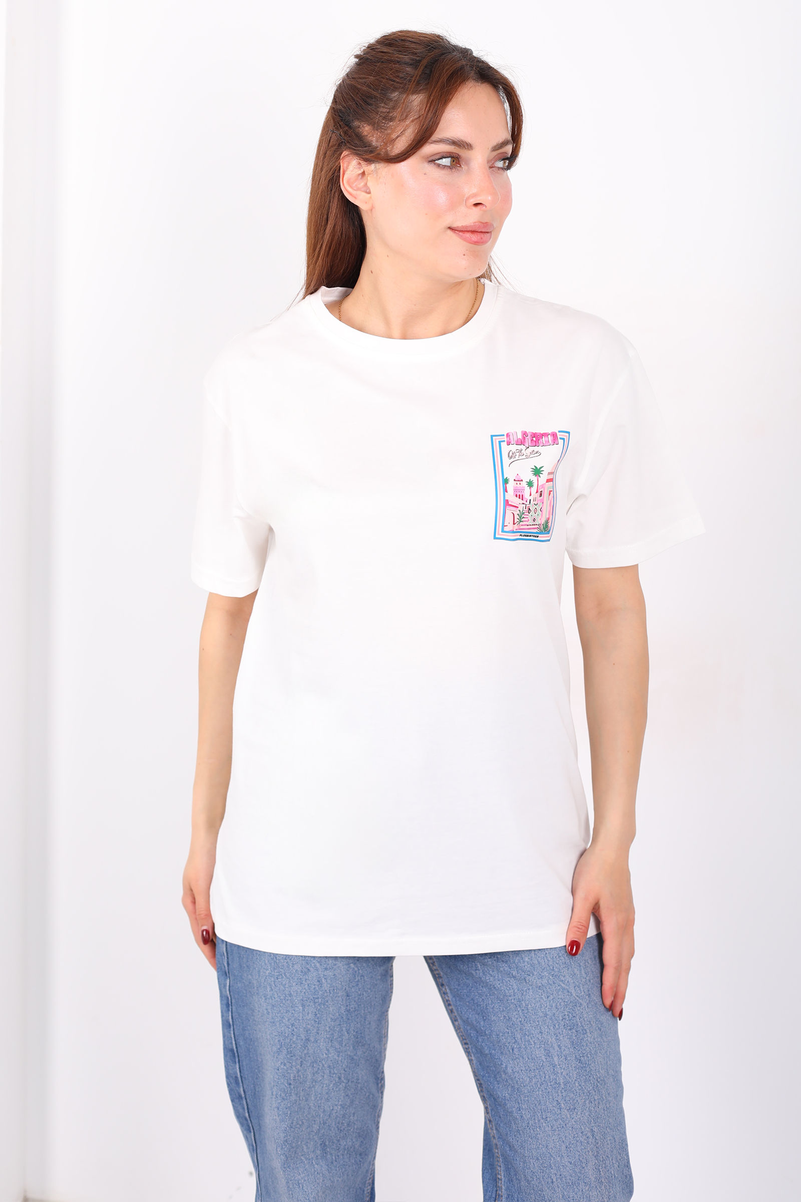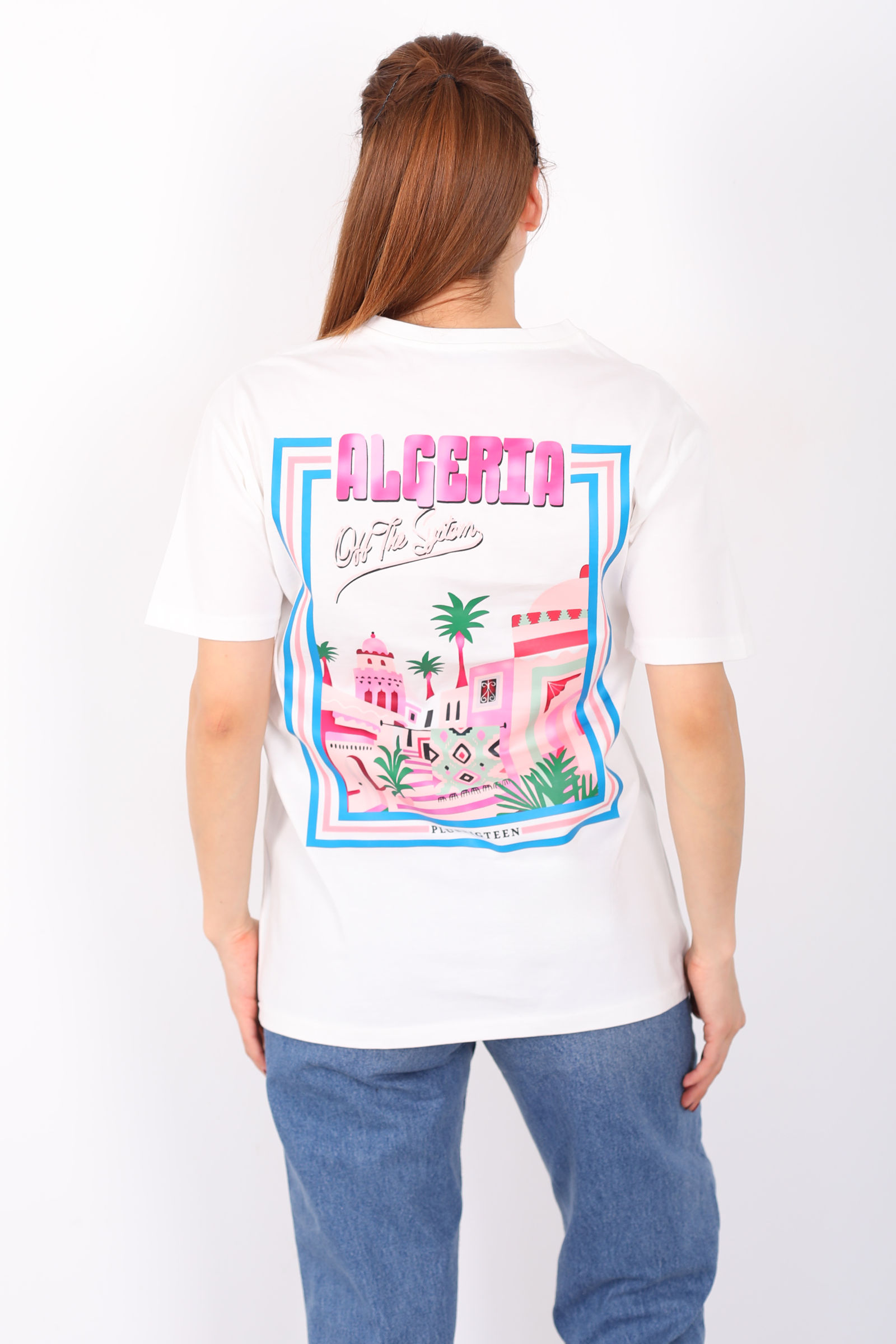 Ön Arka "Algerta" Baskılı Beyaz Kadın Oversize T-Shirt