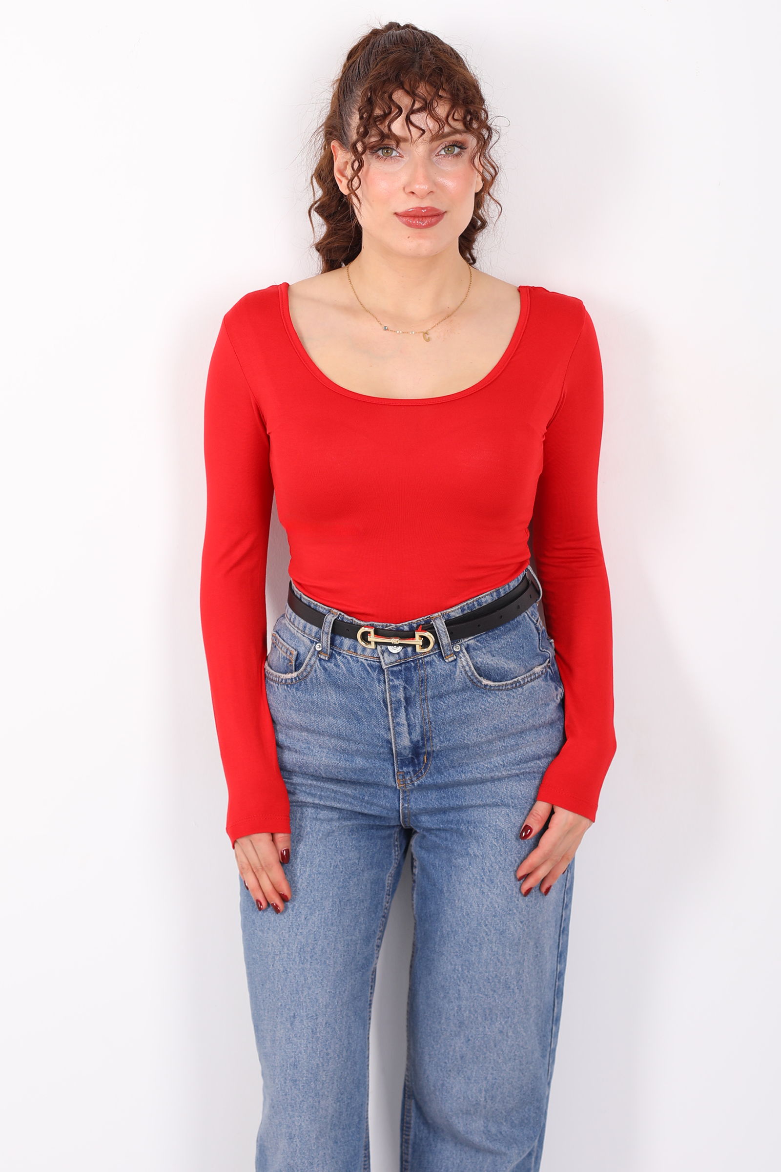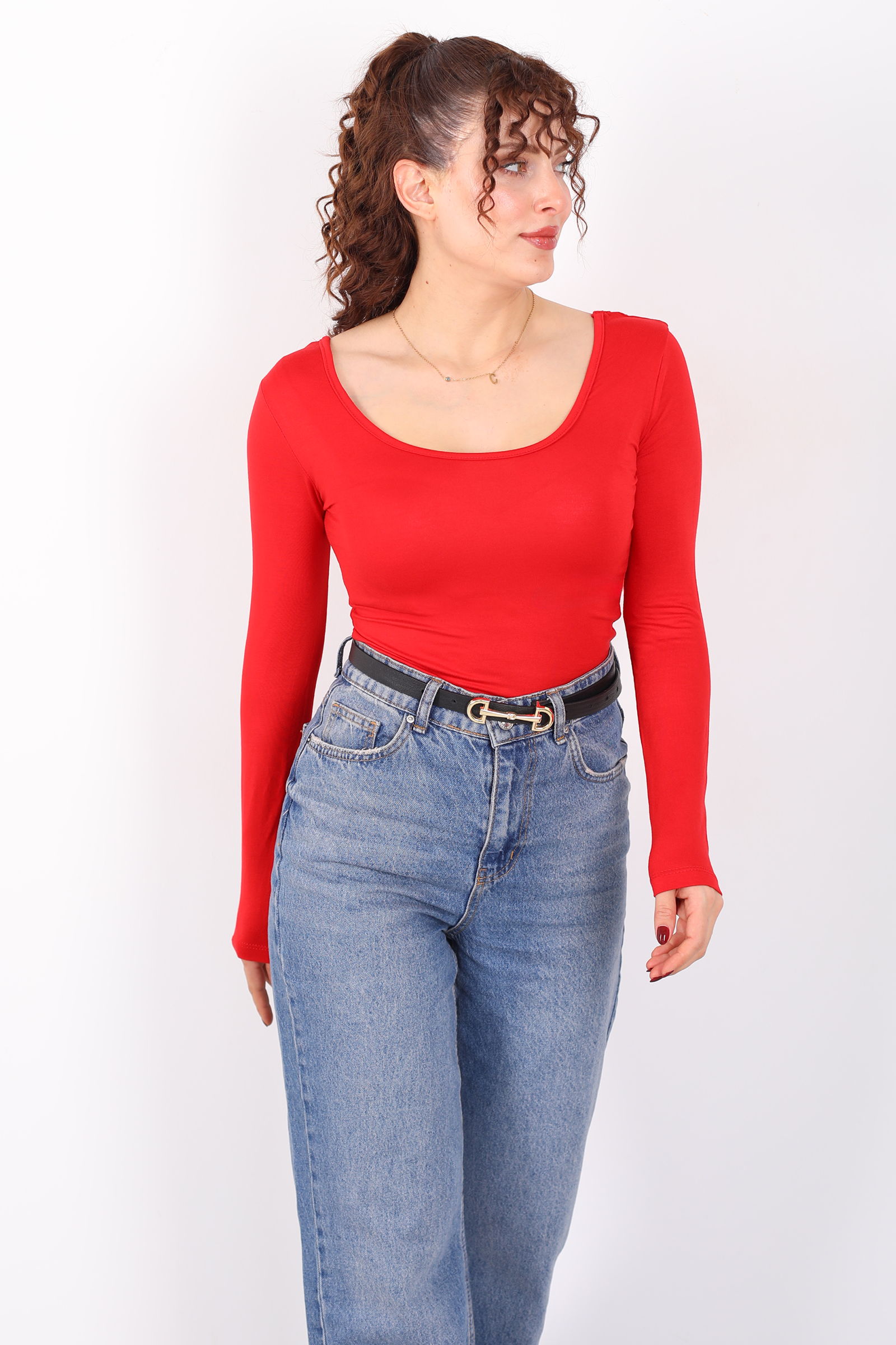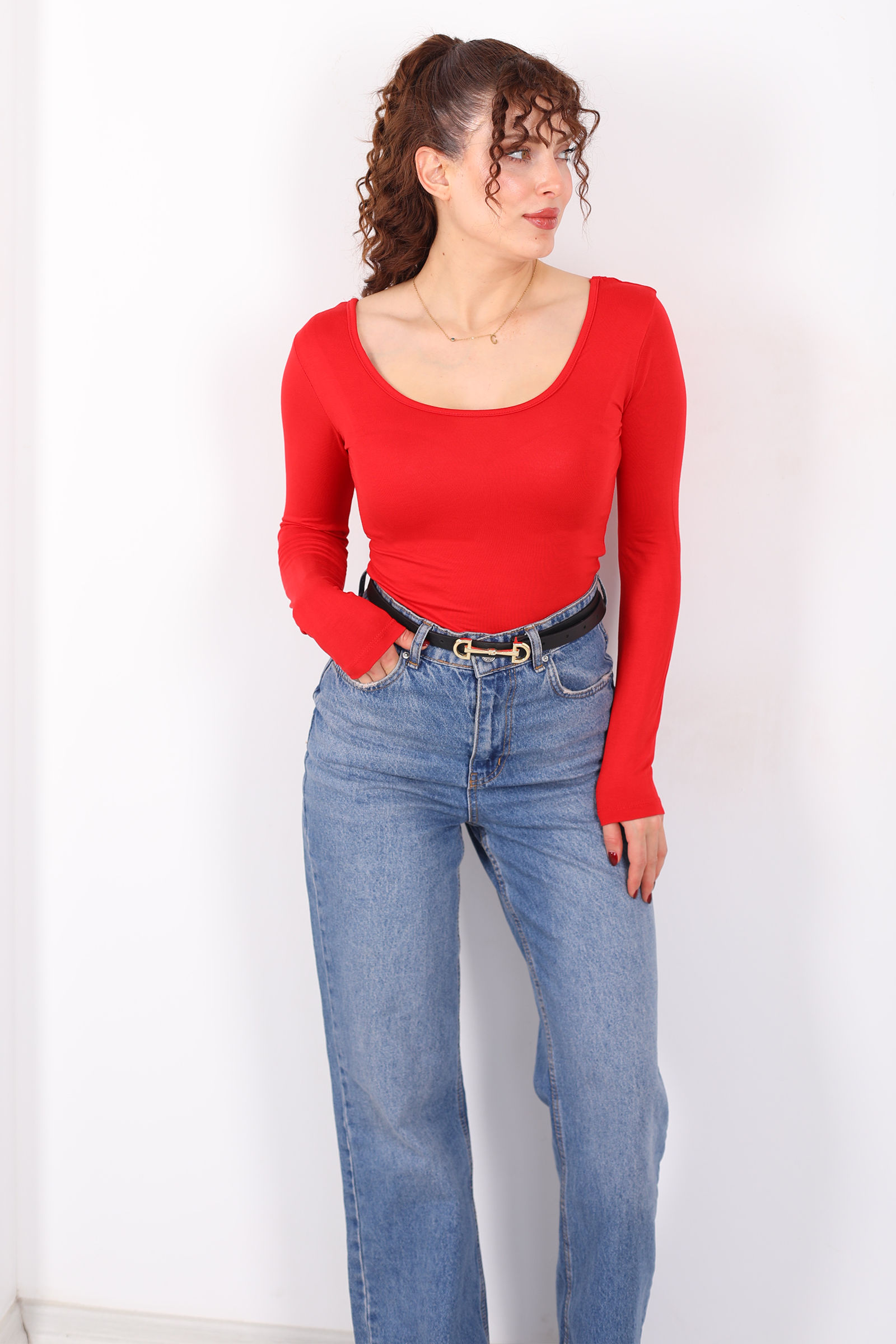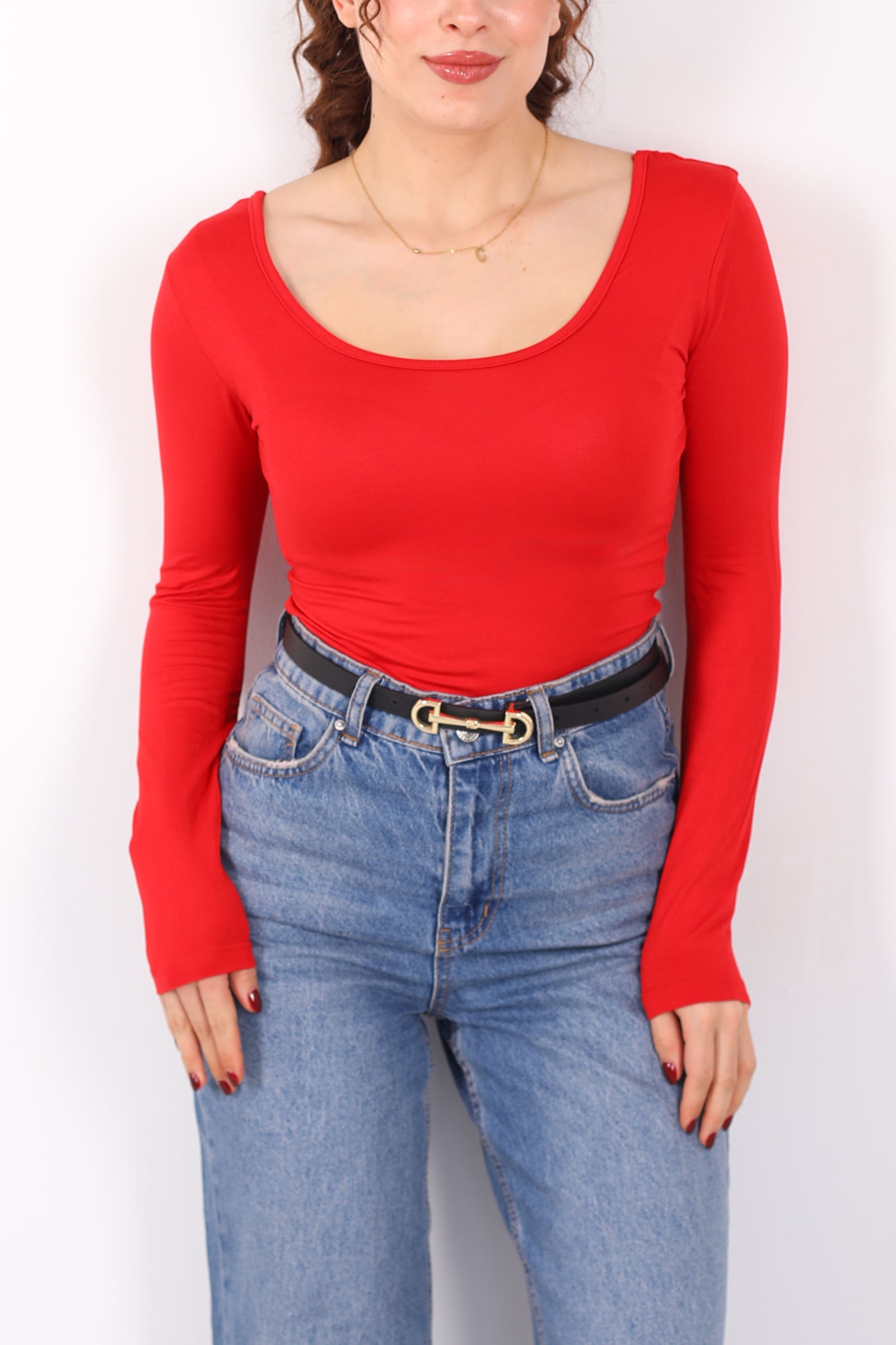 Cesur, canlı ve her kombinle uyum sağlayan bir temel parça arıyorsan, ön-arka U-yaka uzun kollu kırmızı kadın basic bluz tam da ihtiyacın olan stil sakini! Kırmızının enerjisini ve dikkat çekici ifadesini modern U-yaka kesimiyle birleştiren bu basic bluz, minimalist tasarımın güçlü tarafını gösterir. Uzun kollu yapısı sayesinde hem serin mevsimlerde hem de geçiş dönemlerinde rahat kullanım sağlar. Yumuşak dokusu ve yalın çizgisiyle günlük kombinlerine dinamizm katarken, tek başına bile sofistike bir duruş sunar. Jean’den kalem eteğe, sneaker’dan topuka kadar her stilinle uyum sağlayan bu kırmızı bluz ile gardırobuna parlak bir dokunuş ekle!