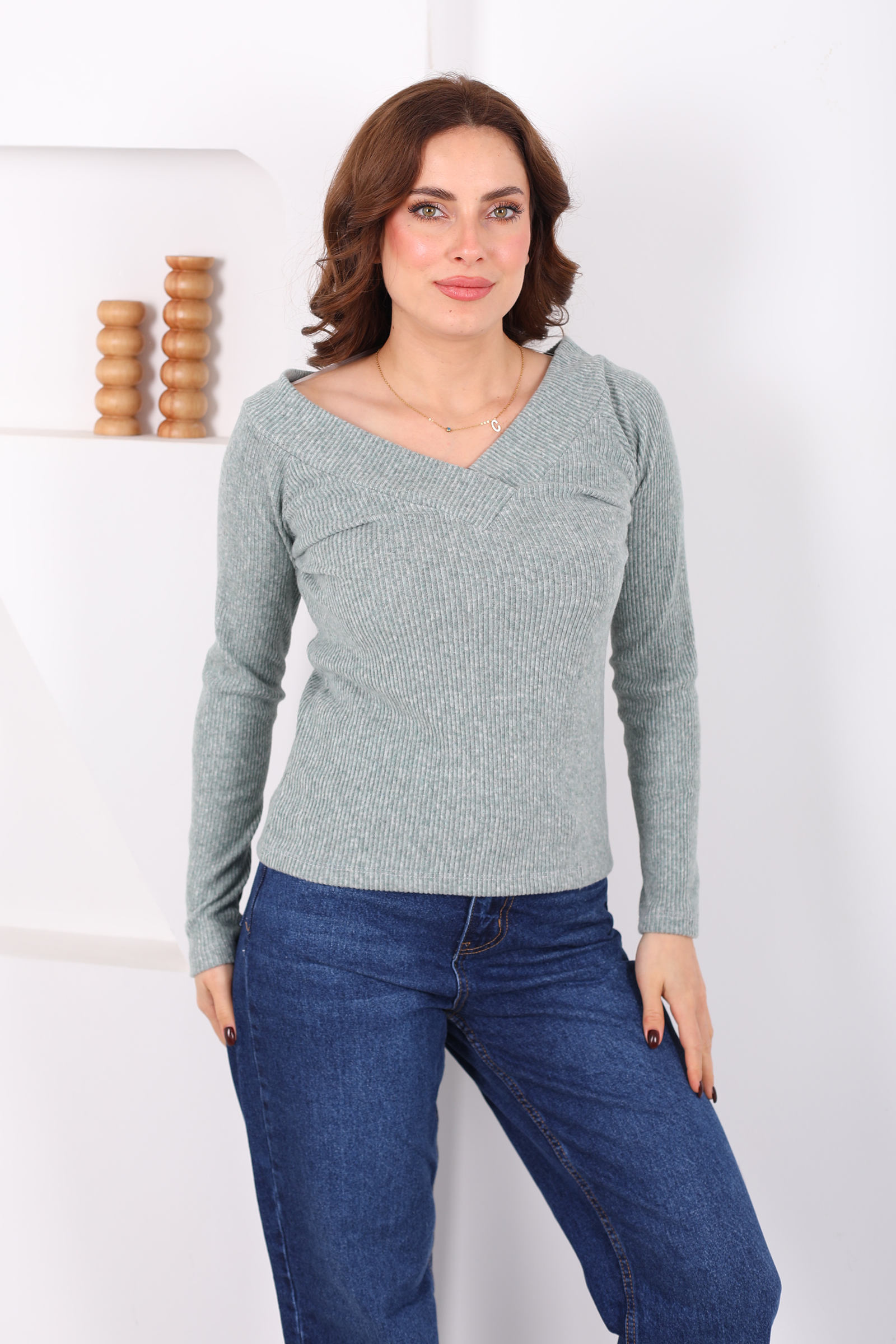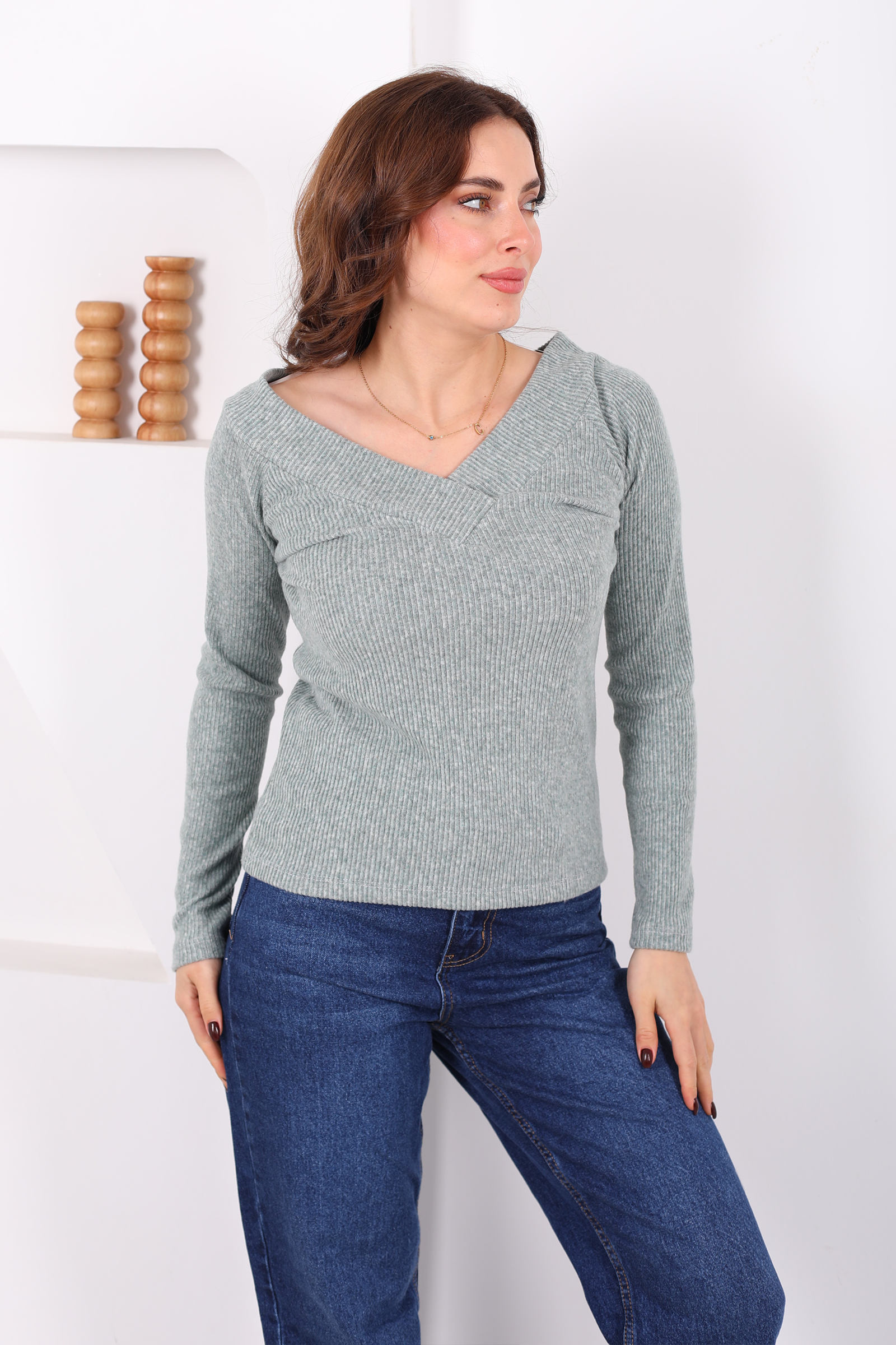 Havuz Yaka Çağla Yeşili Kadın Triko Kazak
