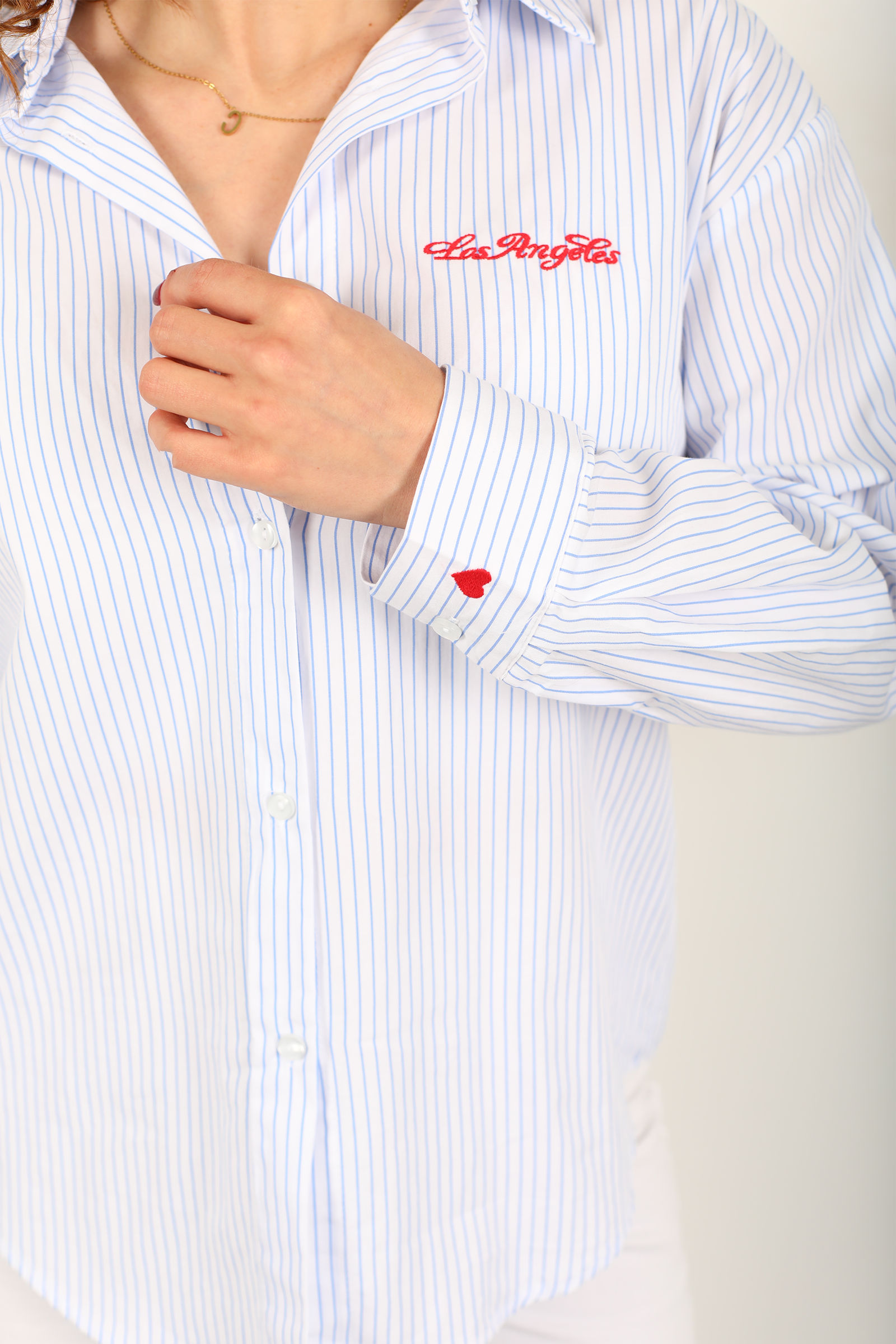 Ön ve Arka Los Angeles Baskılı Kadın Bebe Mavi Çizgili Gömlek