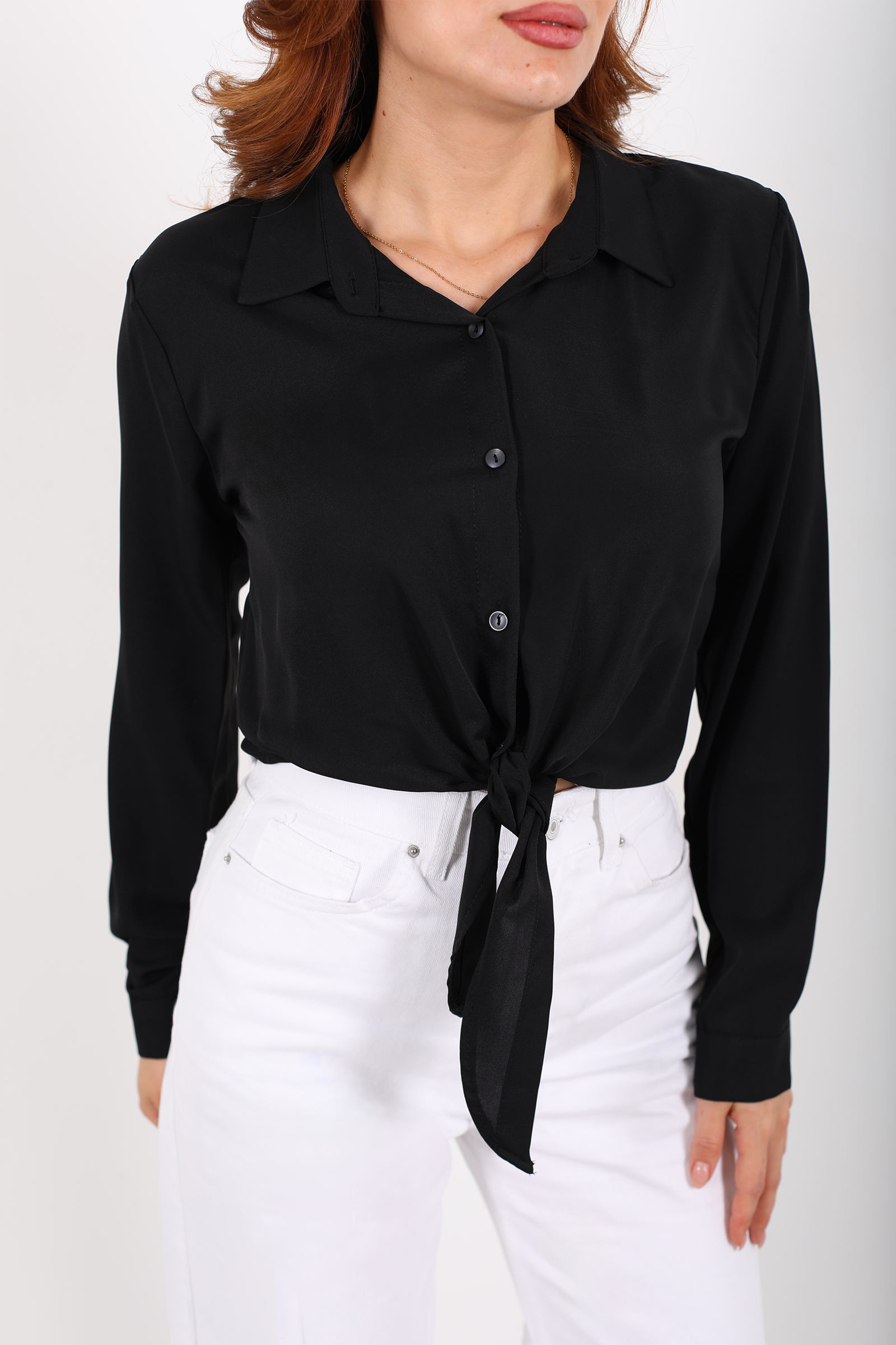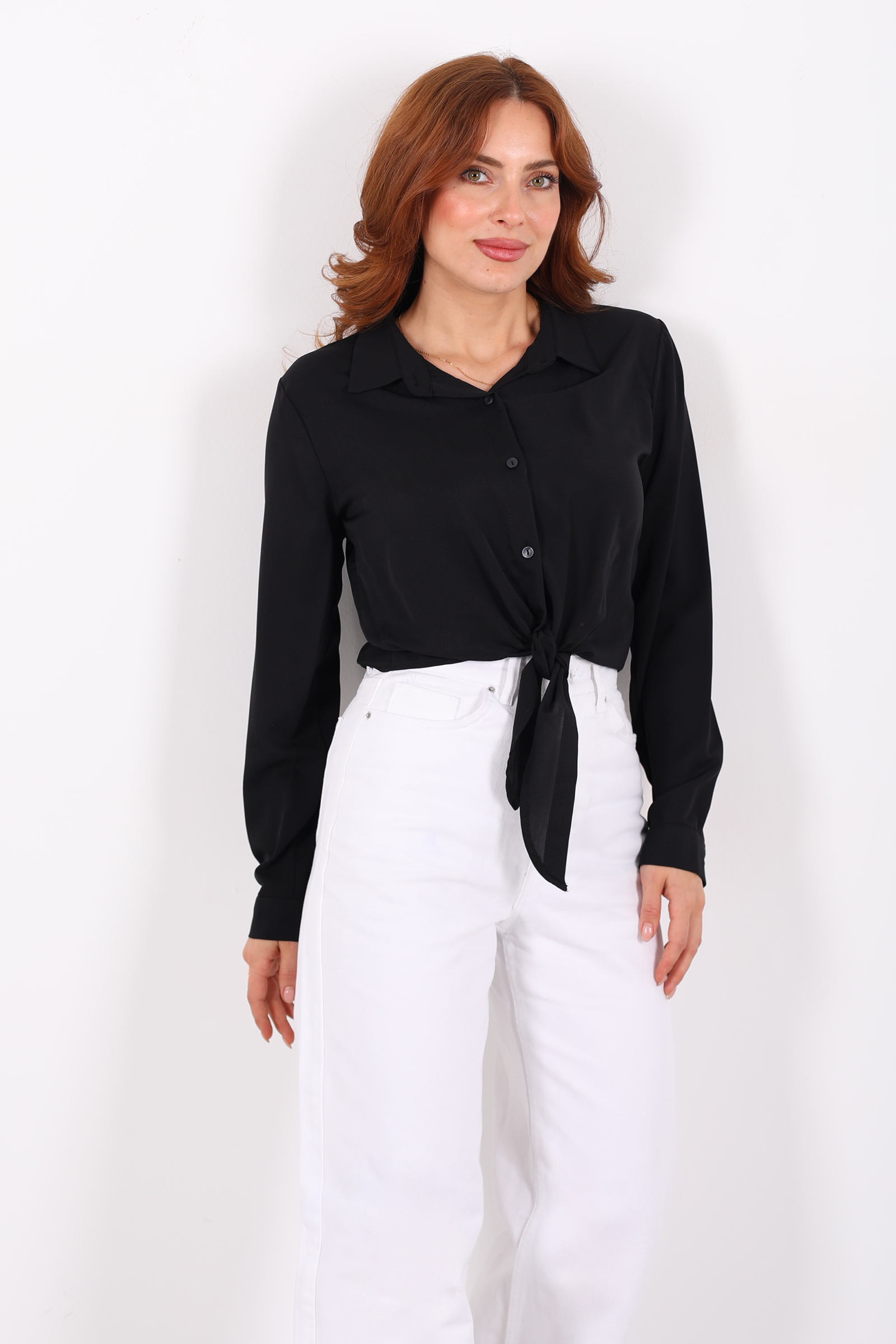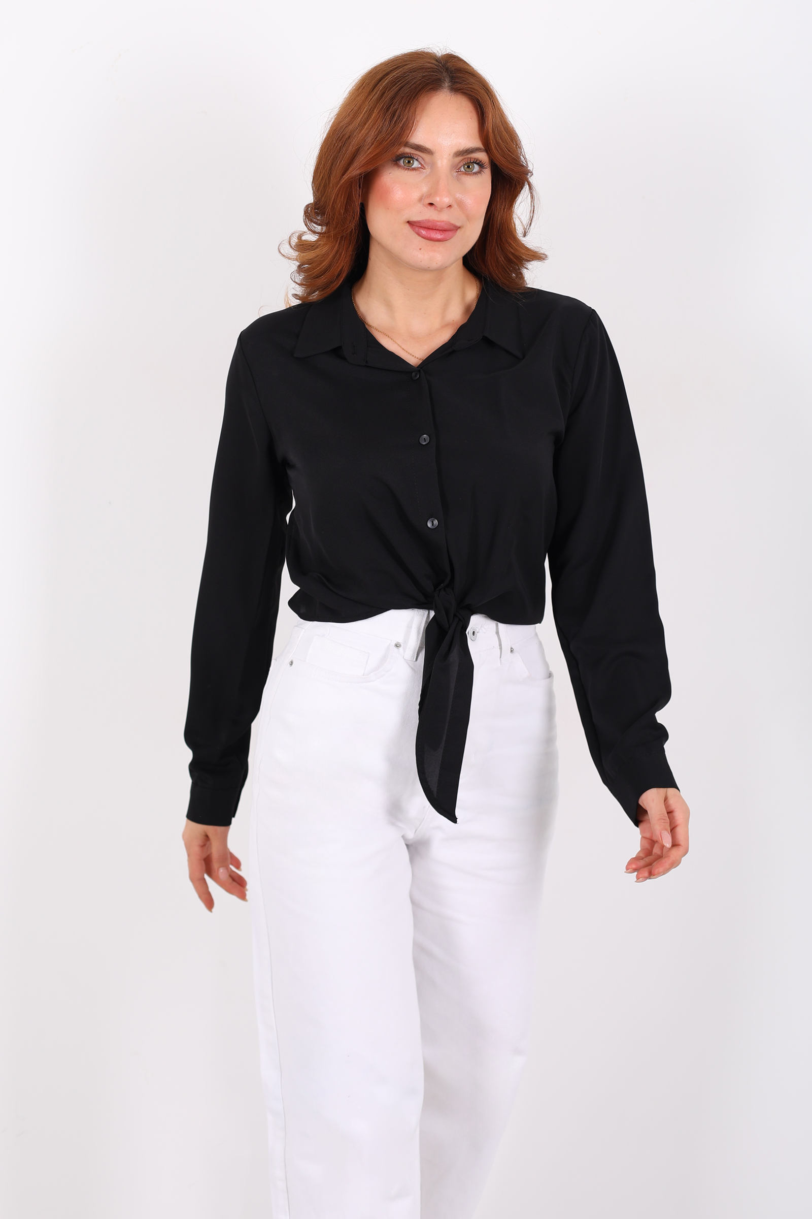 Bu siyah saten gömlek, zarafetin ve feminen yapının modern bir yorumu. Parlak ve akıcı saten dokusu, ışığı nazikçe yansıtırken elinize ipeksi bir his verir. Saten kumaş, uzun “float” iplik yapısı sayesinde parlak bir ön yüzeye ve mat bir arka yüze sahiptir.Gömleğin ön kısmı özenle tasarlanmış; bağlamalı bant detayı tam göğüs hizasında duruşa zarif bir vurgu katıyor. Bu bant, gömleği isteğe bağlı olarak daha dar veya bol bağlamanıza olanak tanır ve farklı vücut tiplerinde bile estetik bir siluet oluşturur. Düğmeler ise hem işlevsel hem dekoratif bir rol oynar.
