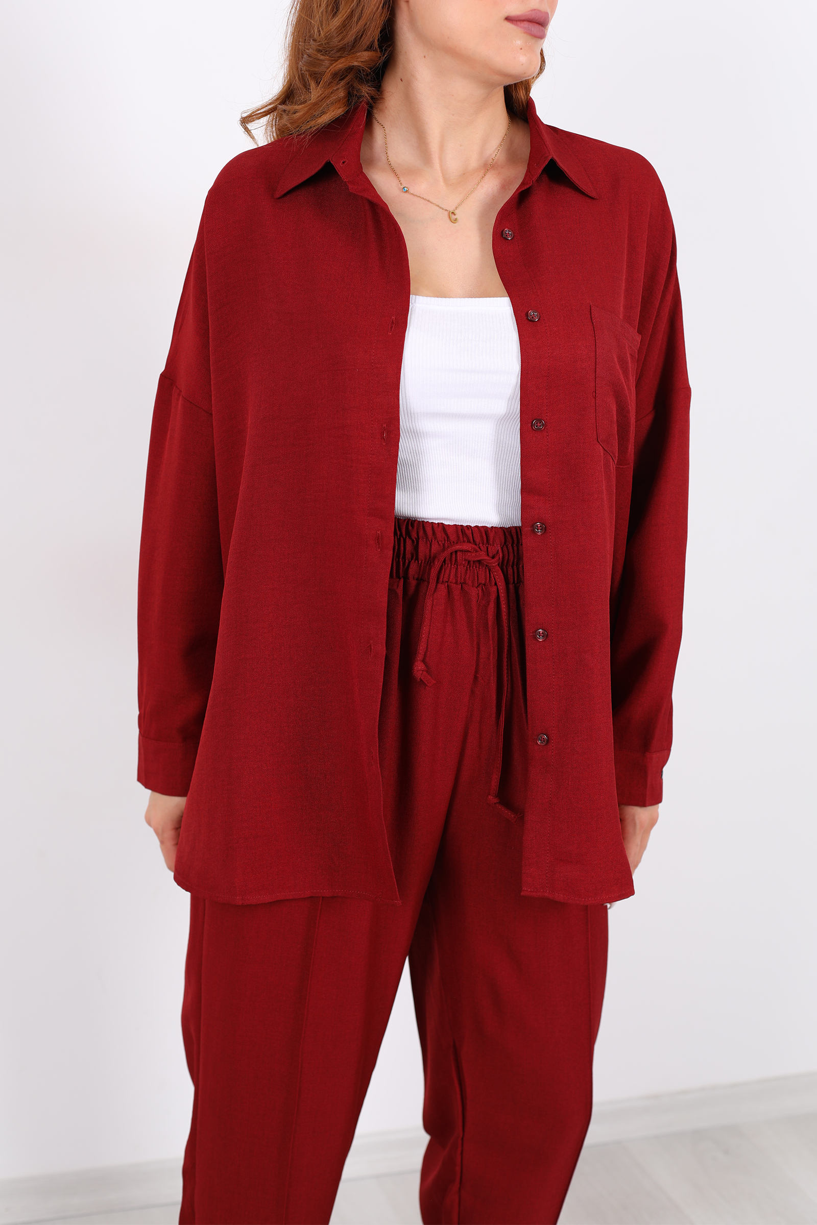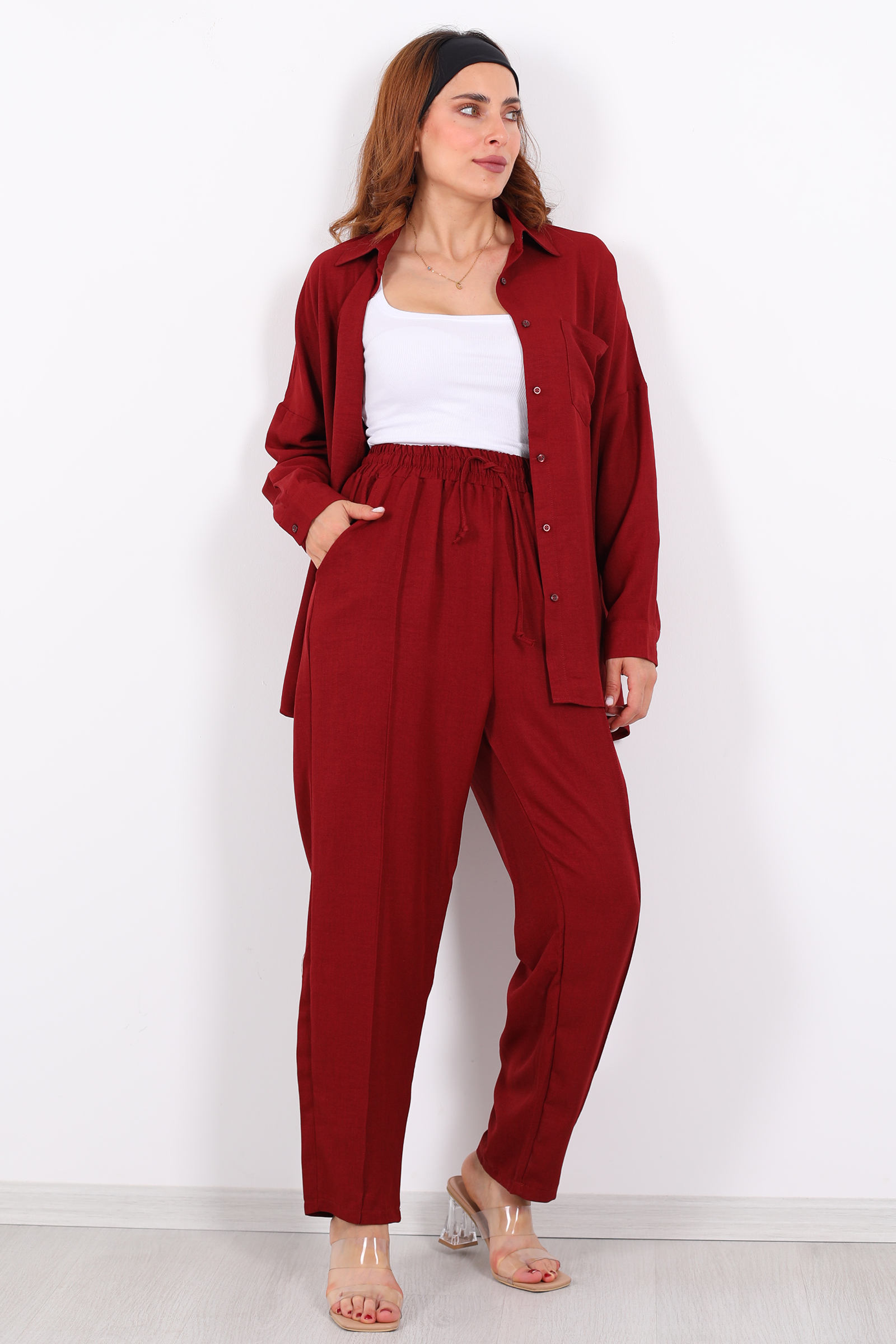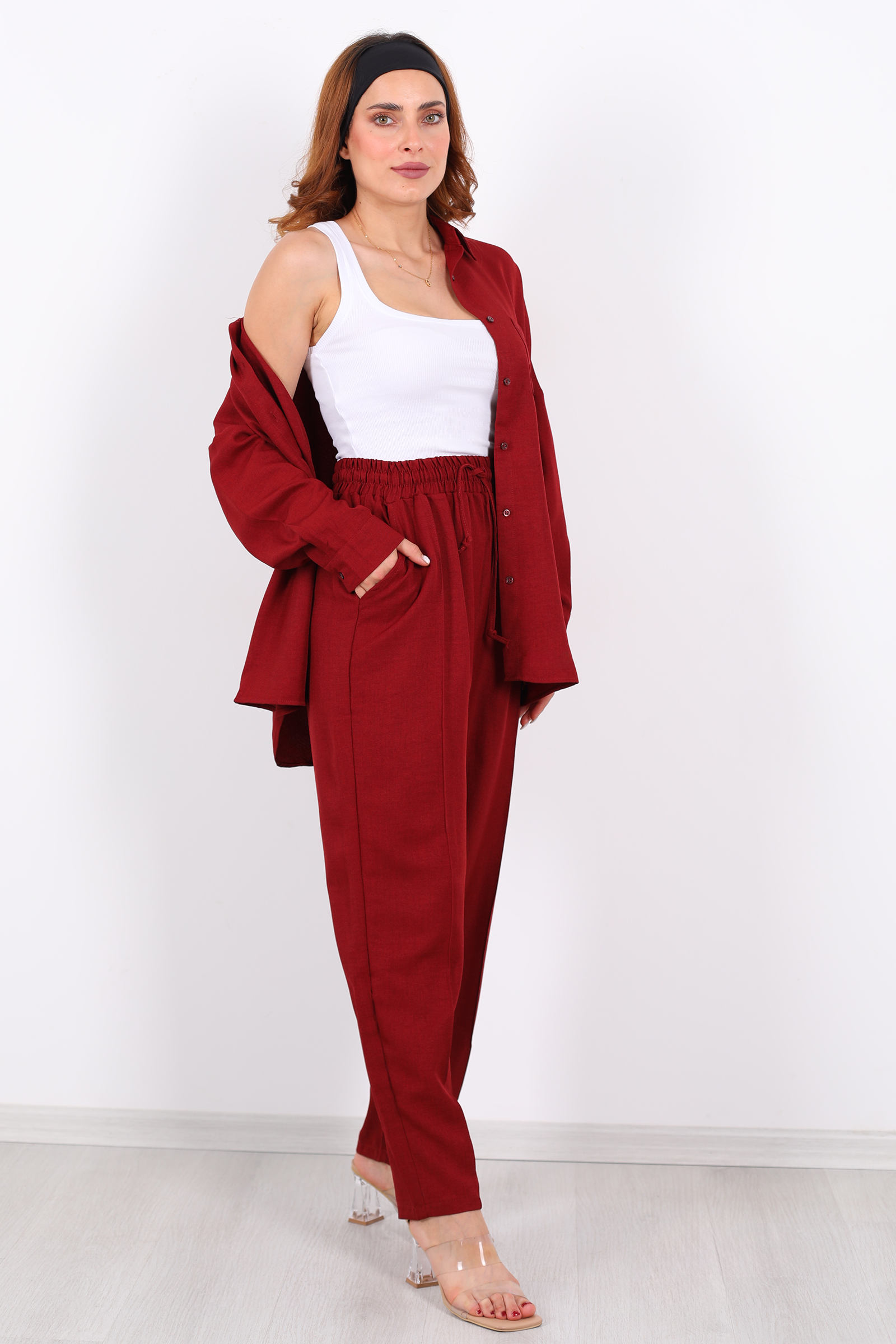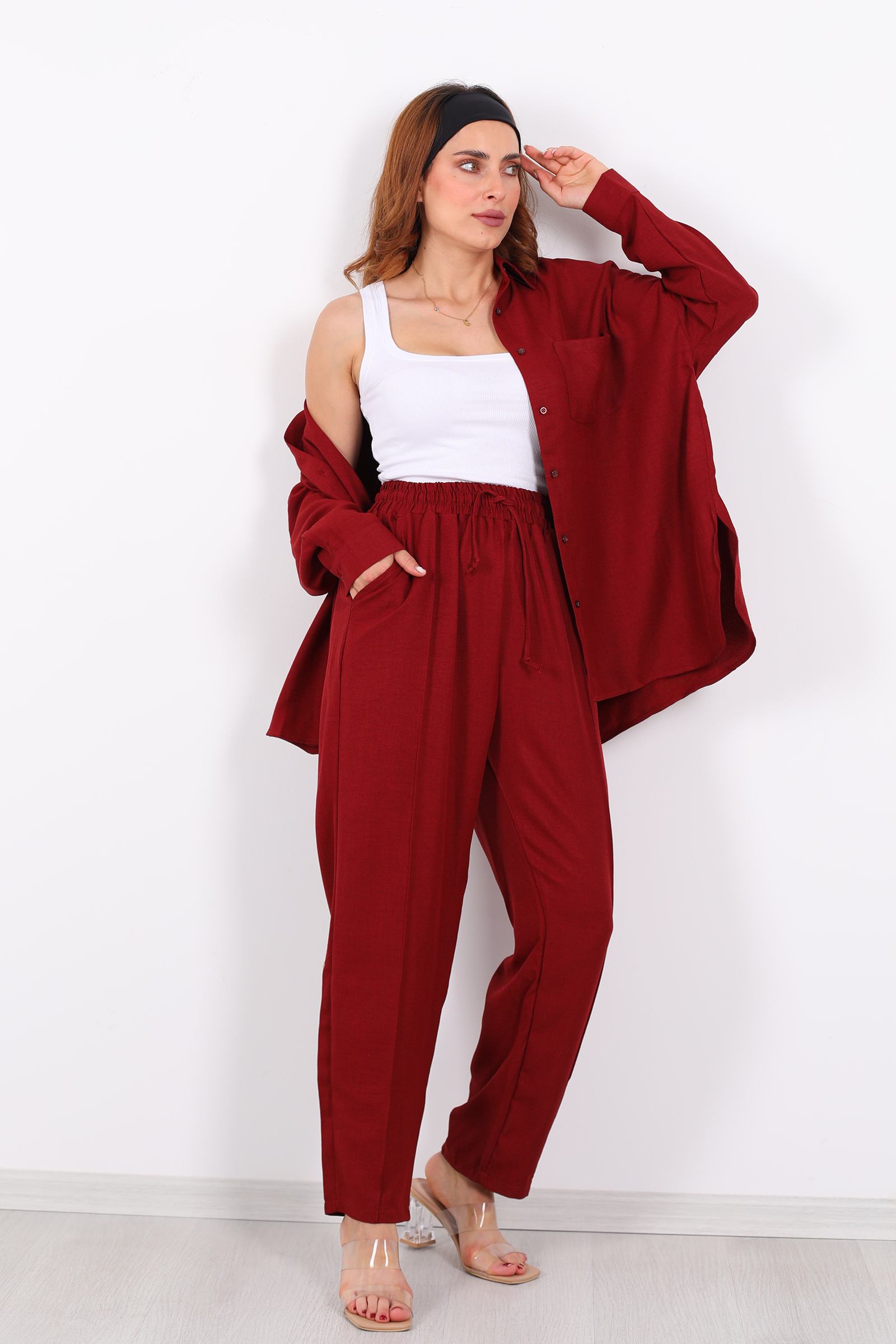 Berox Önü Çımalı Keten Mor Kadın Gömlek Takım, şıklığı ve rahatlığı bir arada sunan modern bir tasarıma sahiptir. Mor rengi, enerjik ve dikkat çekici bir stil yaratırken; önü çımalı detayları, bluze modern bir dokunuş katıyor. Keten kumaşının doğal yapısı, cildinizin nefes almasını sağlar ve gün boyu rahatlık sunar. Bu takım, şıklığı ve rahatlığı bir arada arayanlar için mükemmel bir tercihtir.