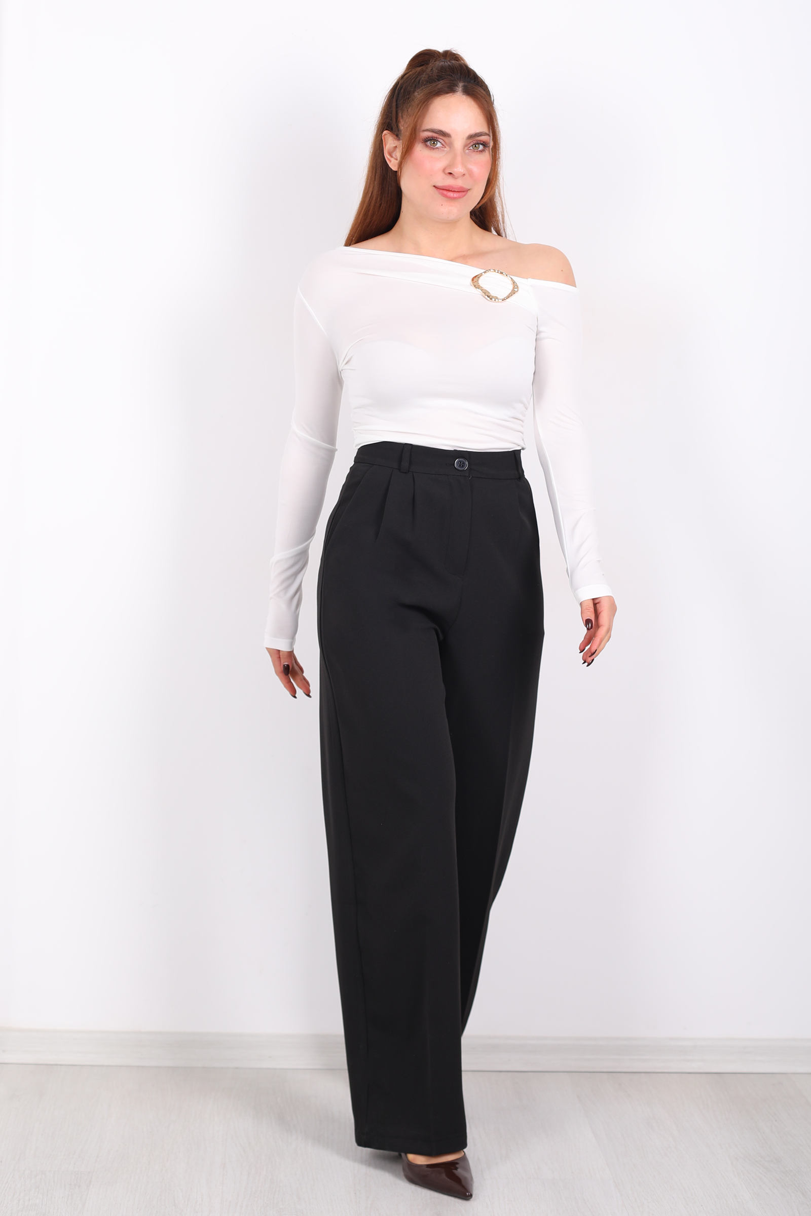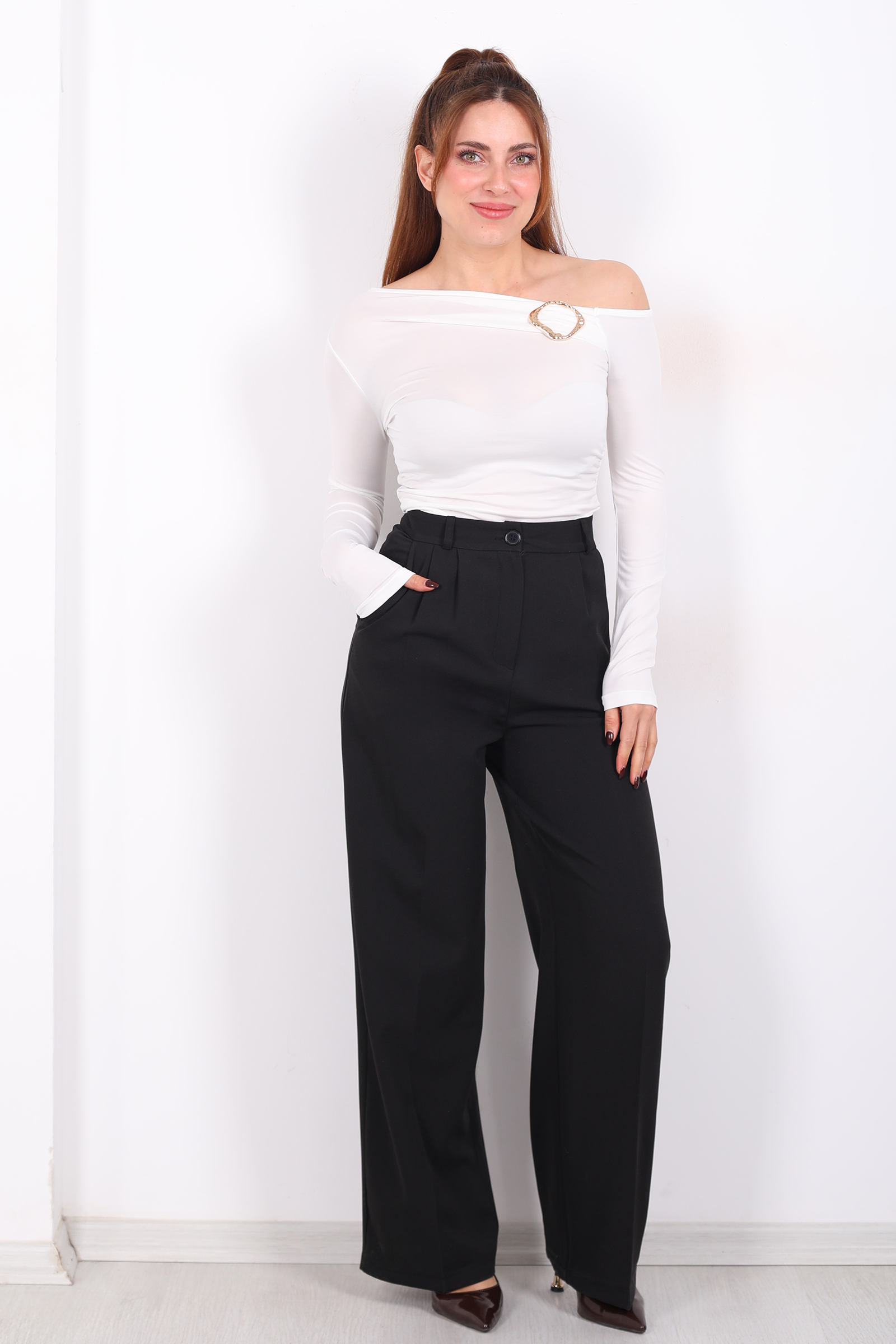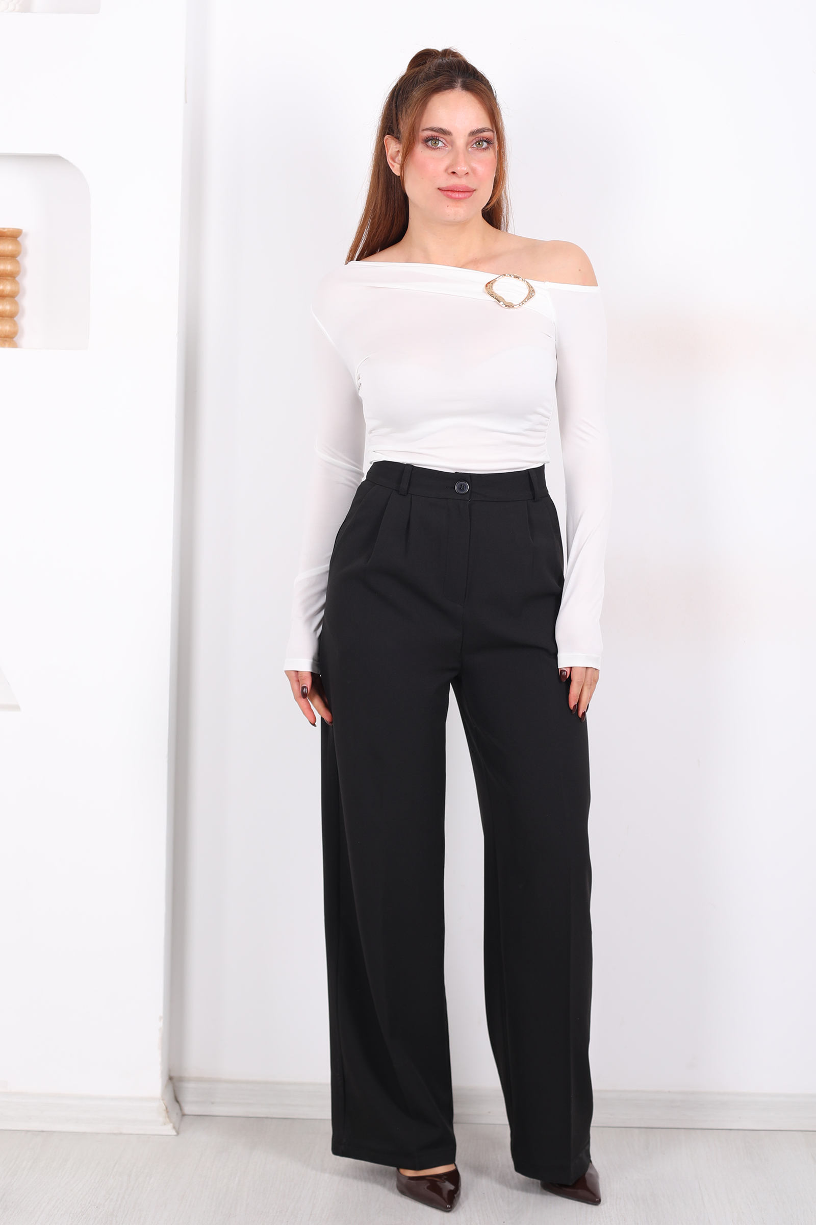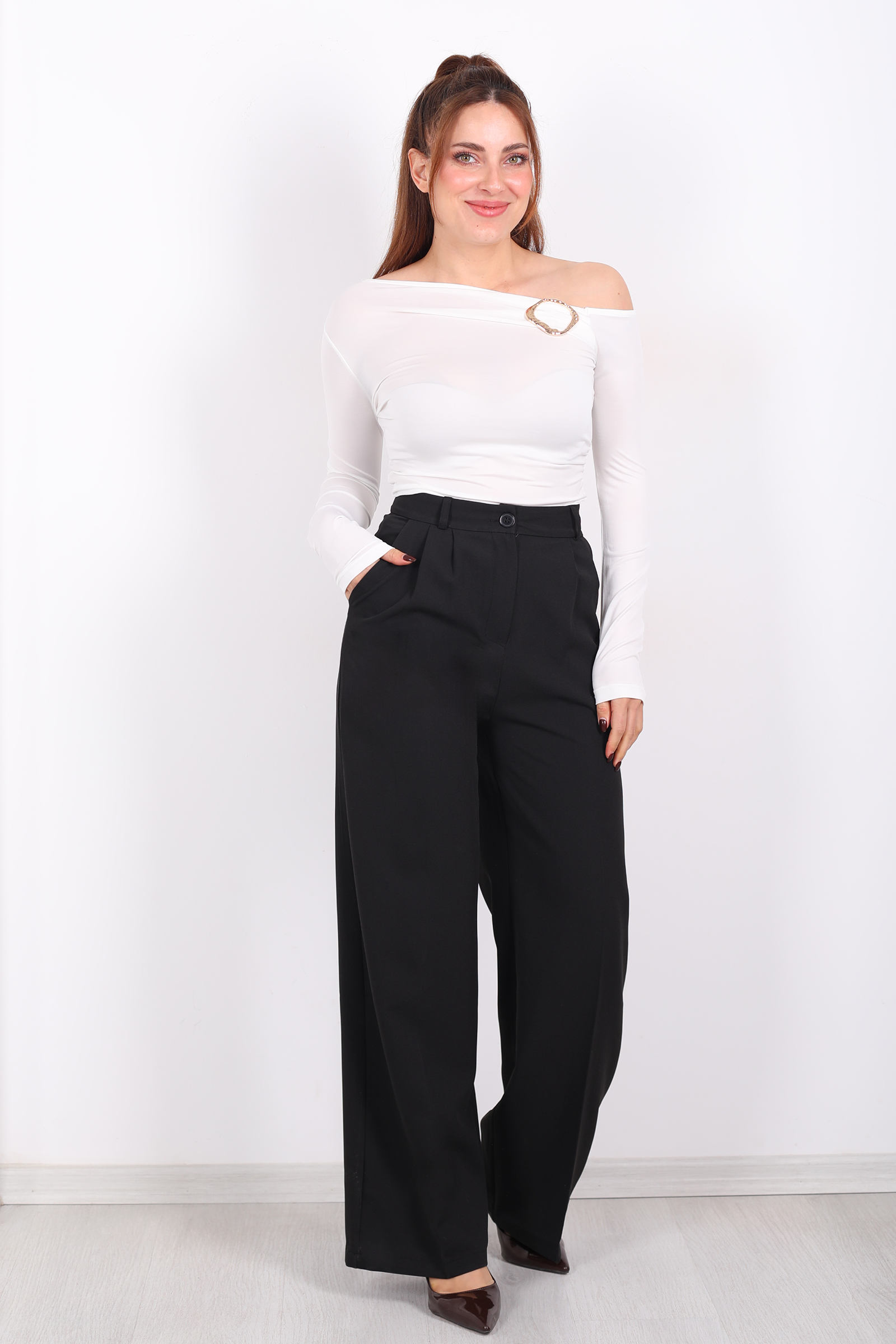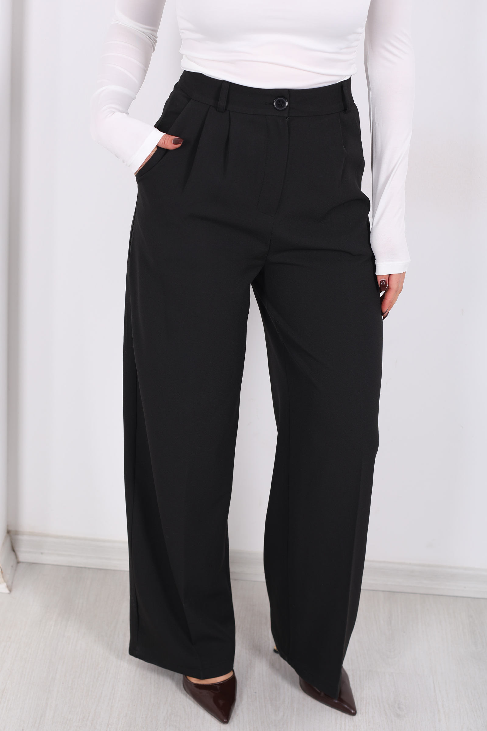Minimal çizgileriyle dikkat çeken bu siyah pantolon, klasik tasarımı modern dokunuşlarla yeniden yorumluyor. Ön pens detayları, kumaşın bele doğru akışını belirginleştirir ve bacak hattında zarif bir yapı hissi yaratır sadece düz değil, stilini ifade eden bir kesim arayanlar için ideal. Pens detayları aynı zamanda siluetinize temiz bir düşüş kazandırarak gün boyu şıklığı destekler.Yan cepler, bu pantolona fonksiyonellik derinliği katarken, günlük kombinlerde rahatlıkla kullanılabilecek bir pratiklik sağlar. Siyahın nötr tonu her üst parça ile uyumlu olup; basic t‑shirt’lerden şık bluzlara, blazer’lardan triko kazaklara kadar pek çok stil seçeneğine açık bir temel oluşturur. Modern kesimi sayesinde bu pantolon; ister iş gününde akıllı ofis stilinin bir parçası ister hafta sonu gezmelerinde etkileyici gündelik kombinlerin yıldızı olabilir.