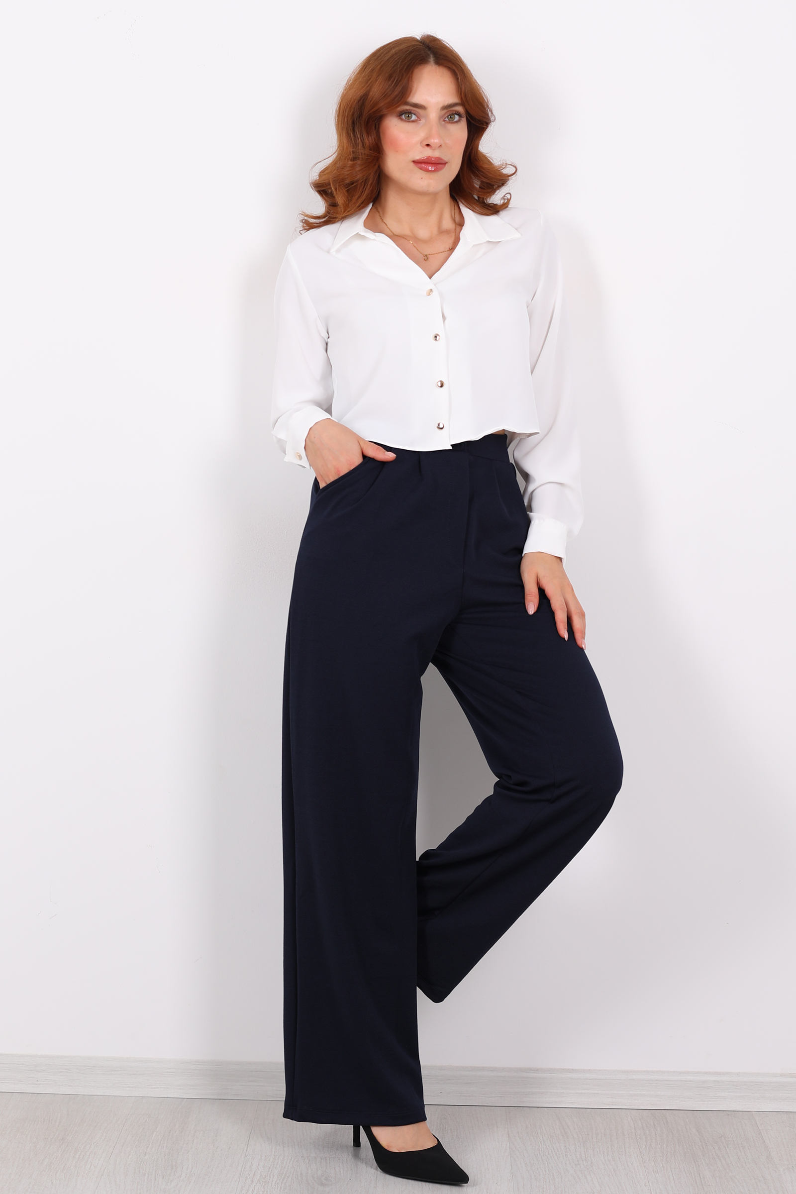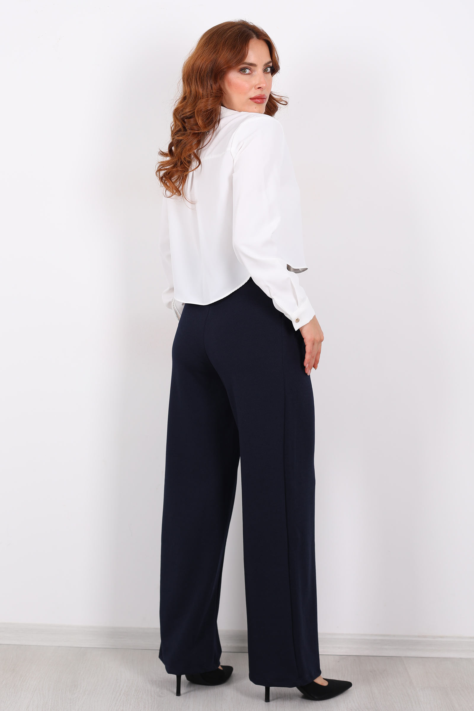 Beli Lastikli Yüksek Bel Lacivert Kadın Modal Pantolon