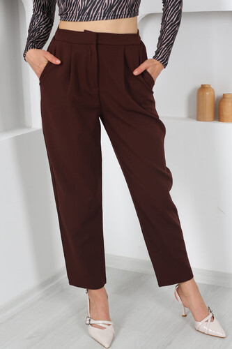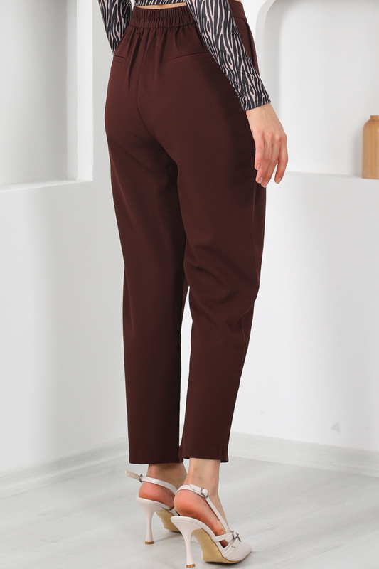 Doğal tonların zarif buluşması: Önü Pensli Yüksek Bel Kahverengi Kadın Kumaş Pantolon, klasik ve şık tasarımıyla her dolabın vazgeçilmezi. Yüksek bel kesimi sayesinde beli kavrayan bu pantolon, bacaklarınızı daha uzun gösterirken, kahverenginin sıcak tonlarıyla stilinize doğal bir dokunuş katar.Ön pens detayları, pantolona modern ve düzenli bir görünüm verirken, kaliteli kumaşı konforu garantiler. İş hayatından sosyal ortamlara, günlük kombinlerden özel günlere kadar her anınıza uyum sağlar.