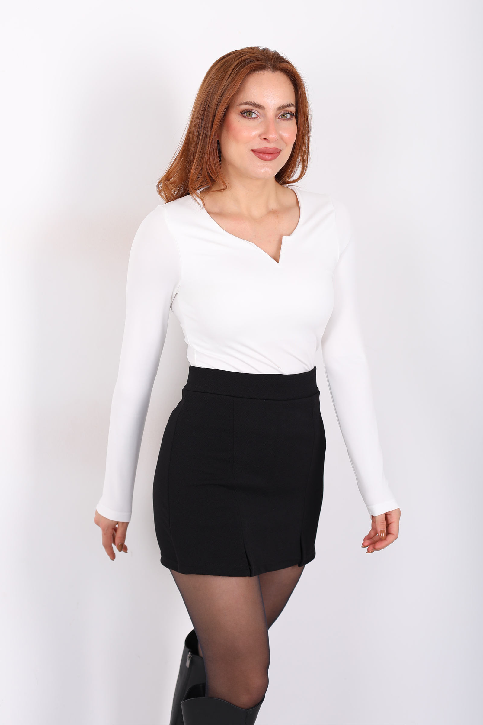 Önü V Dekolteli Beyaz Kadın Sandy Bluz