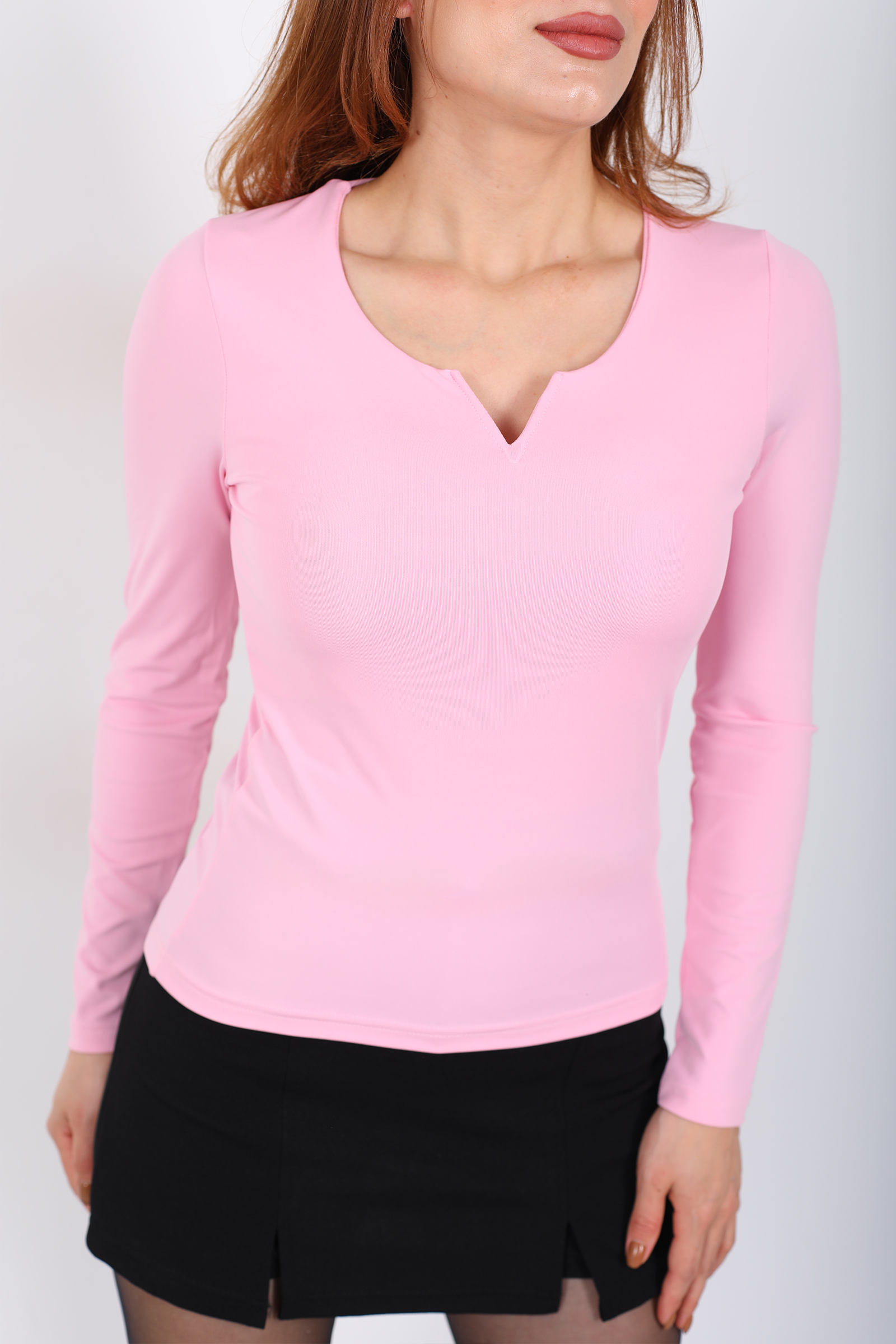 Önü V Dekolteli Pembe Kadın Sandy Bluz