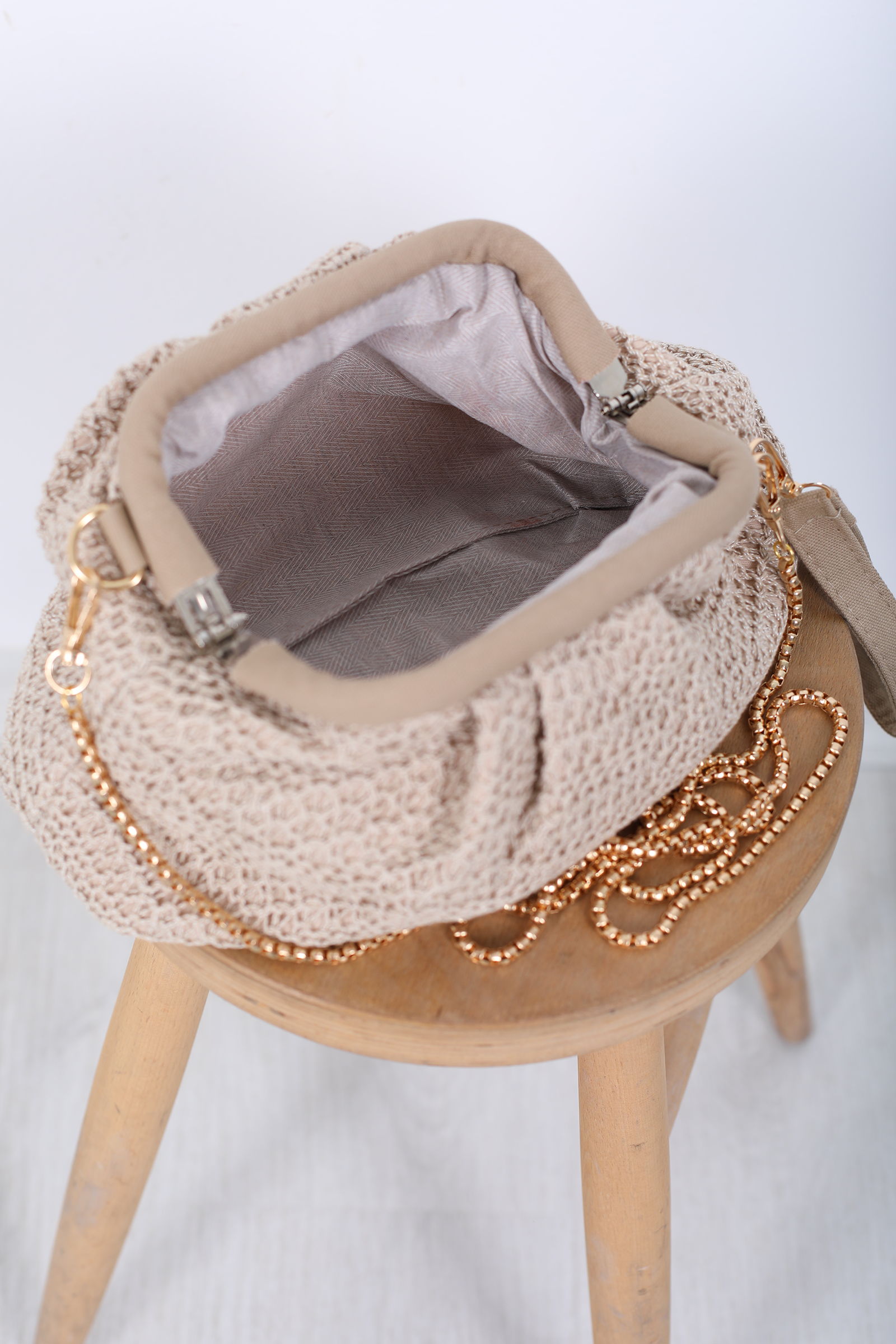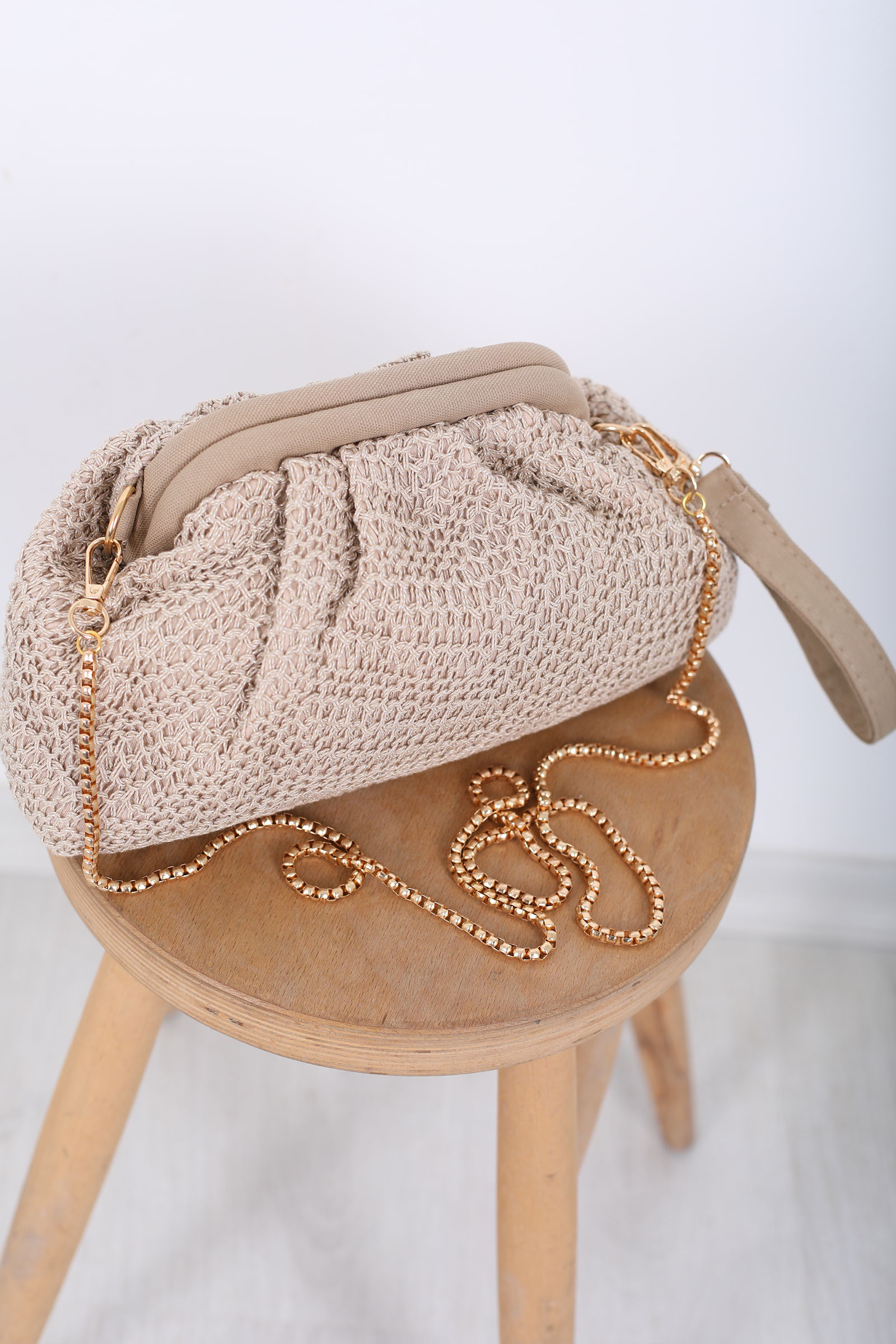 Hasır Örgü Deri Detaylı Taba Zincir Askılı El Çantası