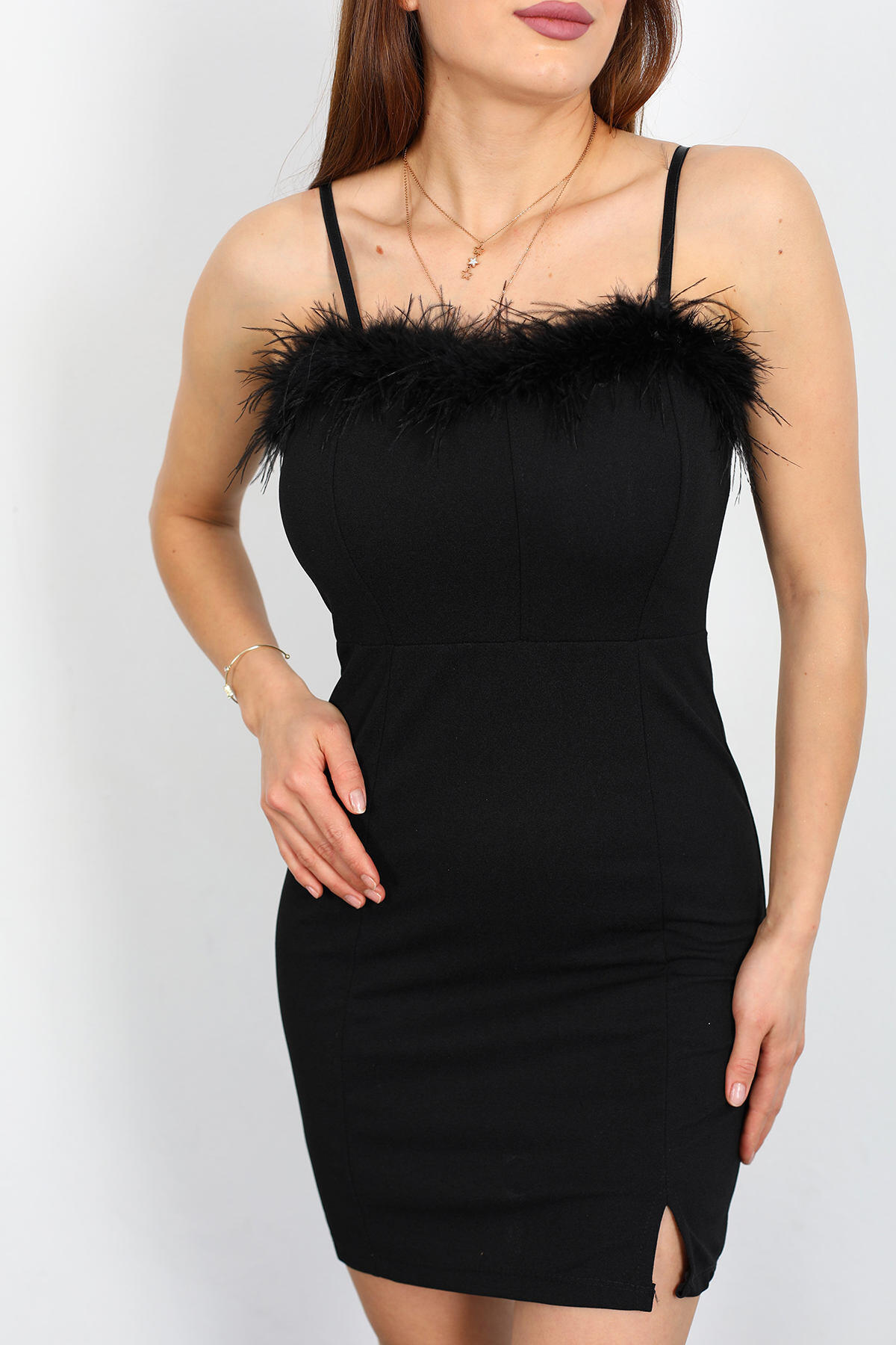 Otriş Tüylü Kadın Siyah Scuba Elbise, zarif tasarımı ve şıklığıyla özel davetlerin vazgeçilmezi olmaya aday. Scuba kumaşının esnek yapısı, vücuda oturan bir siluet oluştururken, otiriş tüylü detaylar elbiseye lüks bir hava katıyor. Siyah rengi, altın veya gümüş aksesuarlarla mükemmel uyum sağlar. Türkiye'de yerli üretim kalitesiyle üretilmiş bu elbise, özel davetler, gece etkinlikleri ve şık kombinler için ideal bir tercihtir.