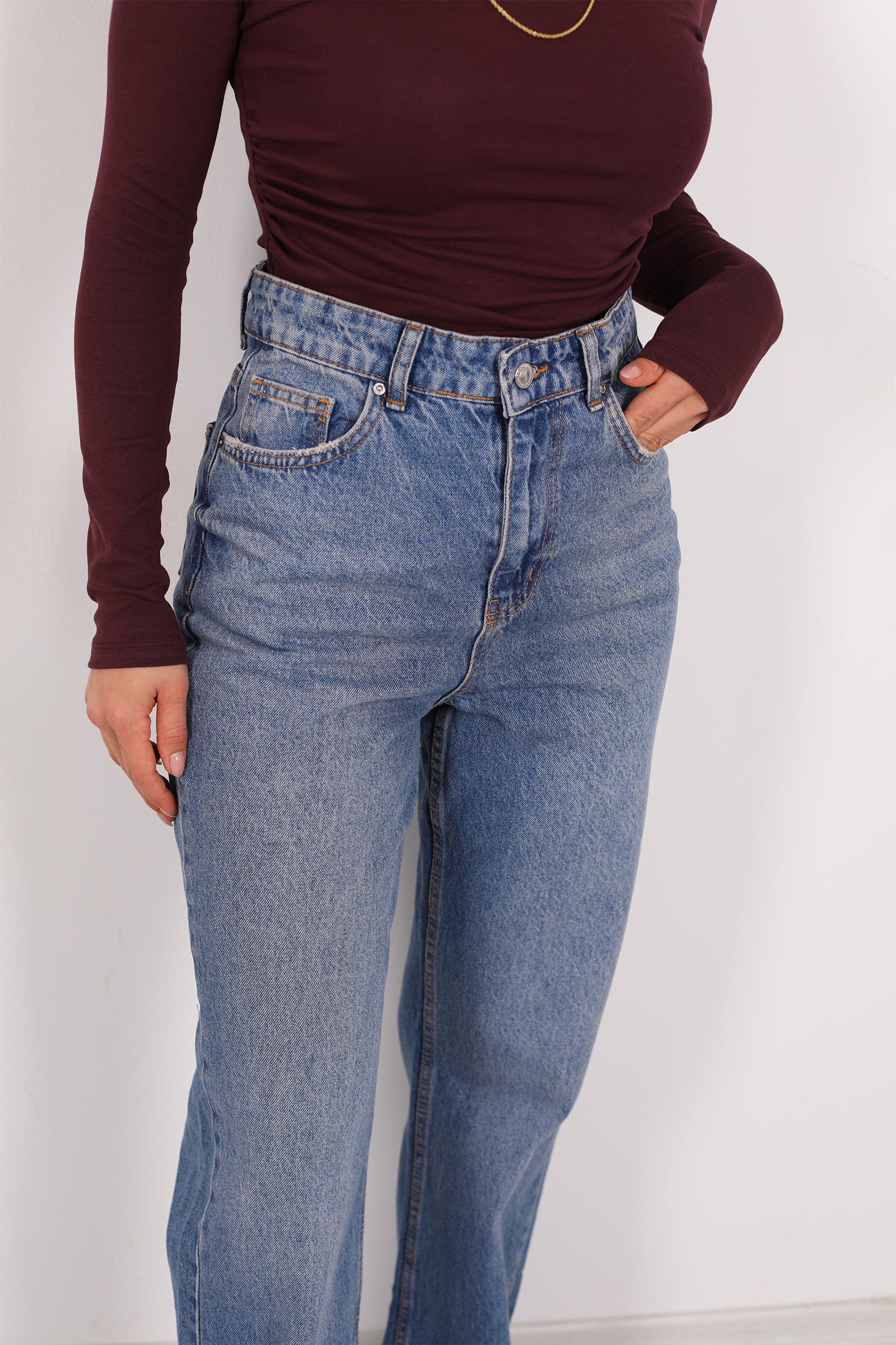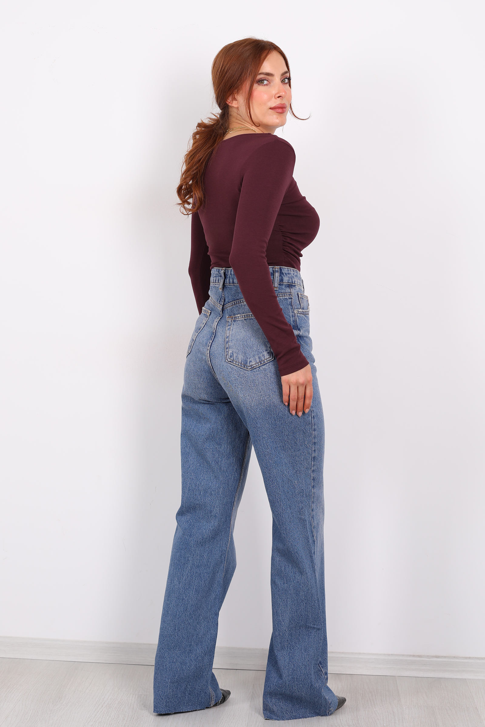 Bu pantolon, kar tanelerinin hafifçe serpilmiş görünümünü andıran “kar yıkama” efektiyle tasarlanmış mavi tonuyla öne çıkıyor. Bol palazzo paça ve kesik paça detayı, hem akıcı bir siluet hem de modern bir hava kazandırıyor.Palazzo kesimi sayesinde paçalar geniş ve salaş; bacakta doğal bir döküm etkisi yaratır.Kullanım açısından oldukça esnek; gündüz gezmelerinden akşam etkinliklerine kadar farklı kombinlere kolaylıkla uyum sağlar.