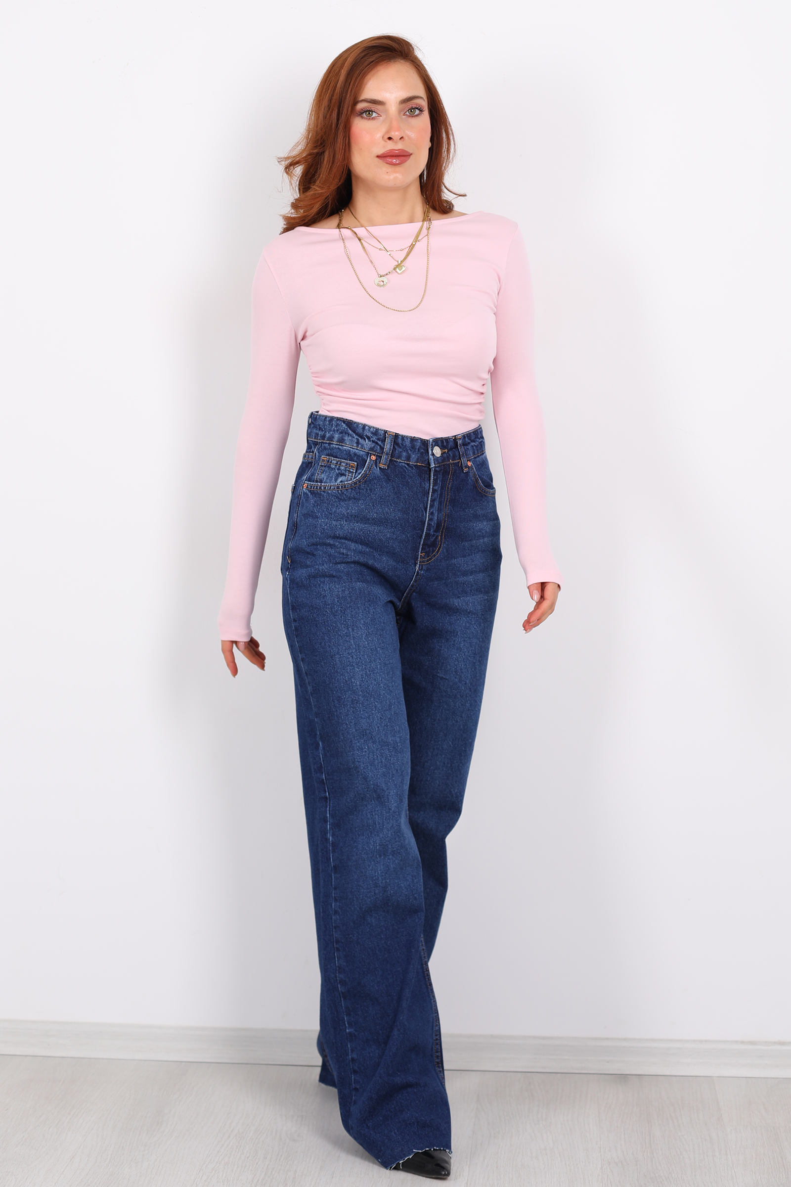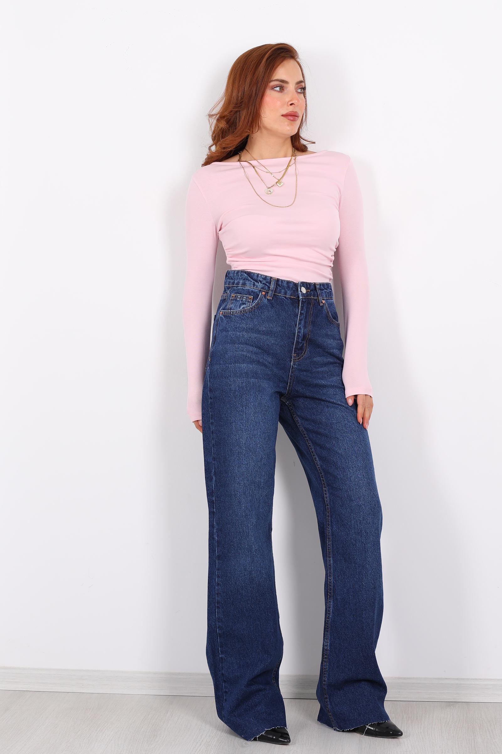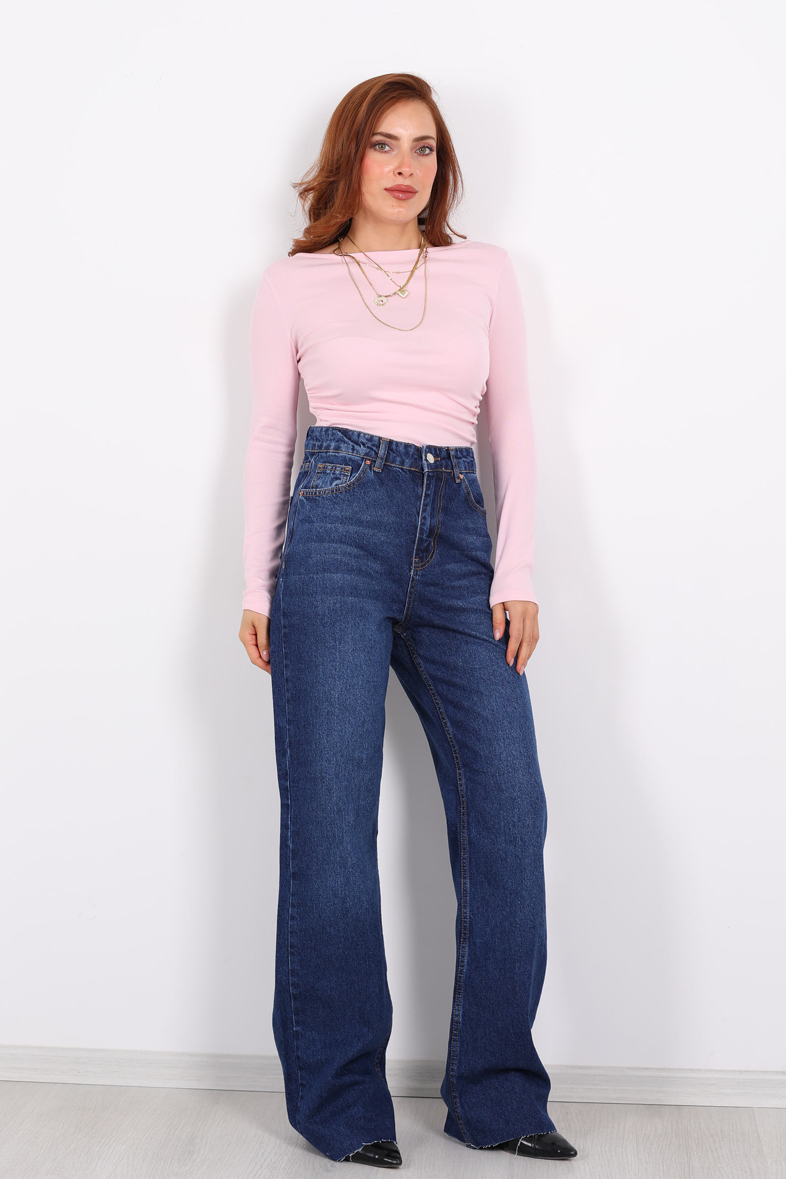 Gecenin derin mavisini andıran bu palazzo pantolon, cesur kesikleri ve kar yıkama efektiyle standart kot anlayışını altüst ediyor. Bol paçalarıyla hareketinize özgürlük katarken, koyu mavi tonu sofistike bir duruş sunar klasik ve moderni ustalıkla harmanlayan bir stil parçası.İnce gömlek + hafif dokulu blazer + loafer ile dengeli ve sofistike bir stil sağlar.