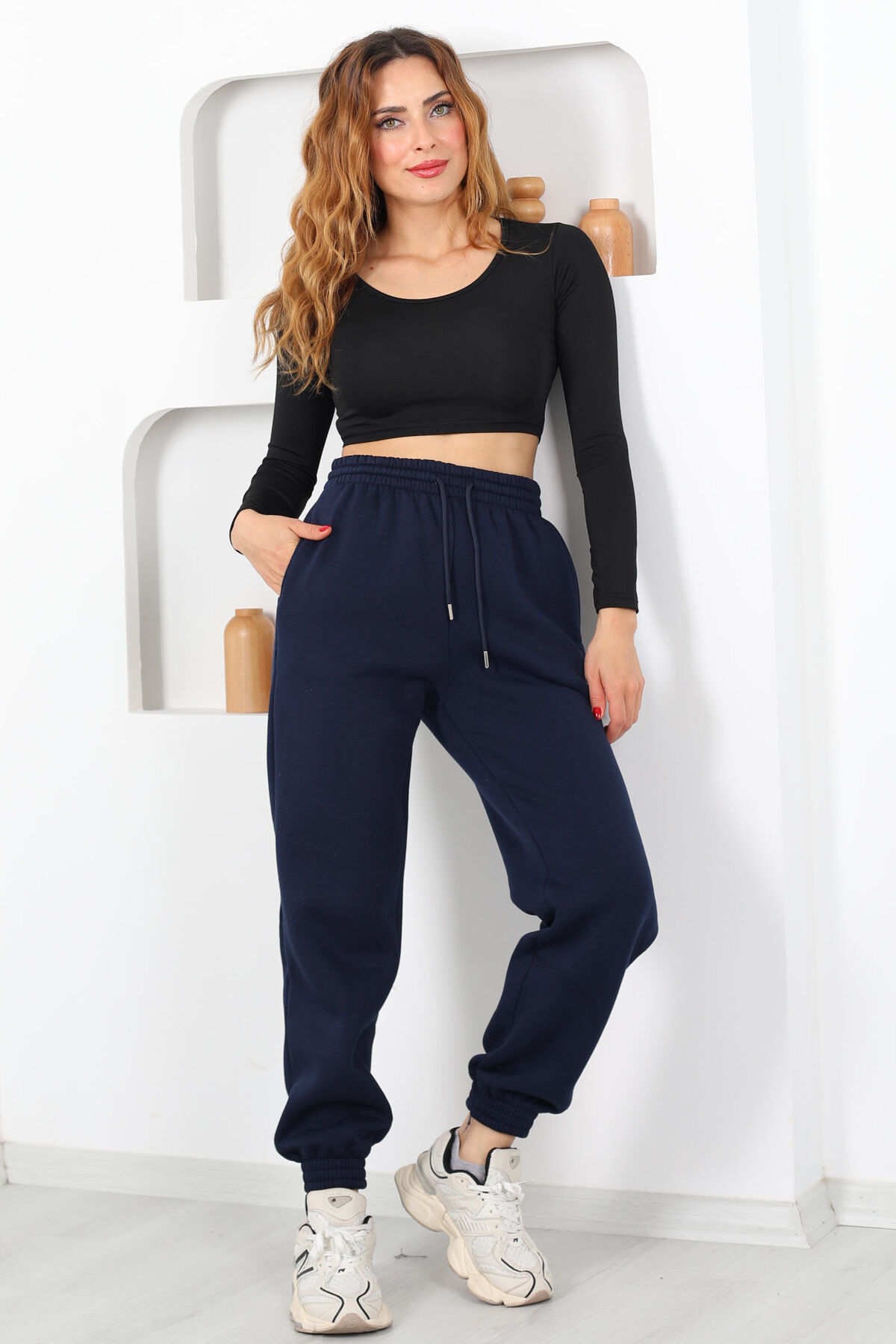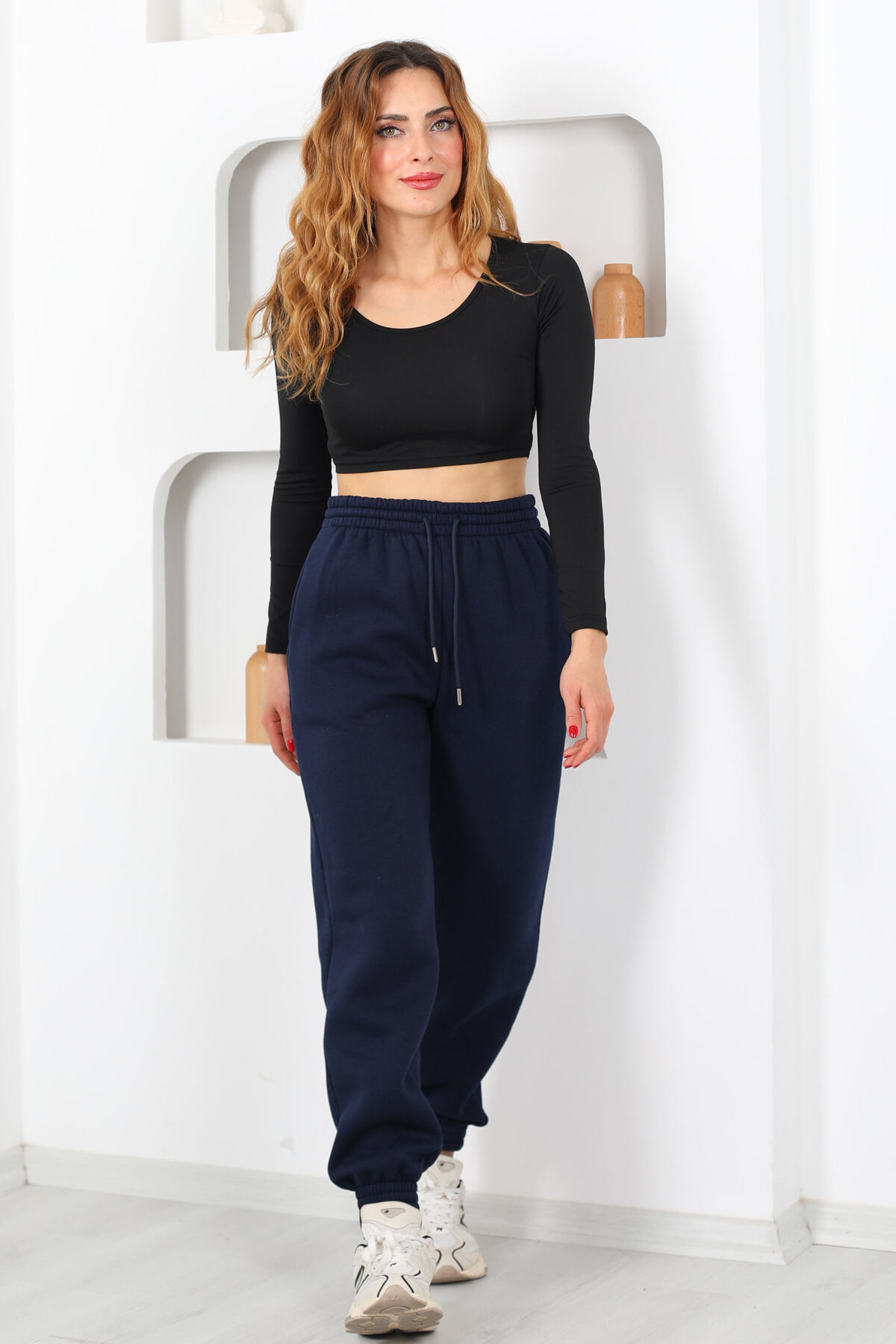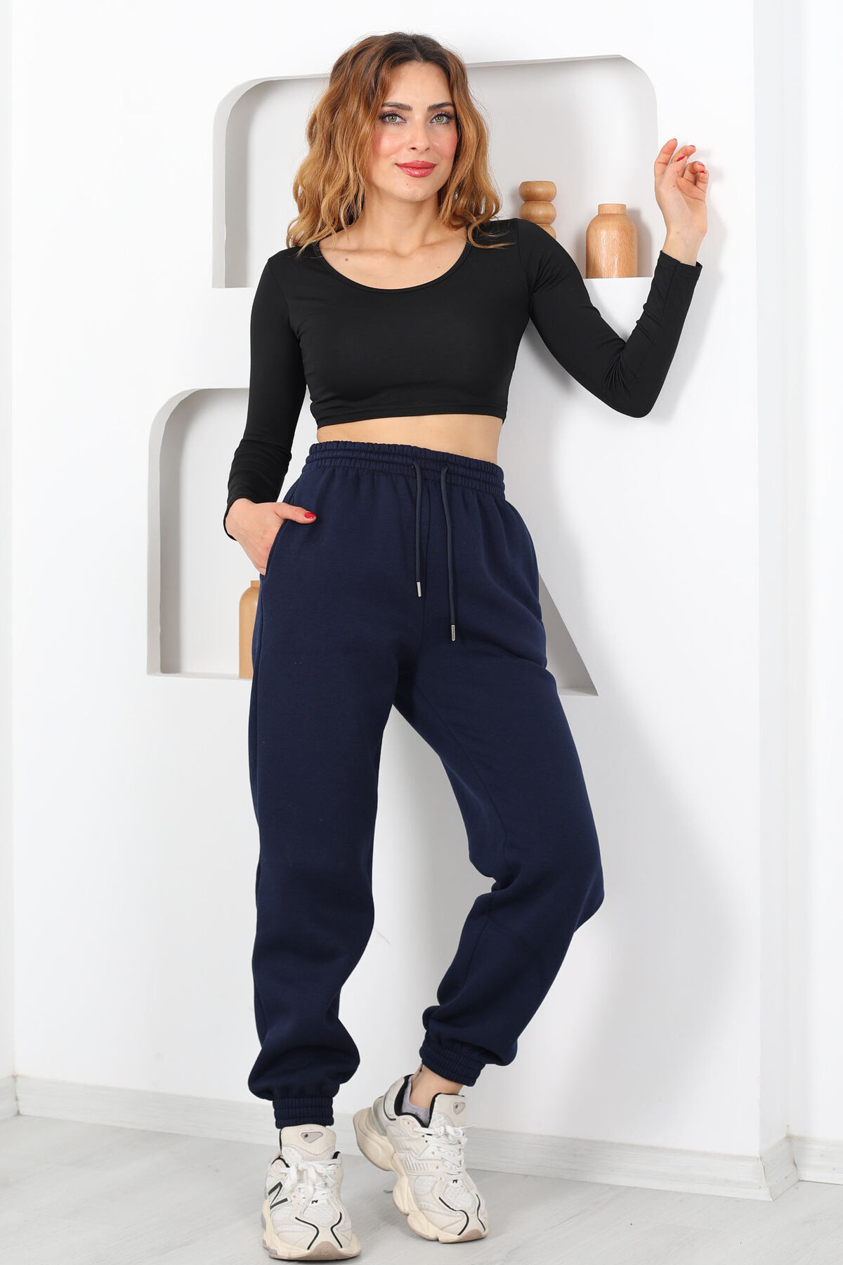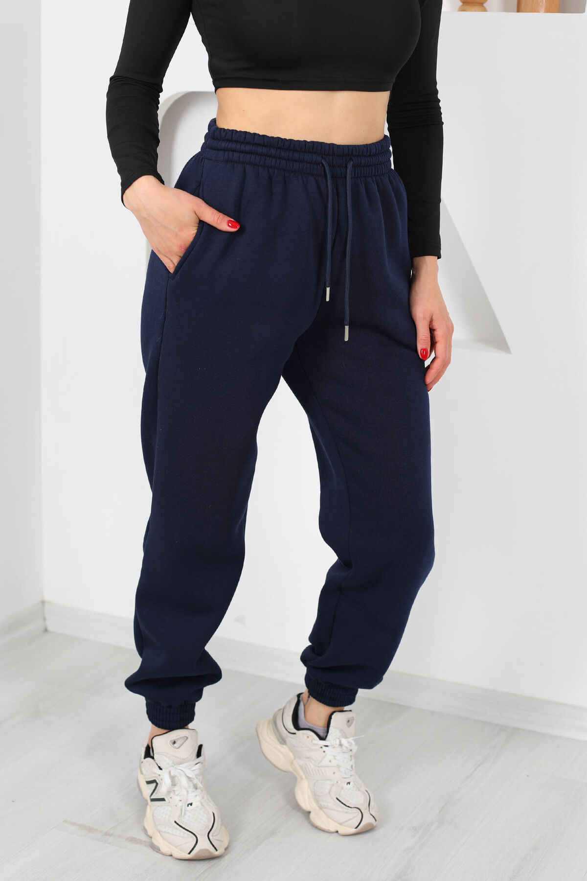 Modern şehir ritmini yakalayan şıklığın ve konforun yeni adı: Beli Lastikli Üç İplik Boru Paça Lacivert Kadın Eşofman Altı. Derin lacivert tonu, hem şıklığı hem de temel gardırop ihtiyaçlarınızı karşılamak için zamansız bir seçim sunar. Üç iplik kumaştan üretilen yapısı, sıcak tutarken nefes alabilirlik sunar; bu sayede spor aktivitelerden ev rahatlığına kadar geniş bir kullanım alanında kendinizi rahat hissetmenizi sağlar. Boru paça kesimi, bacak boyunuzu vurgulayıp modern bir siluet oluştururken, bel lastiği gün boyu kolay hareket etmenize olanak tanır.