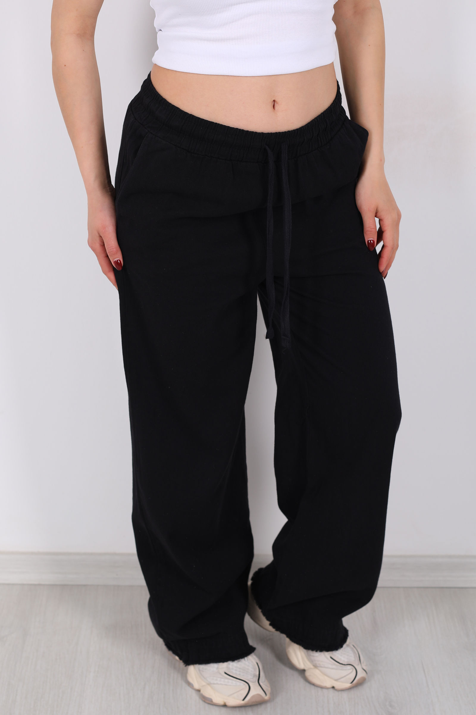 Klasik siyahın her gardıropta olması gerektiğini düşündüğümüz bu keten pantolon; stil, rahatlık ve modern detayları bir arada sunuyor. Ketenin doğal yapısı sayesinde sıcak havalarda bile ferahlık hissi verirken, paça uçlarındaki püsküller pantolona küçük ama etkileyici bir karakter kazandırır.