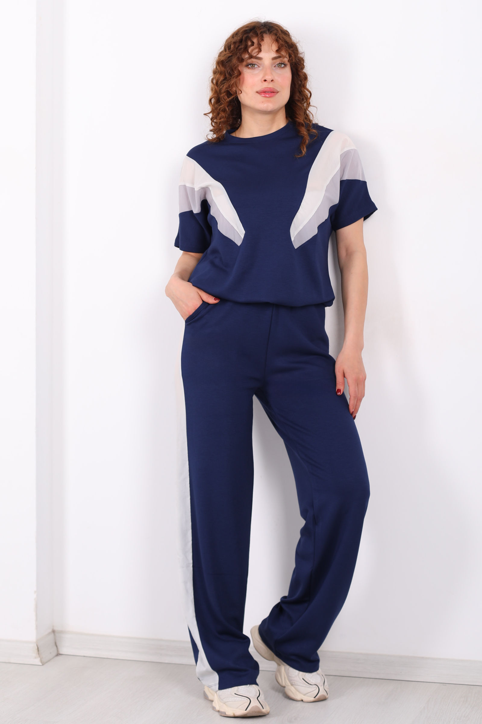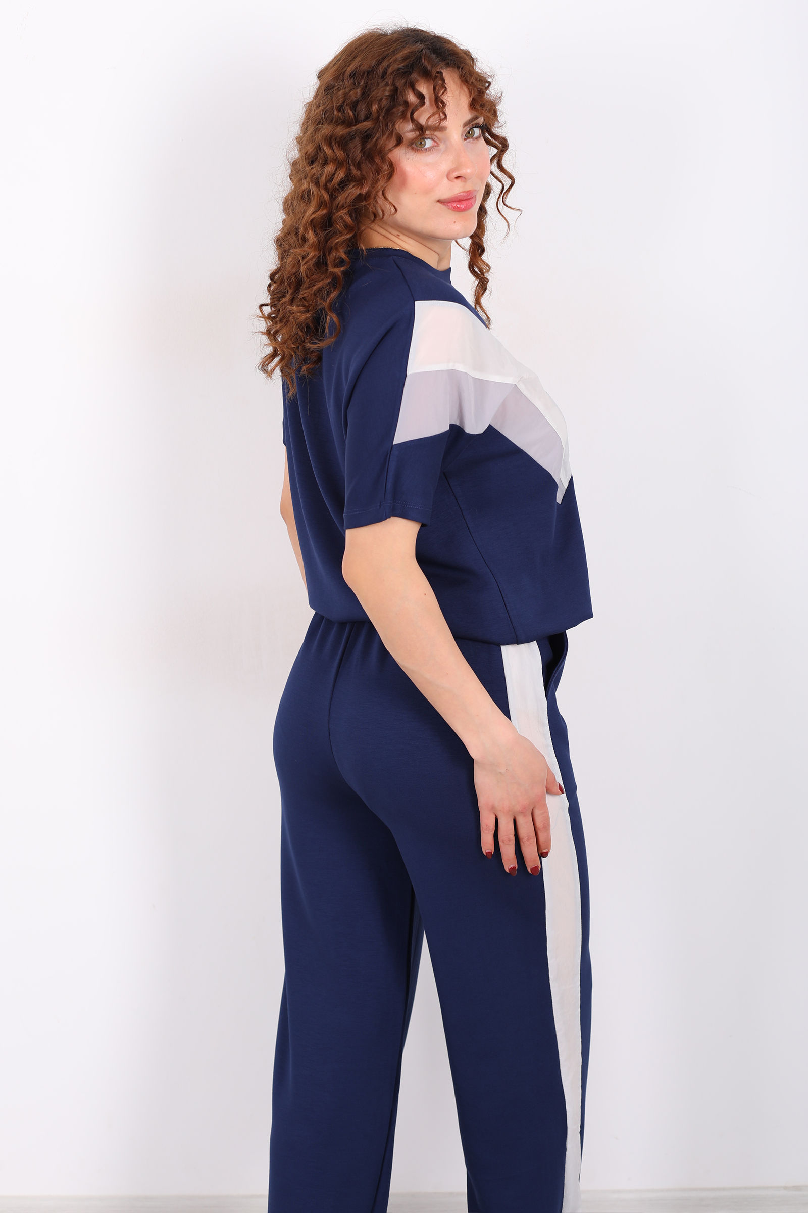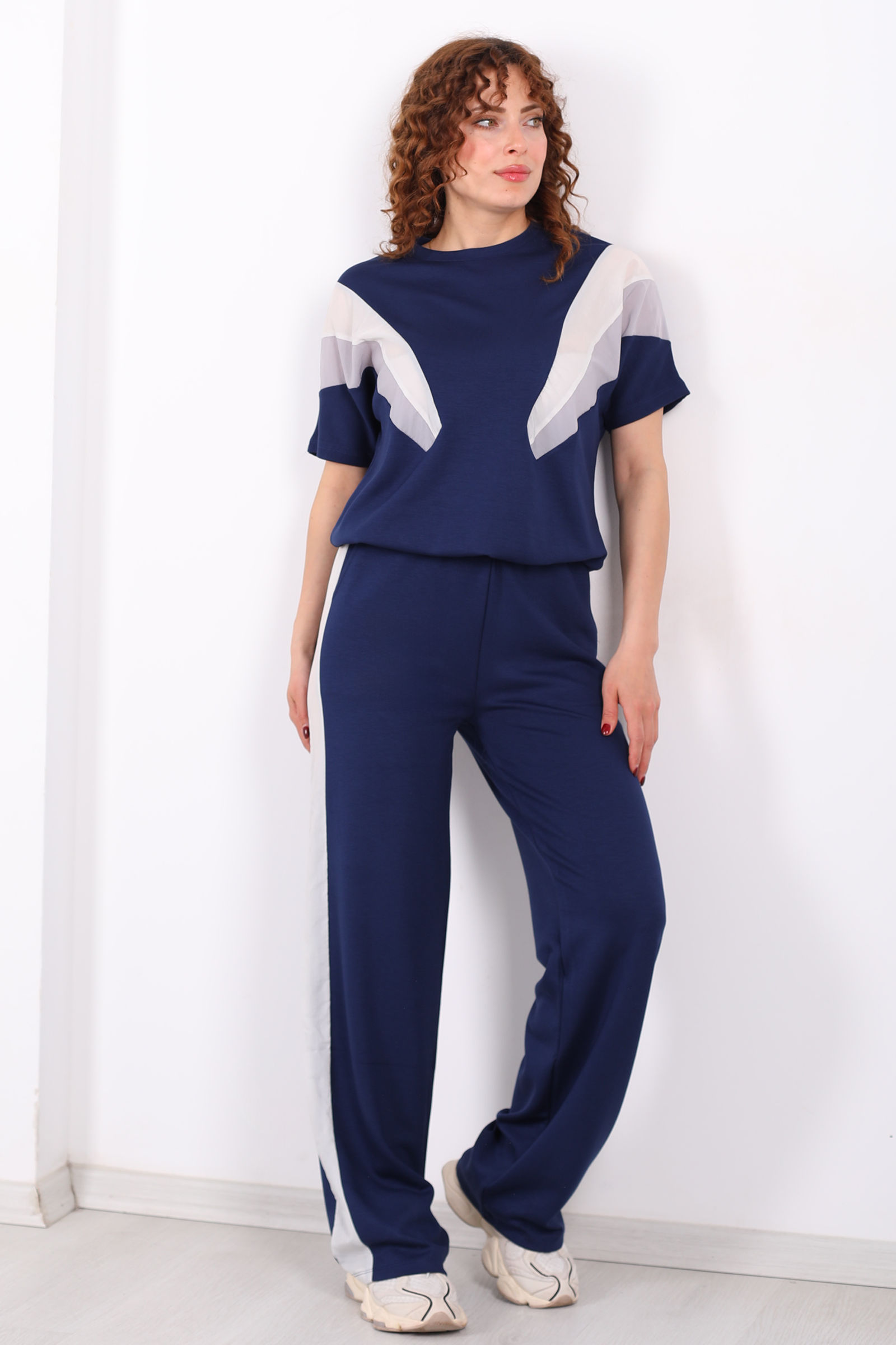 Paraşüt Garnili Lacivert Kadın Stoperli Takım