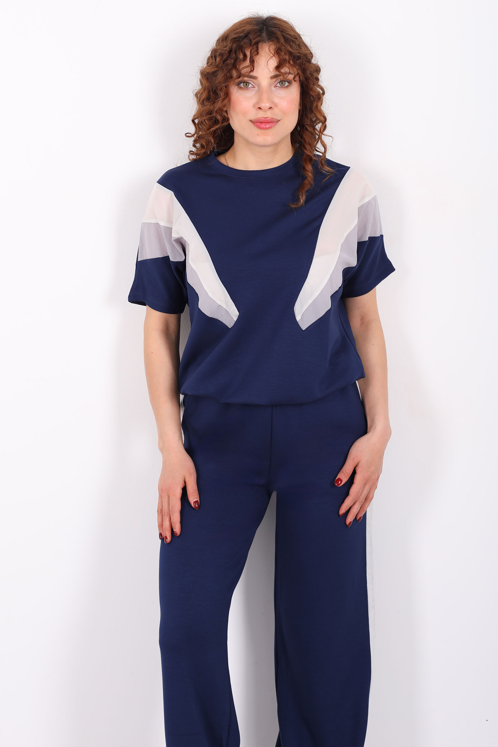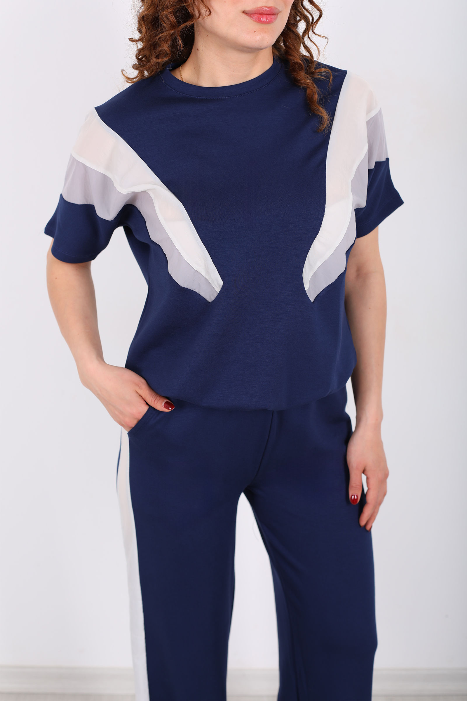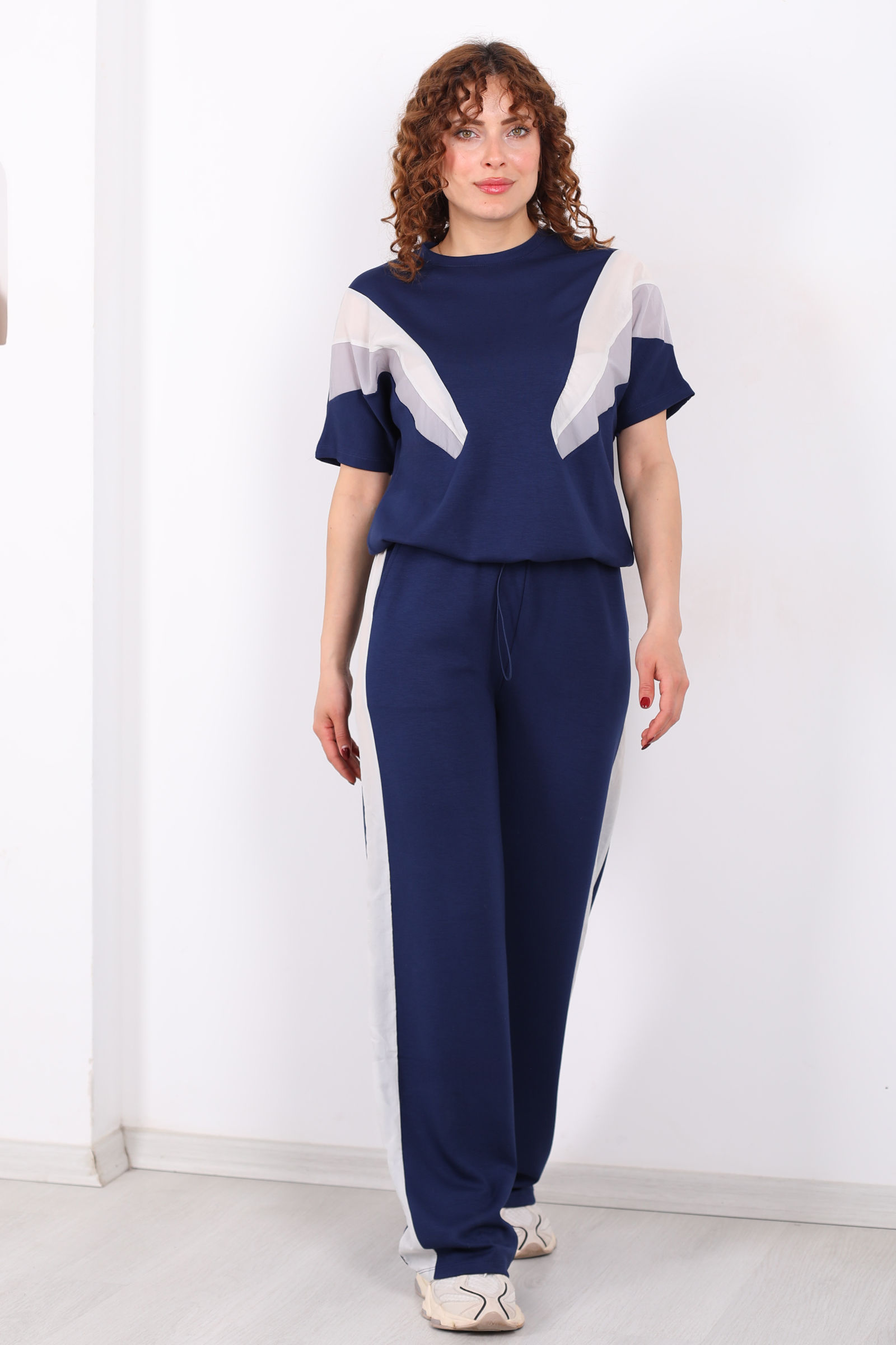 Paraşüt Garnili Lacivert Kadın Stoperli Takım
