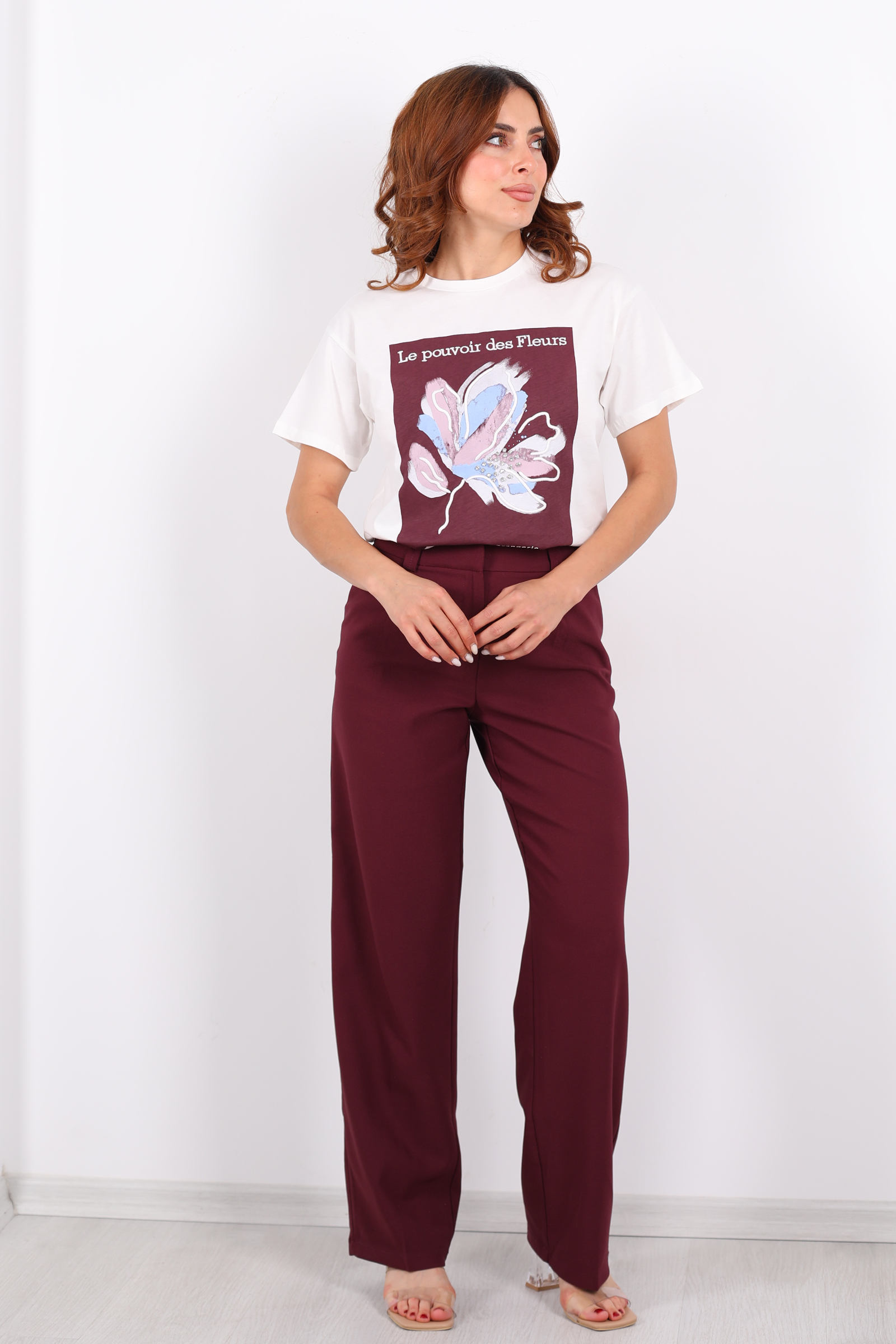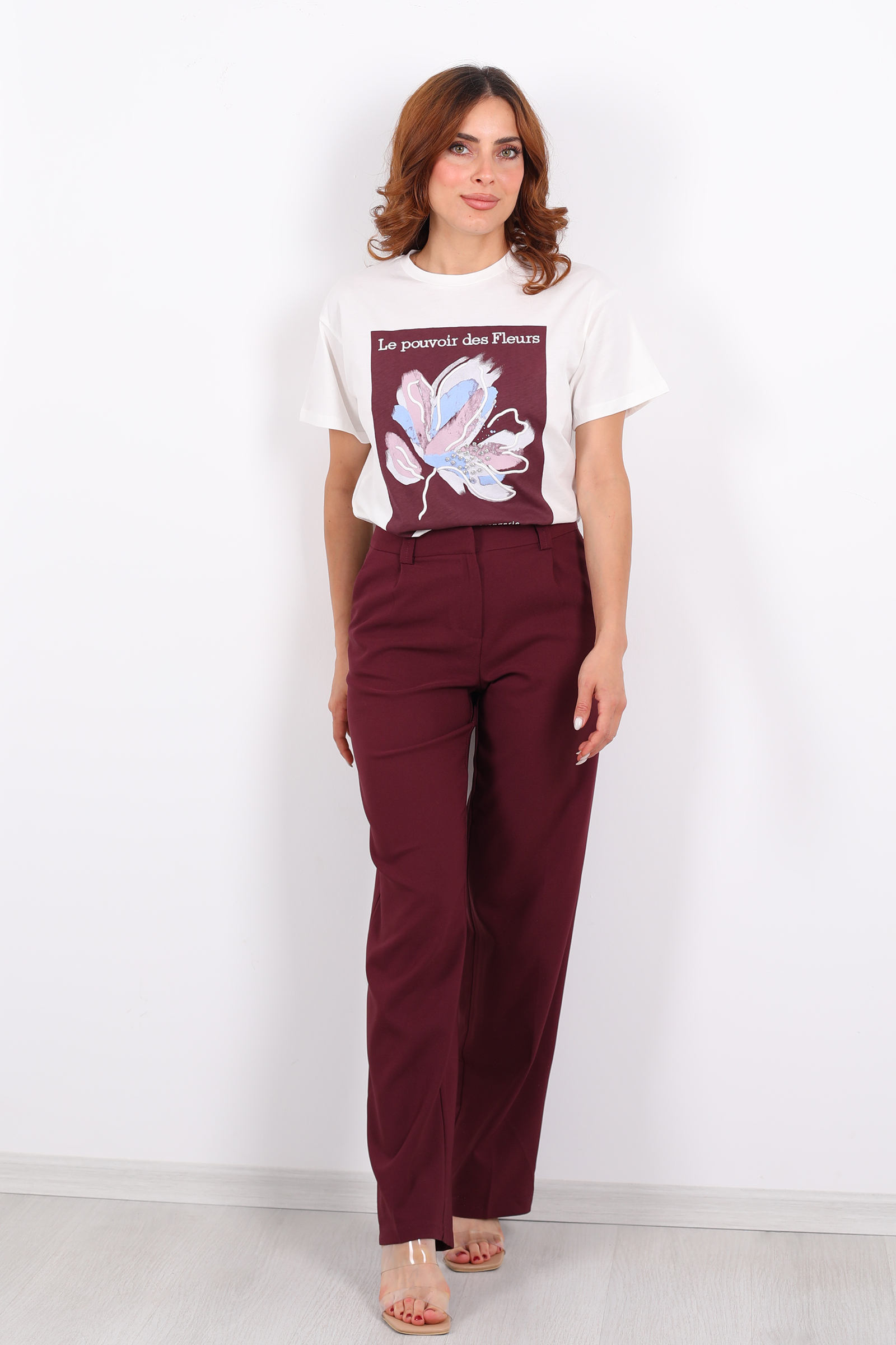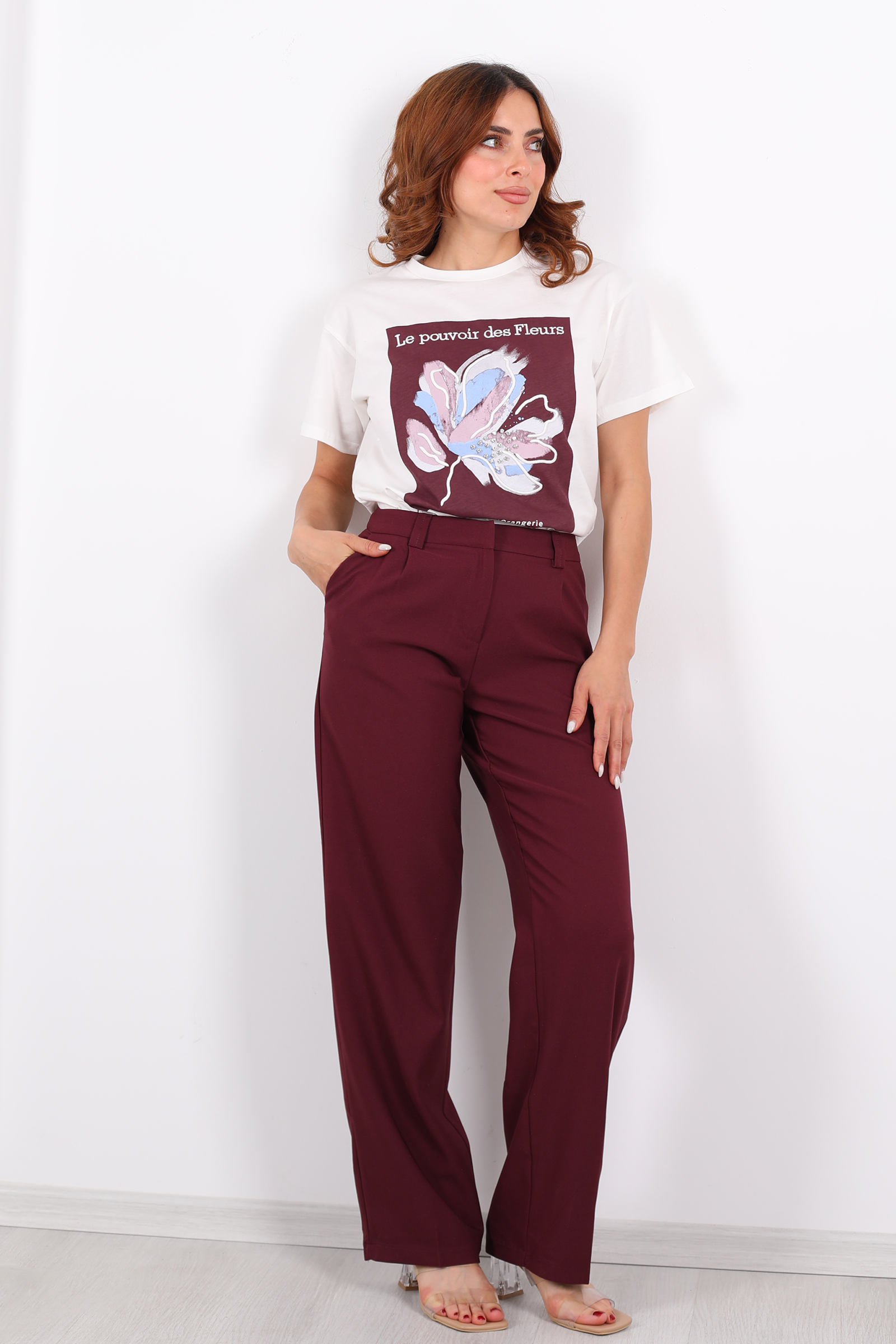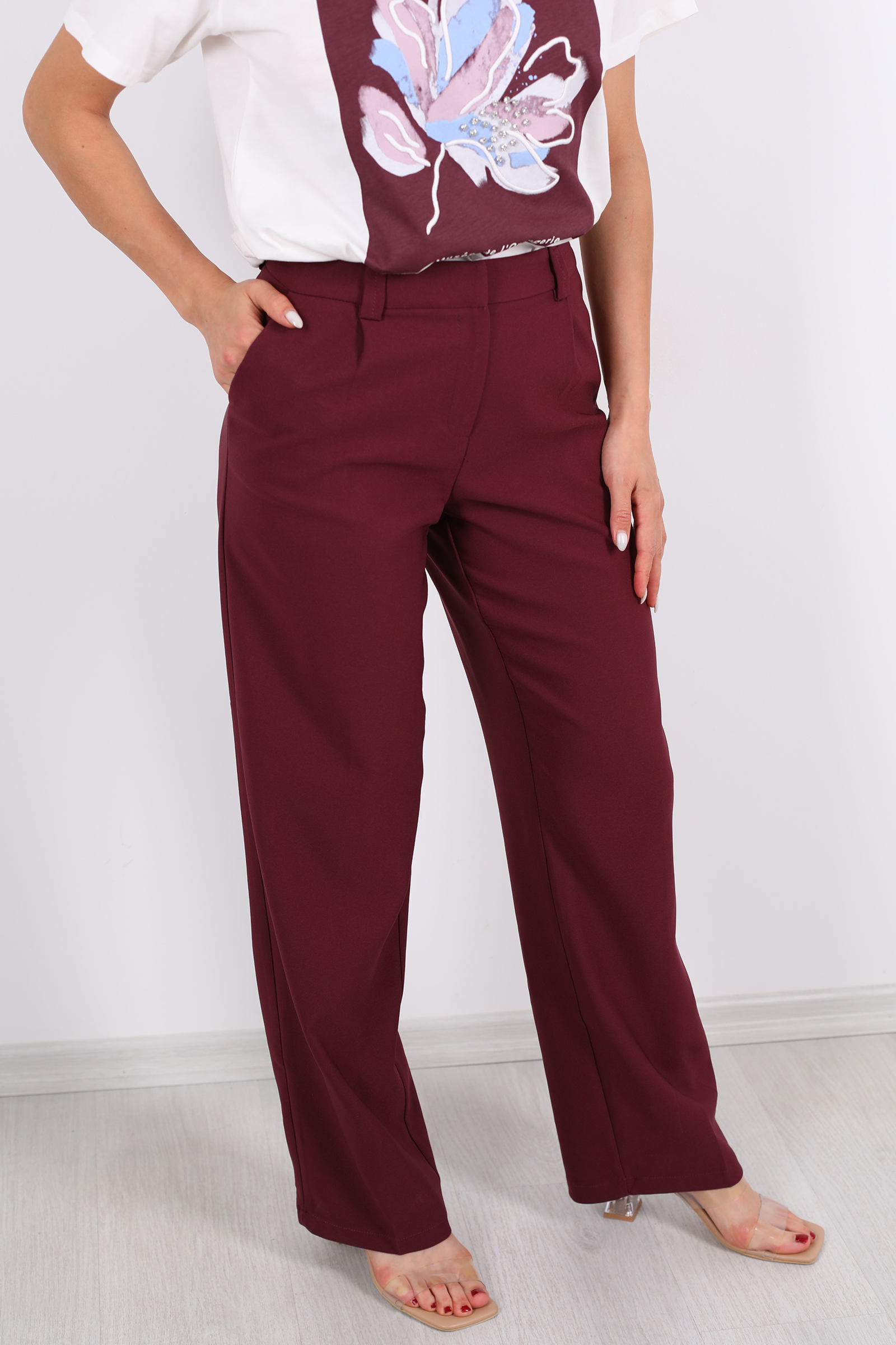 Mürdümün derin tonlarıyla tasarlanmış bu pileli pantolon, şıklığı ve rahatlığı bir arada sunuyor. Yüksek bel kesimi, vücut hatlarınızı zarifçe sararken, bol paça tasarımı hareket özgürlüğü sağlıyor. Ofisten özel davetlere kadar geniş bir kullanım yelpazesi sunan bu pantolon, gardırobunuzun vazgeçilmezi olmaya aday.Ofis Şıklığı: Beyaz gömlek ve topuklu ayakkabılarla profesyonel bir görünüm elde edin.