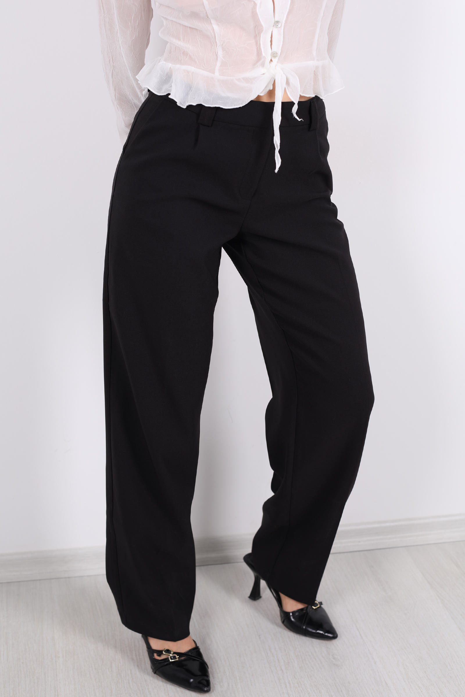 Klasik siyah rengin zamansız şıklığı, pile detaylarıyla hareket kazanıyor. Bu pantolon, yüksek bel kesimi sayesinde belinizi ön plana çıkarırken, bol paça tasarımıyla rahat ve özgür bir kullanım sunar. Günlük kombinlerden iş toplantılarına, özel davetlerden şehir gezmelerine kadar her anınıza şıklık katmak için tasarlandı.Klasik beyaz gömlek ve şık topuklu ayakkabılarla iş yerinde profesyonel bir duruş yakalayın.