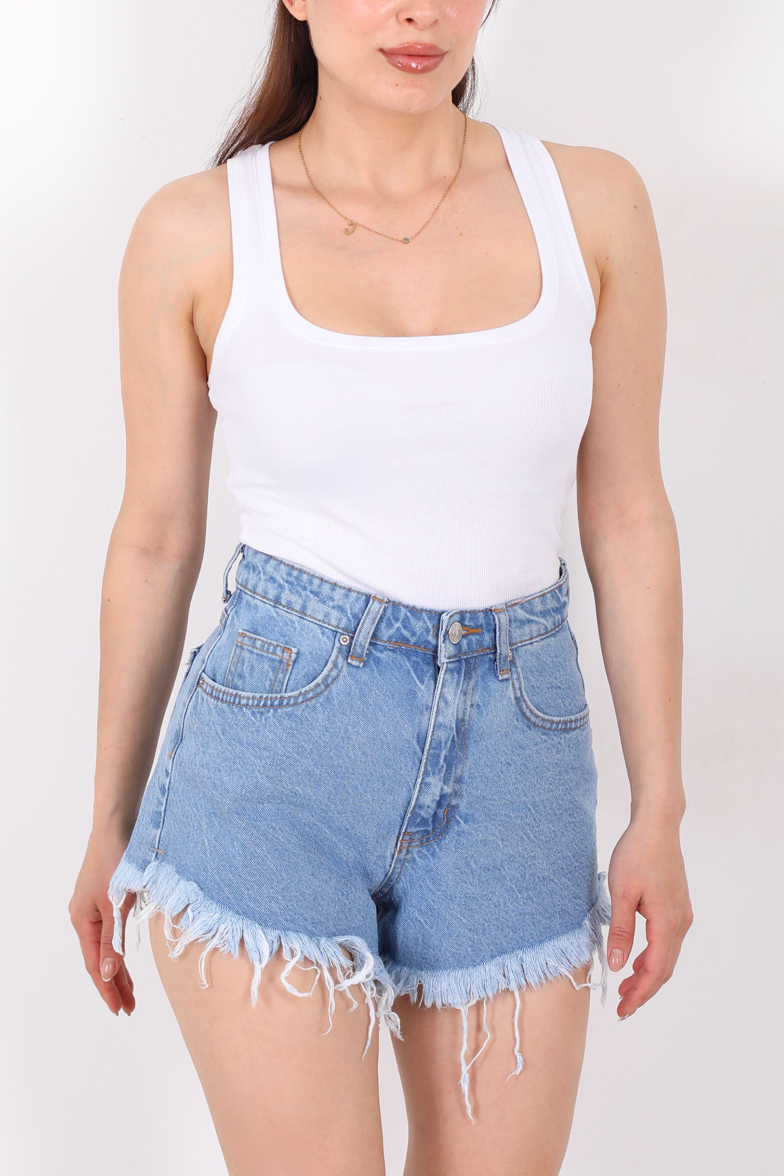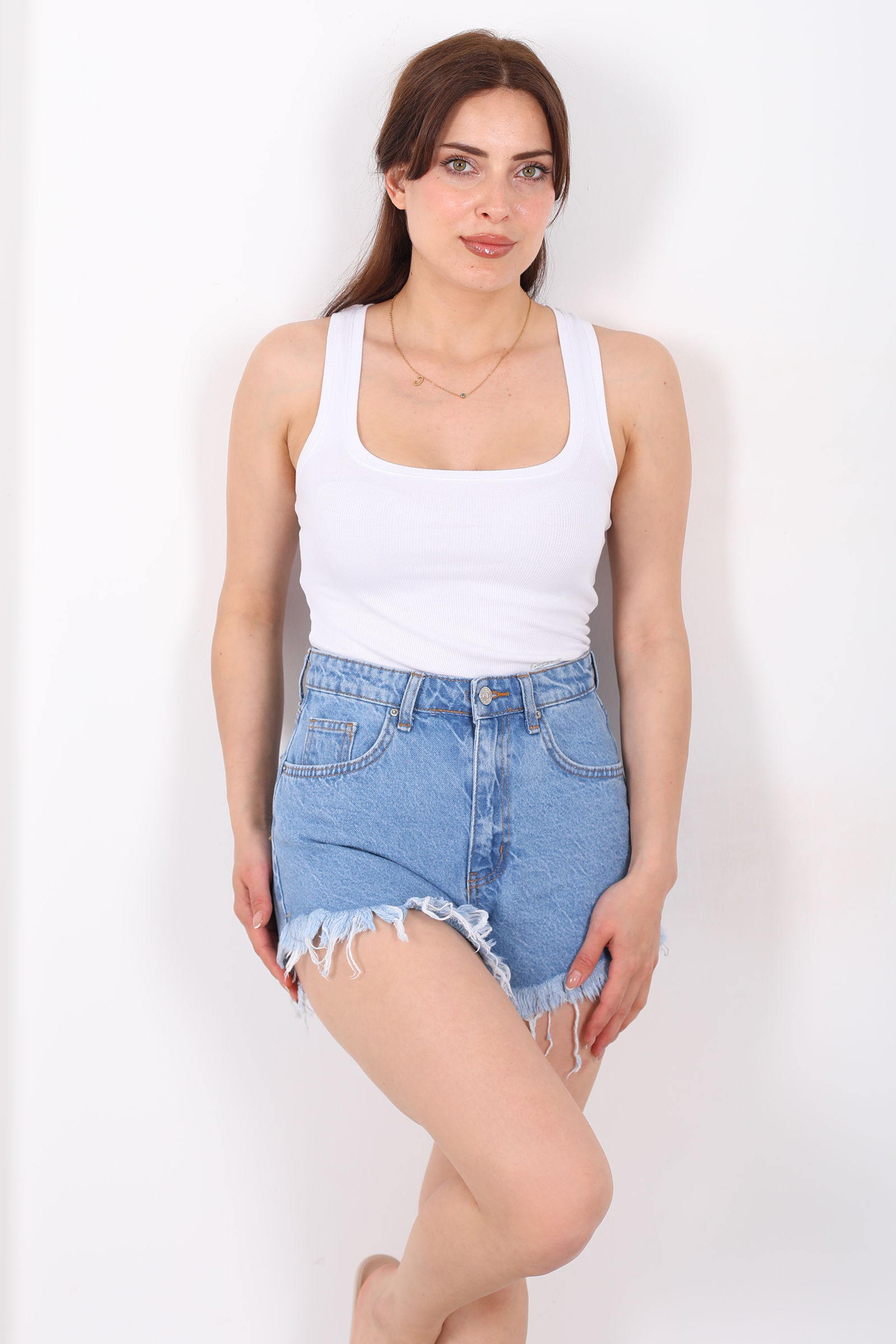 Çift Cepli Kadın Açık Mavi Kar Yıkama Denim Şort Etek