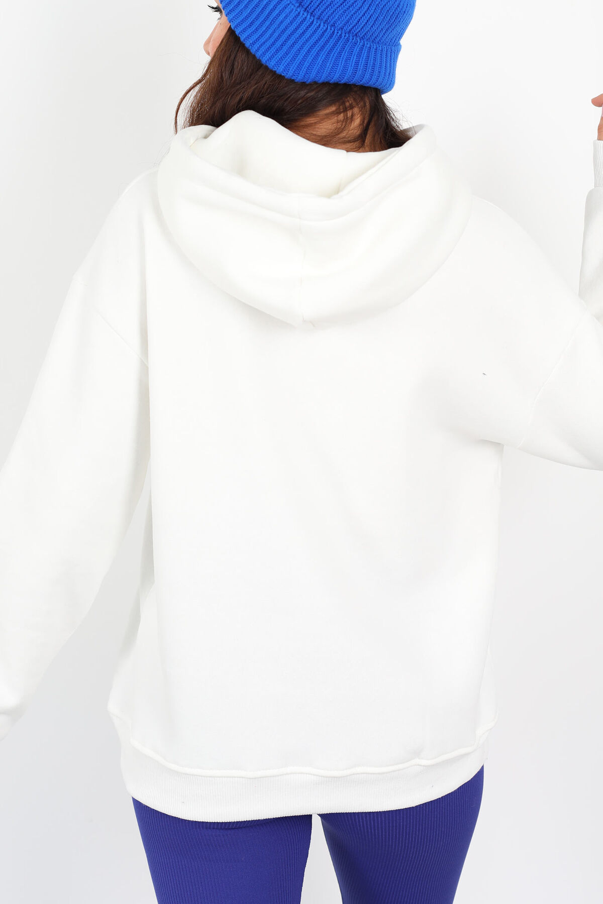 Kapüşonlu Kolları Arabiye Krem Kadın Modal Sweat