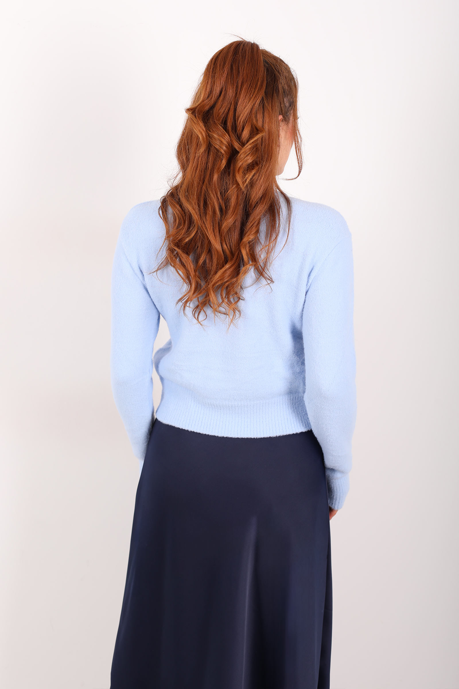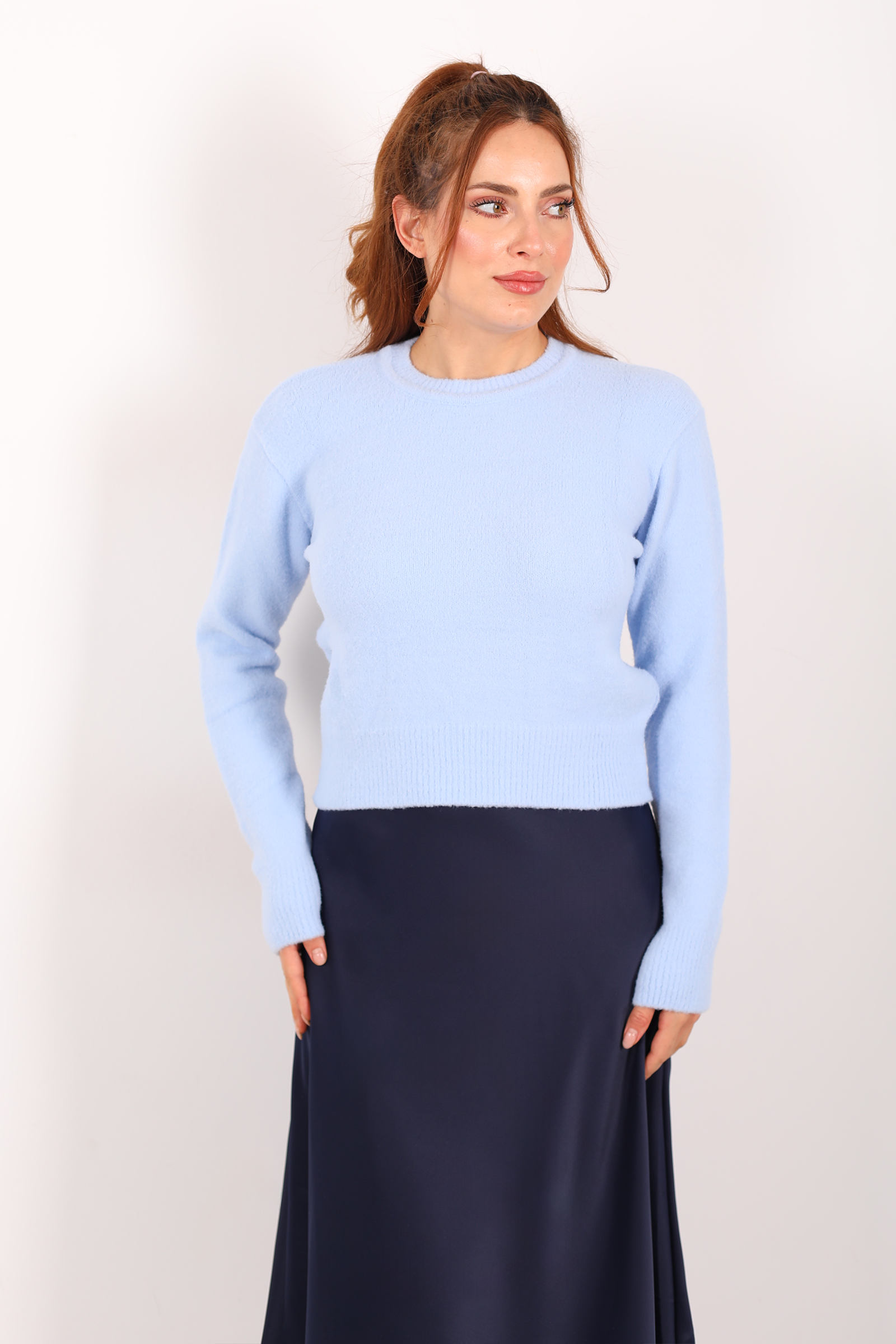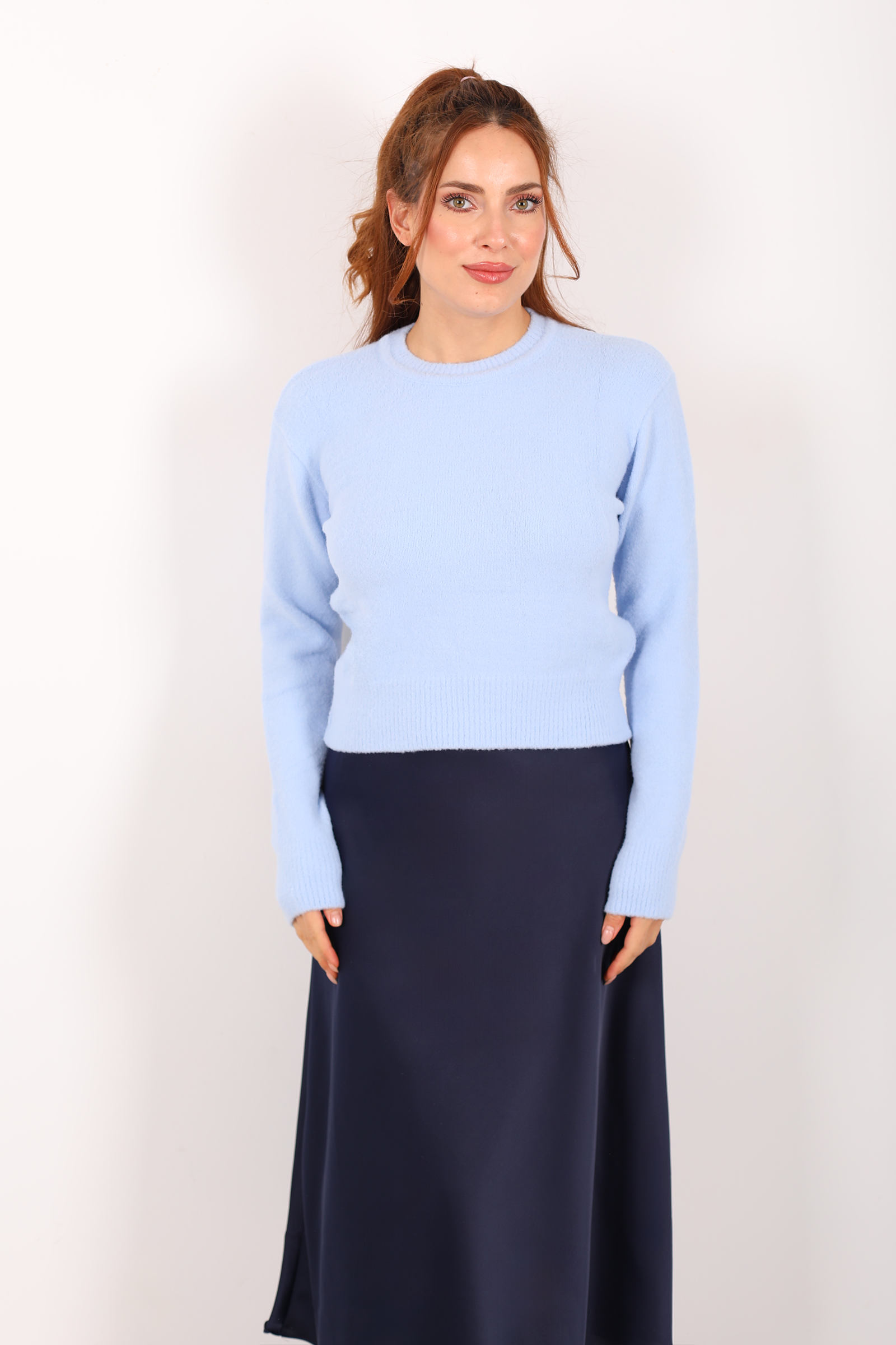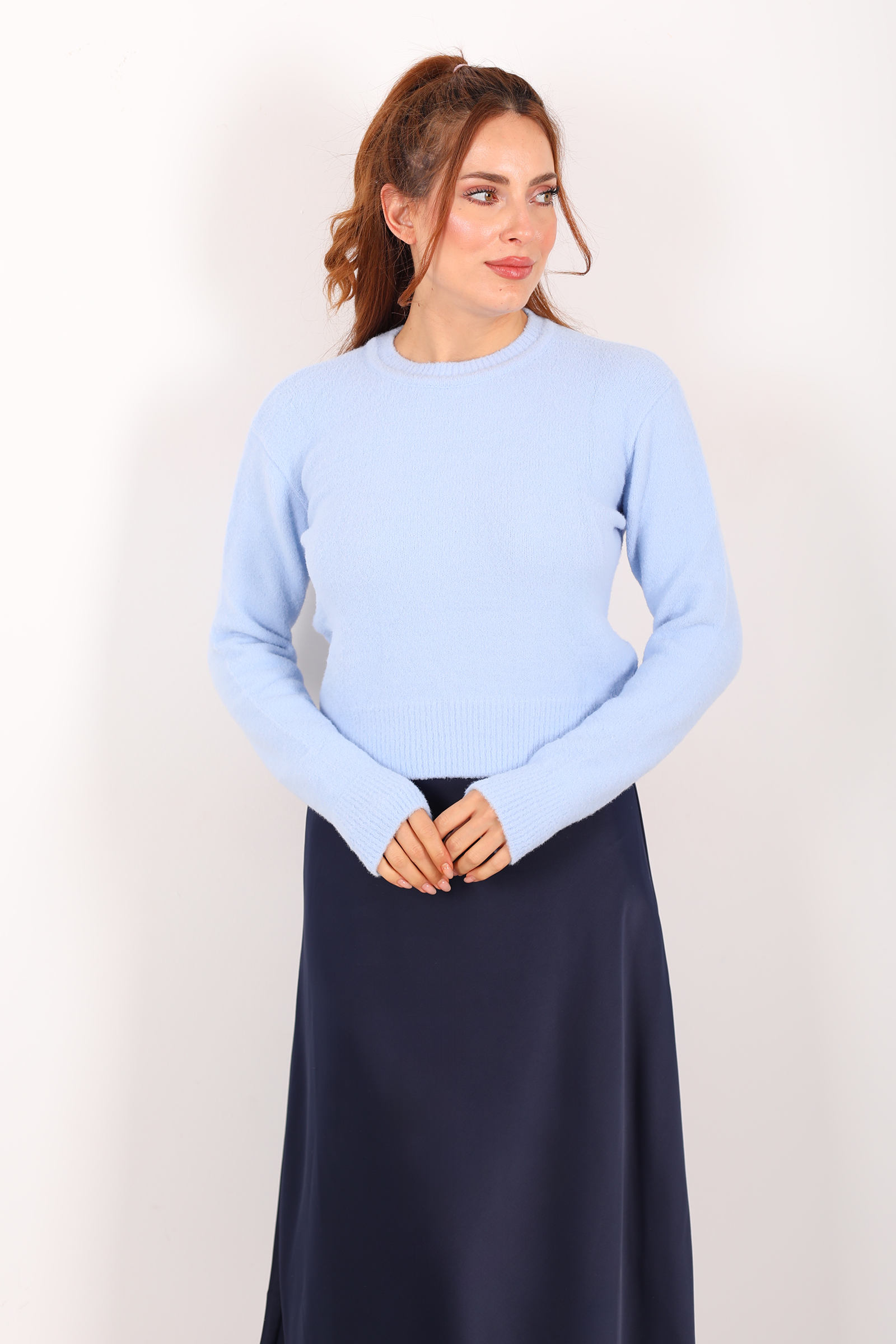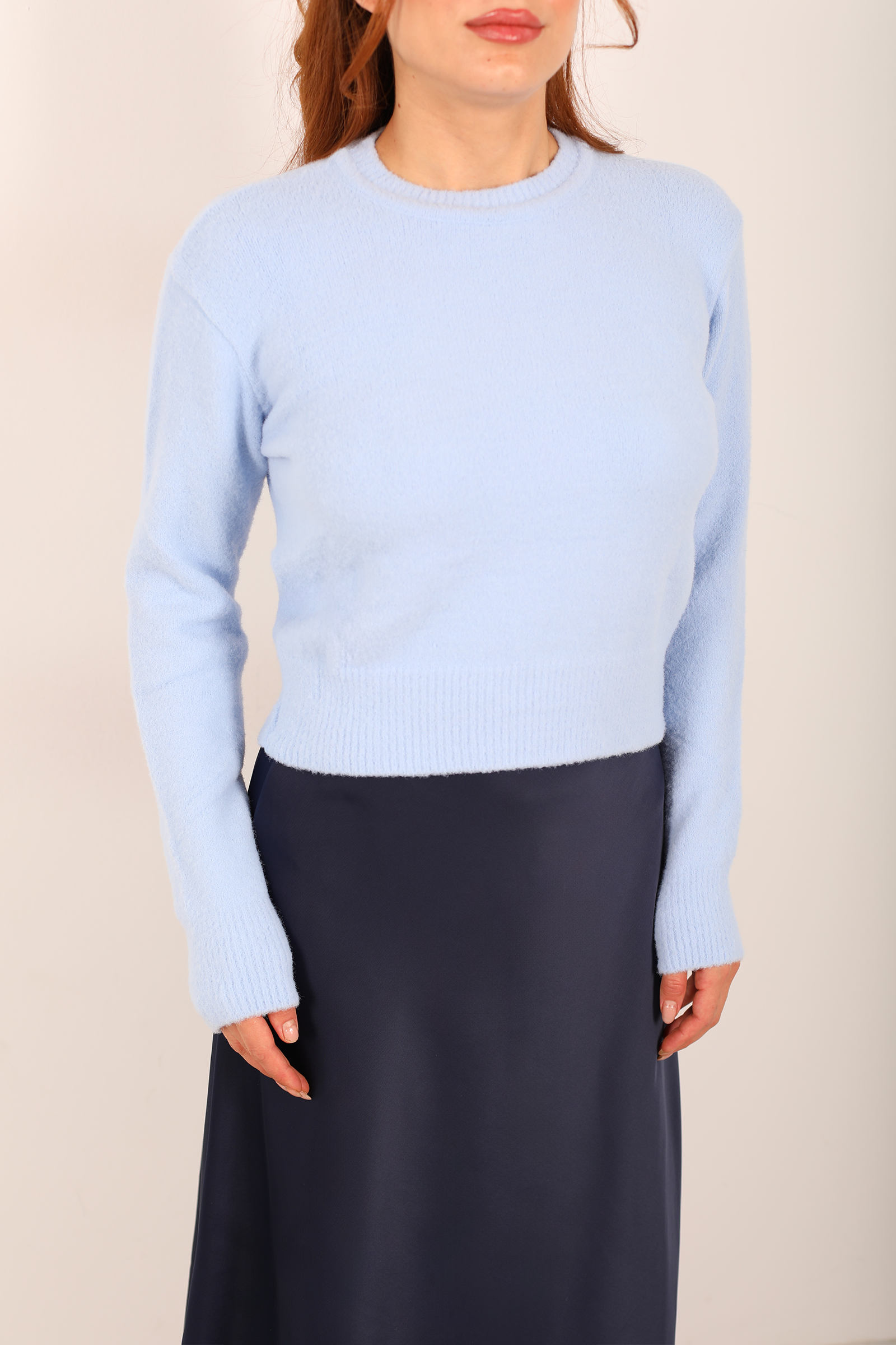 Sakallı Bisiklet Yaka Bebe Mavisi Kadın Kazak