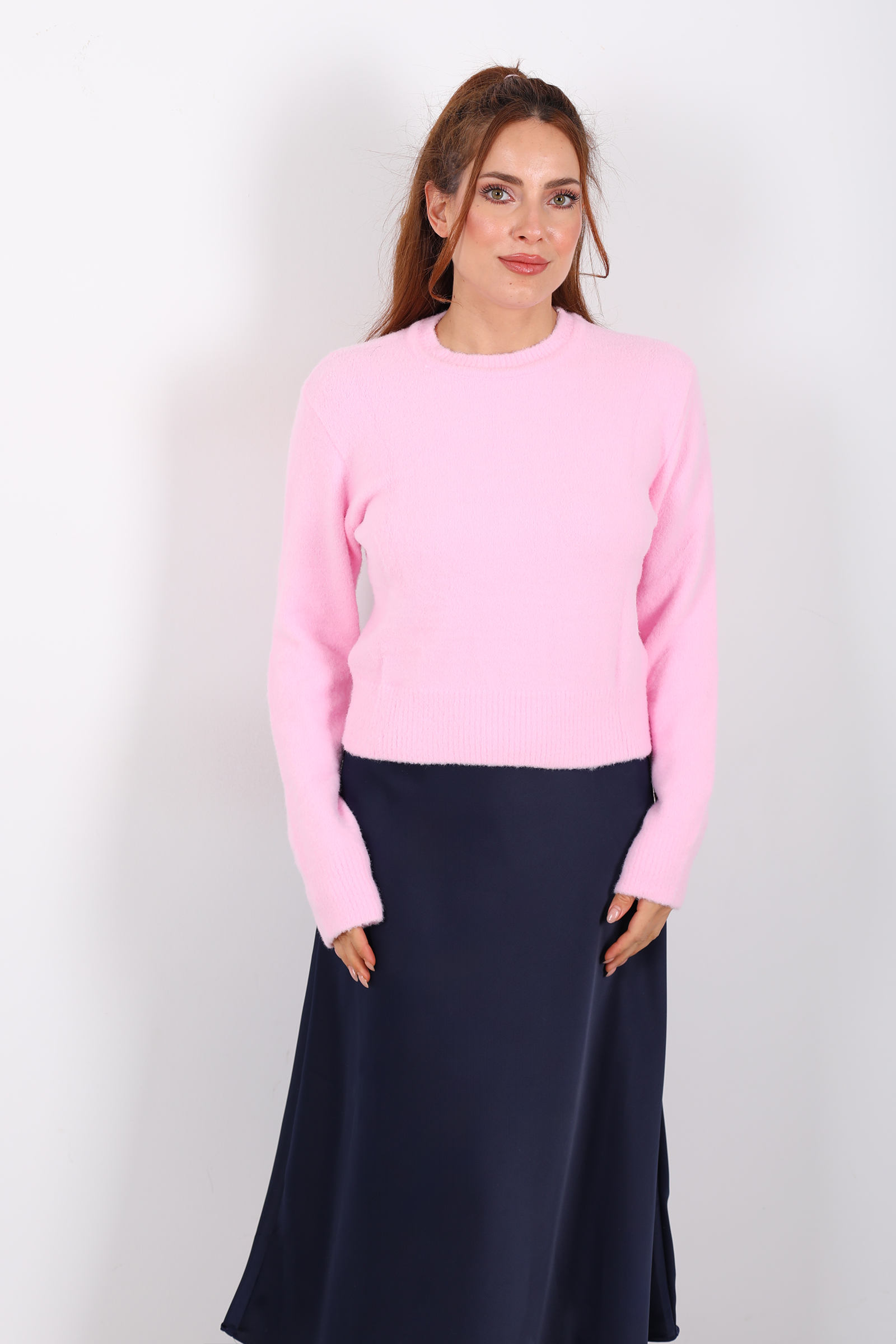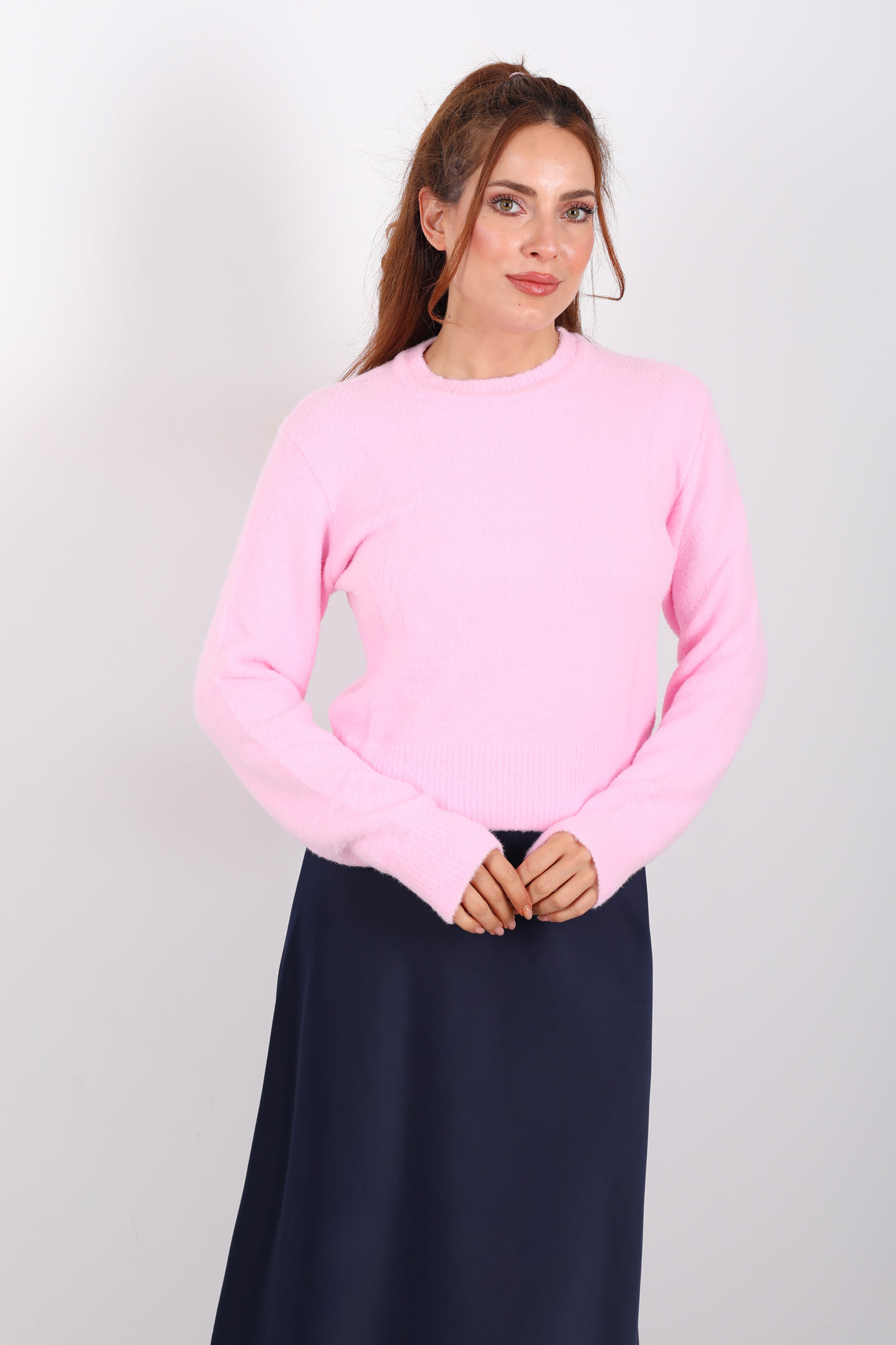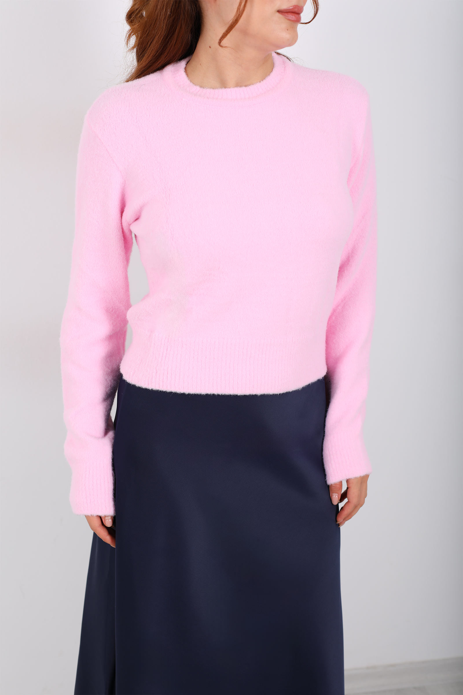 Sakallı Bisiklet Yaka Pembe Kadın Kazak
