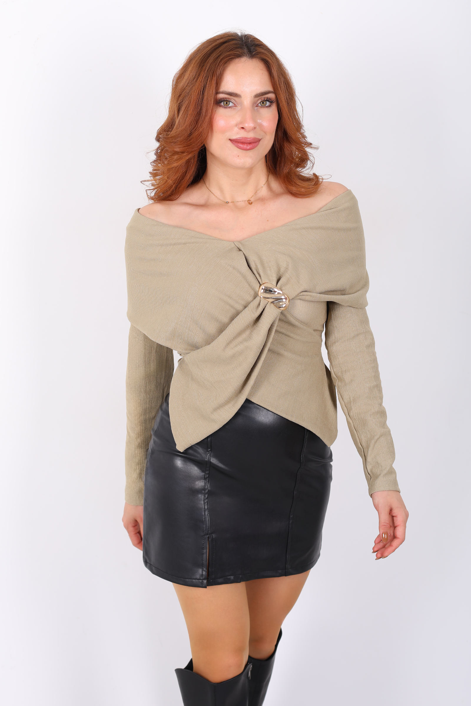 Kayık Yaka Basic Modal Ekru Kadın Bluz